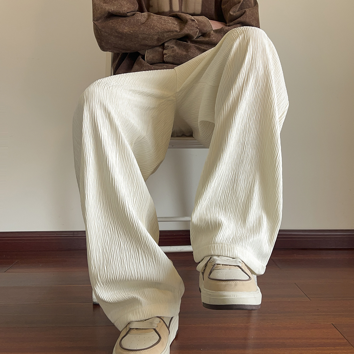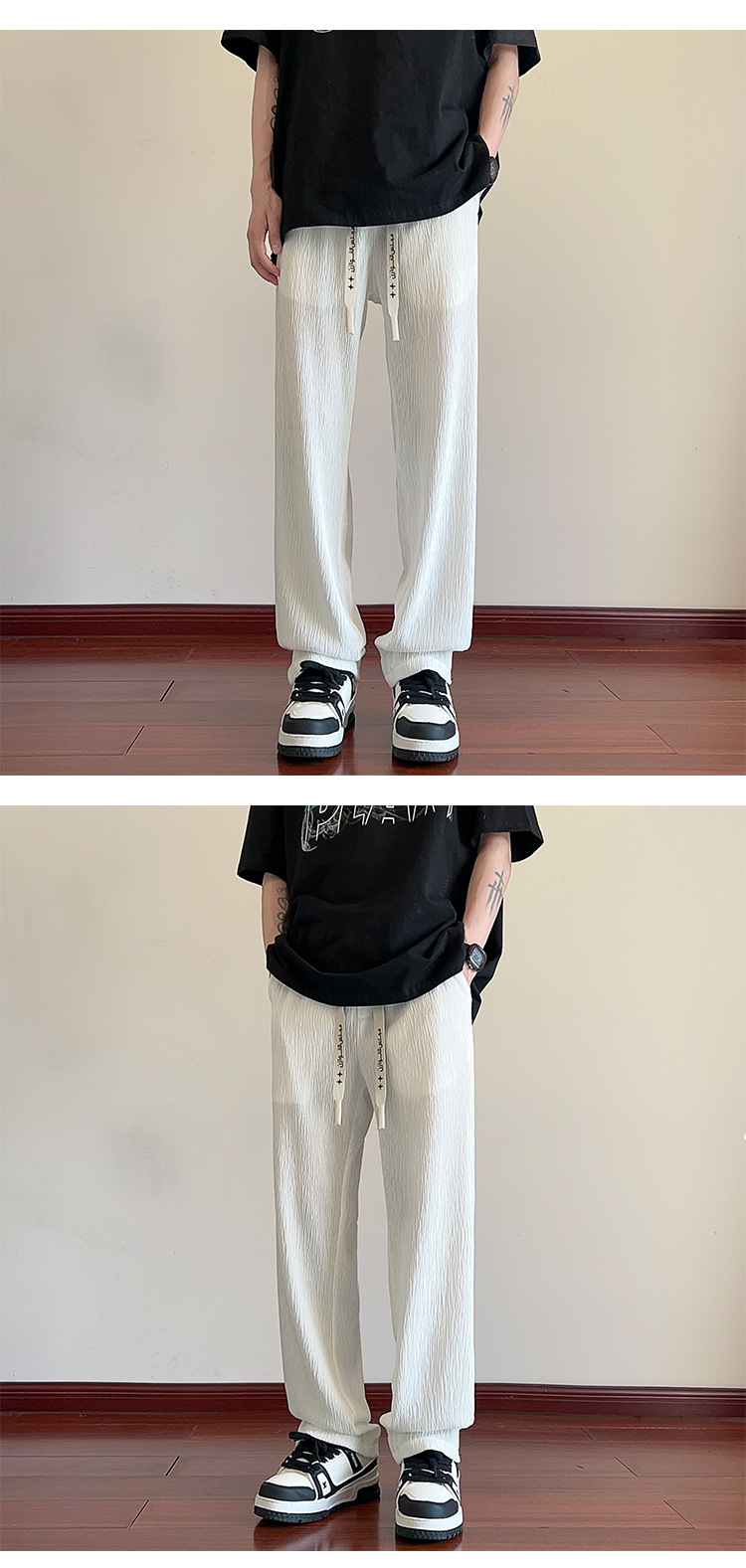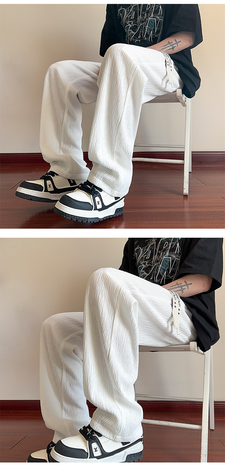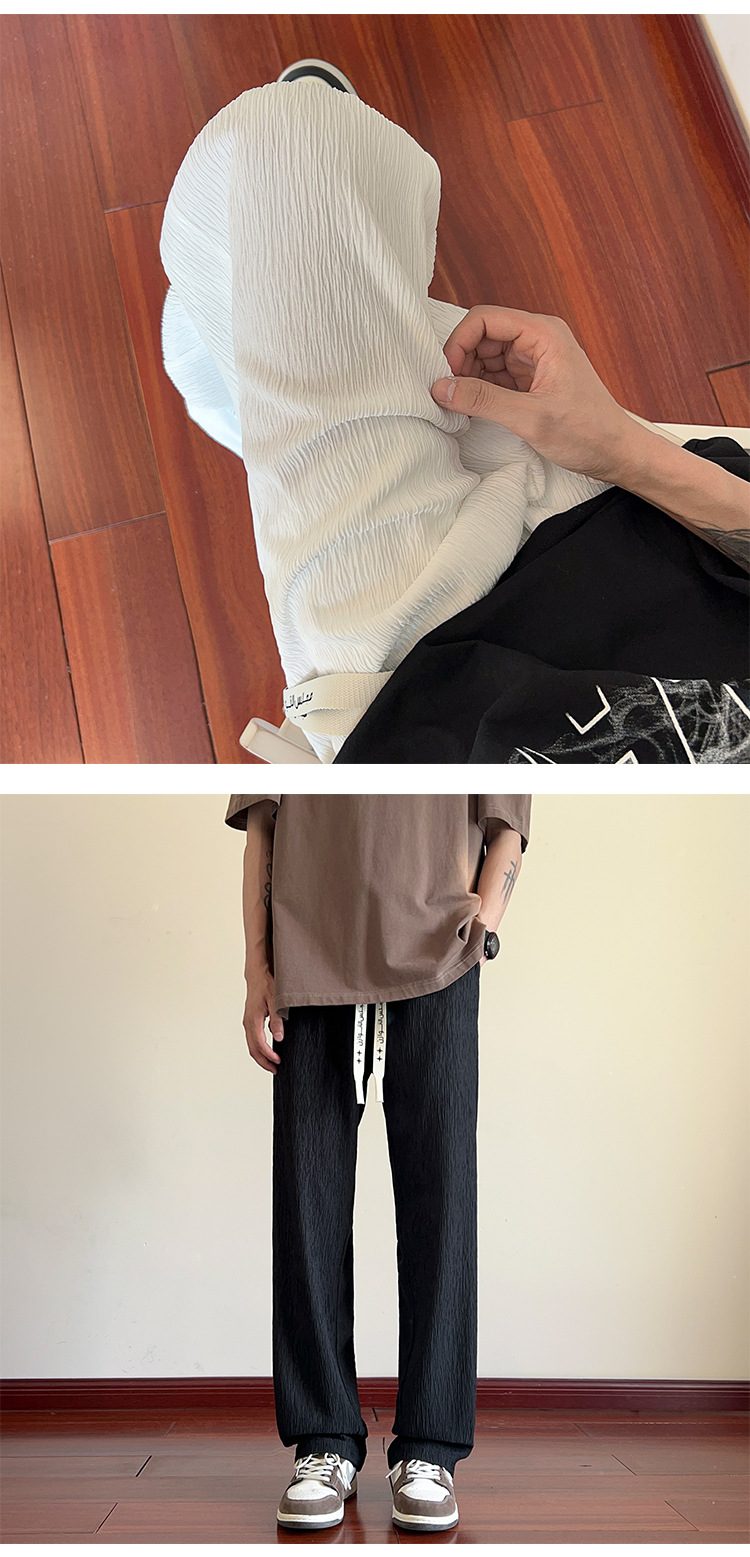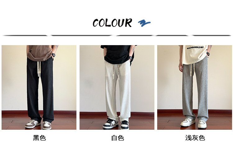 남성용 질감있는 아이스 실크 바지 여름 얇은 2025 새로운 스타일 드레이프 캐주얼 바지 소년 느슨한 와이드 레그 팬츠