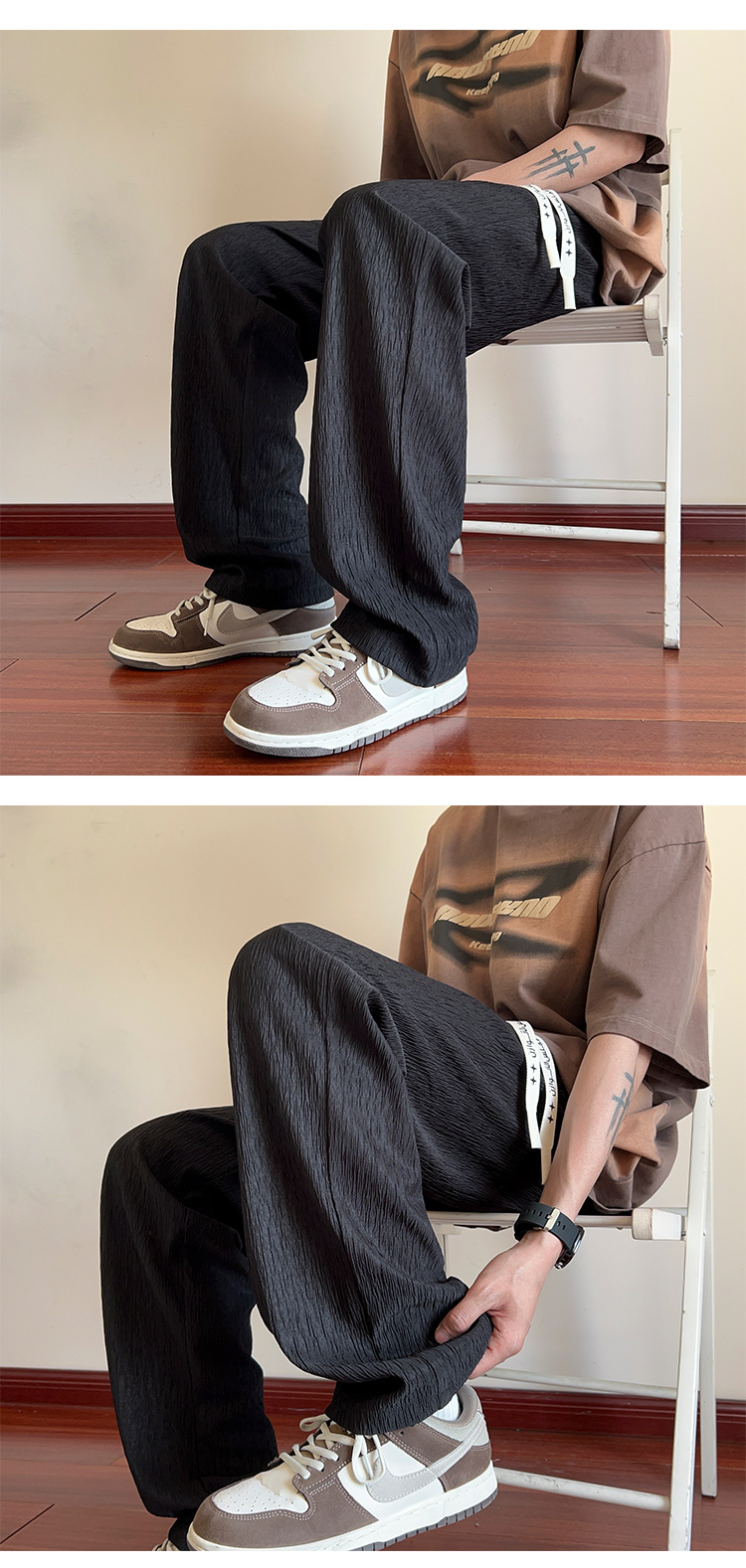 남성용 질감있는 아이스 실크 바지 여름 얇은 2025 새로운 스타일 드레이프 캐주얼 바지 소년 느슨한 와이드 레그 팬츠스토어 가기
