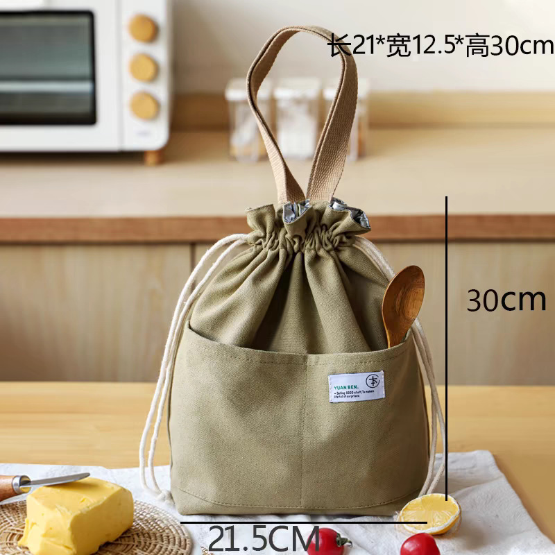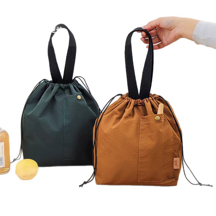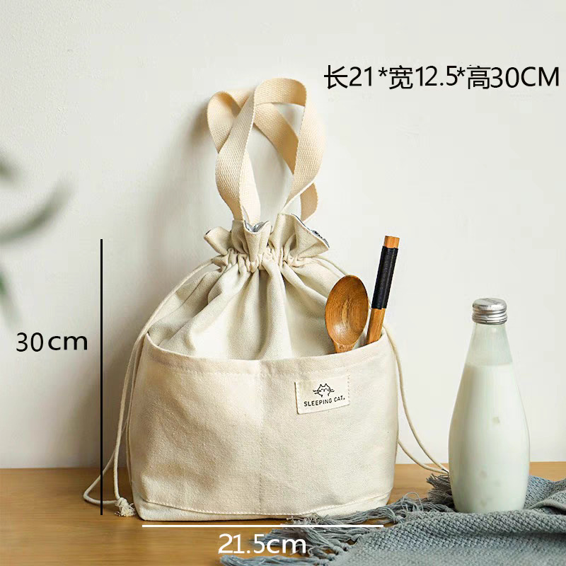 일본식 캔버스 도시락 가방 직장인용 조임끈 보온 휴대용 도시락 가방 여름 피크닉 가방