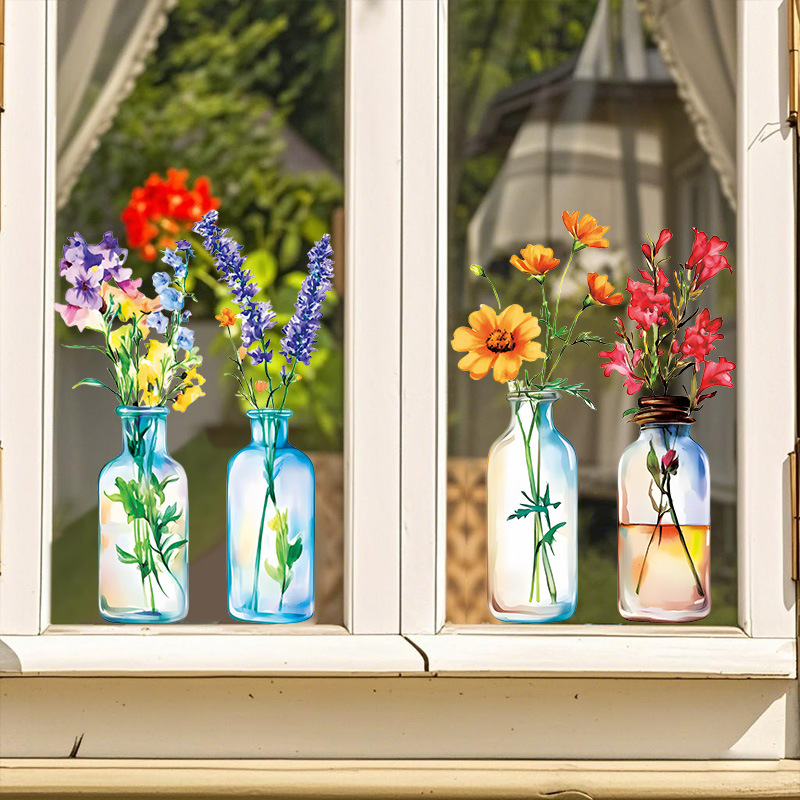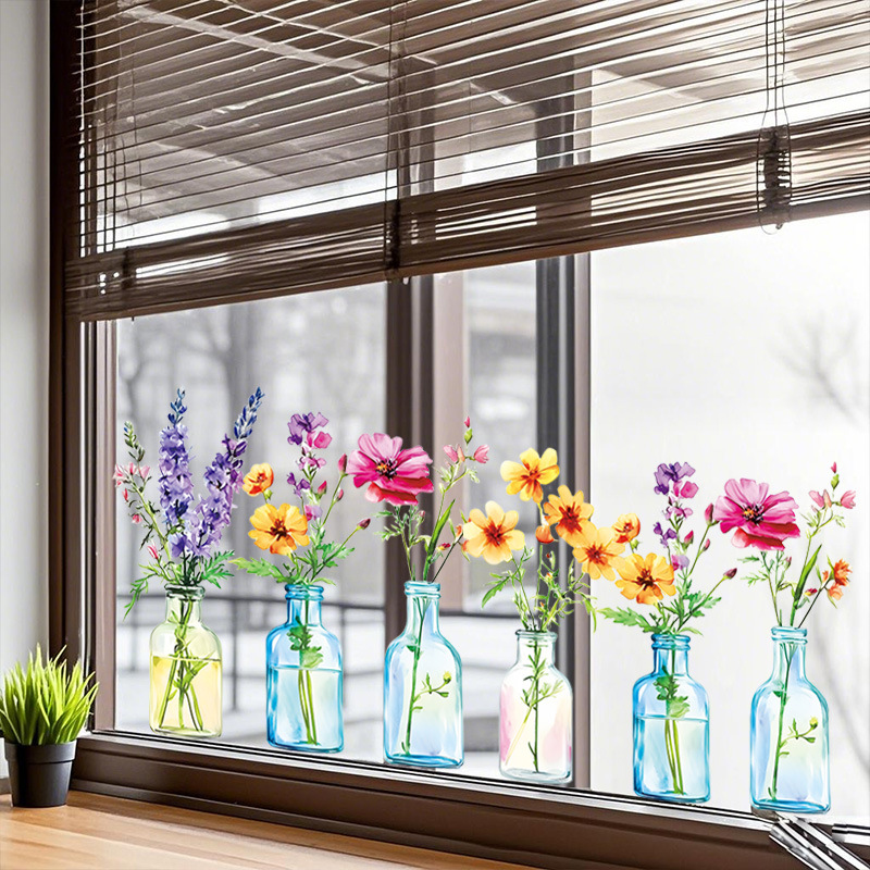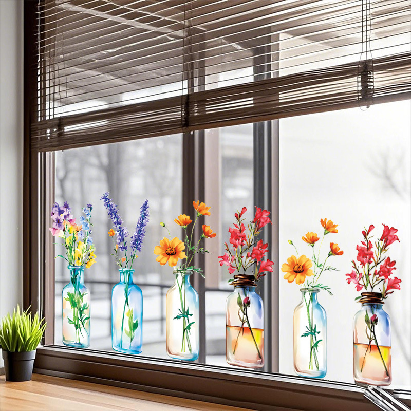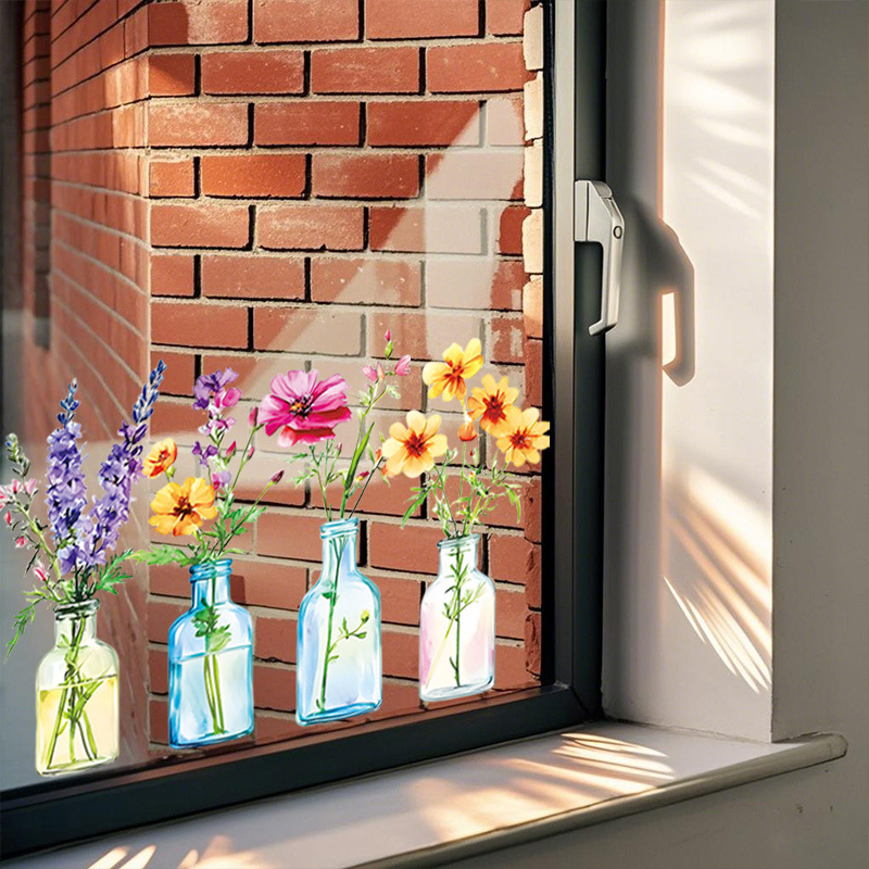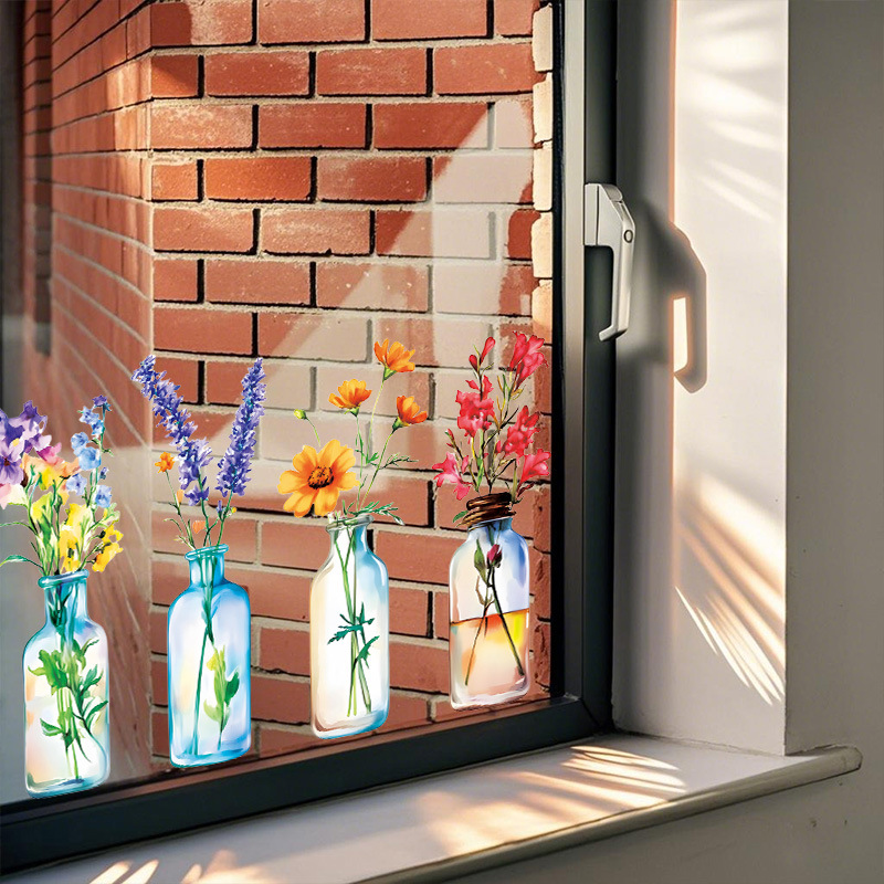 국경 간 뜨거운 판매 시뮬레이션 꽃 병 꽃꽂이 정전기 스티커 거실 침실 유리 장식 창 꽃 국경 간 도매스토어 가기