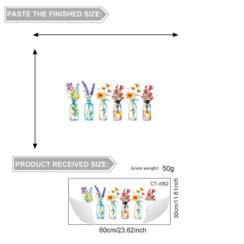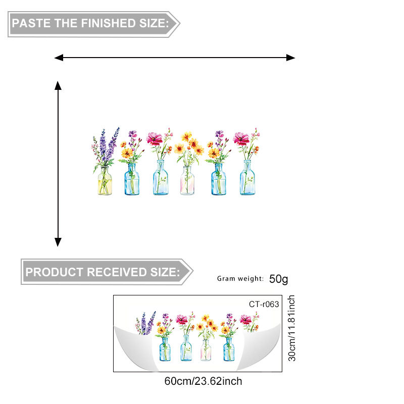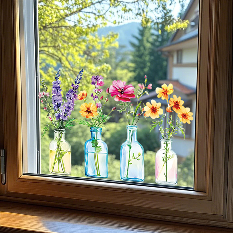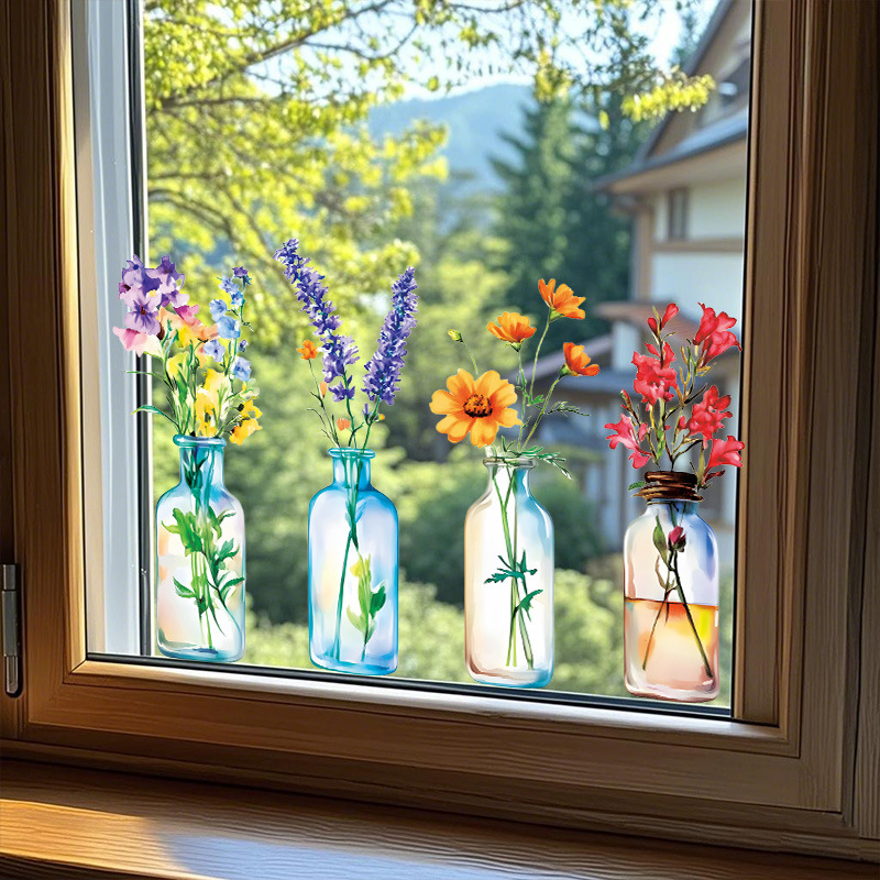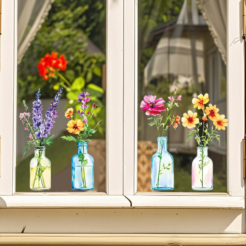 국경 간 뜨거운 판매 시뮬레이션 꽃 병 꽃꽂이 정전기 스티커 거실 침실 유리 장식 창 꽃 국경 간 도매스토어 가기