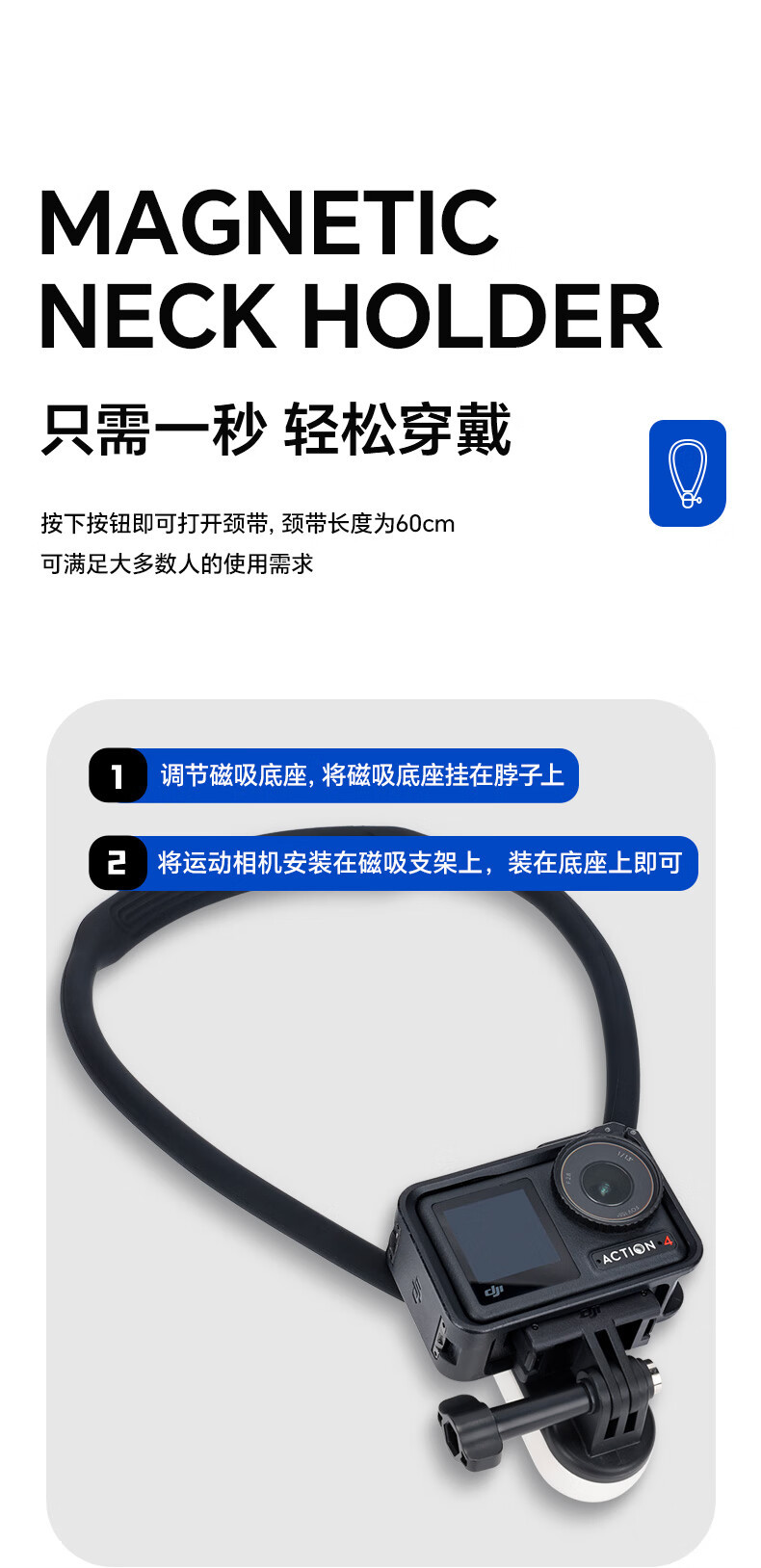 자석식 목걸이형 스포츠 카메라 홀더는 Yingshi 360, DJI Action 4/5 Pro/6에 적합합니다.