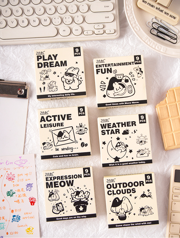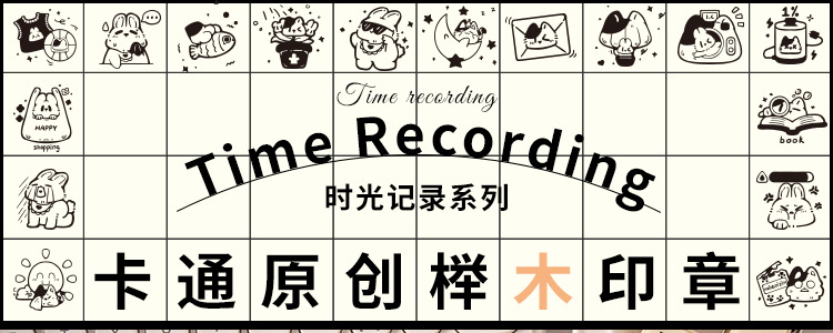 시간 기록 나무 스탬프 세트 diy 핸드북 일기 인쇄 크로스 보더 만화 동물 날씨 핸드북 스탬프스토어 가기