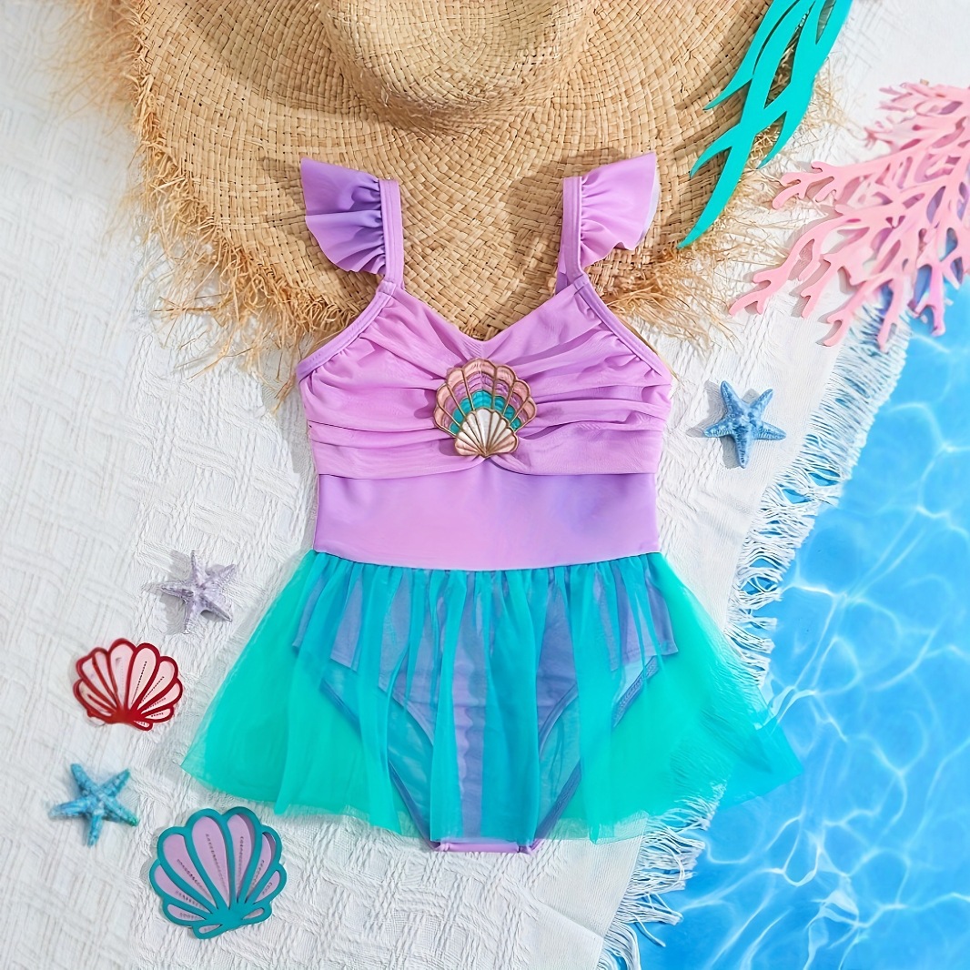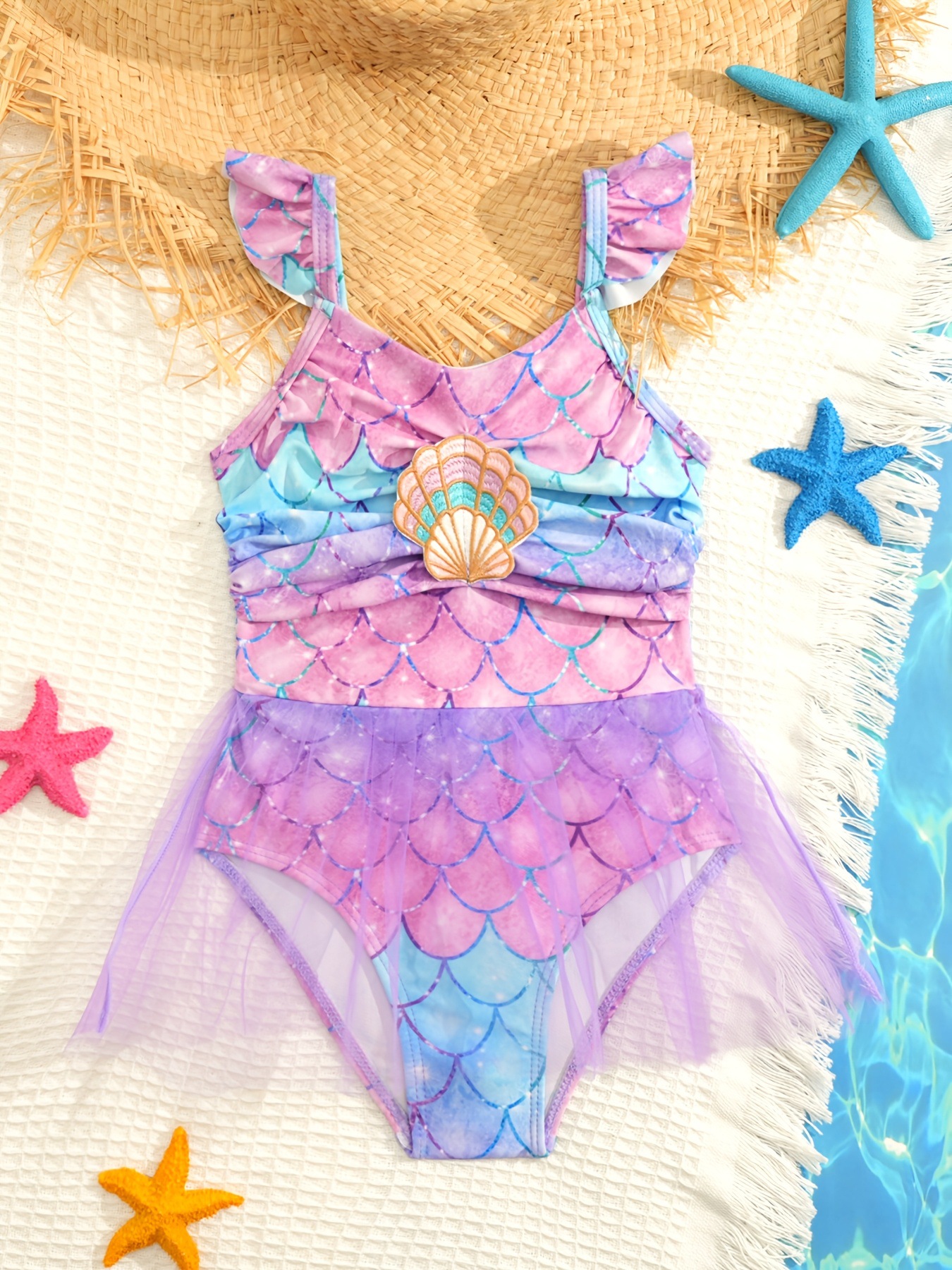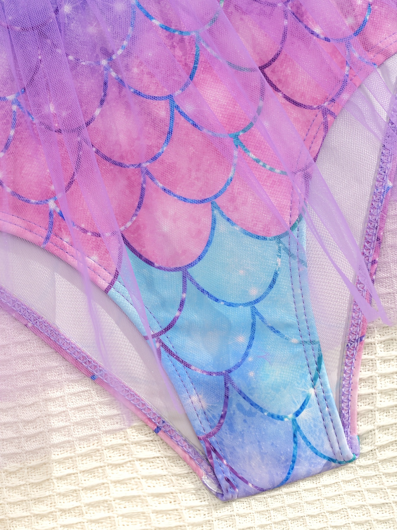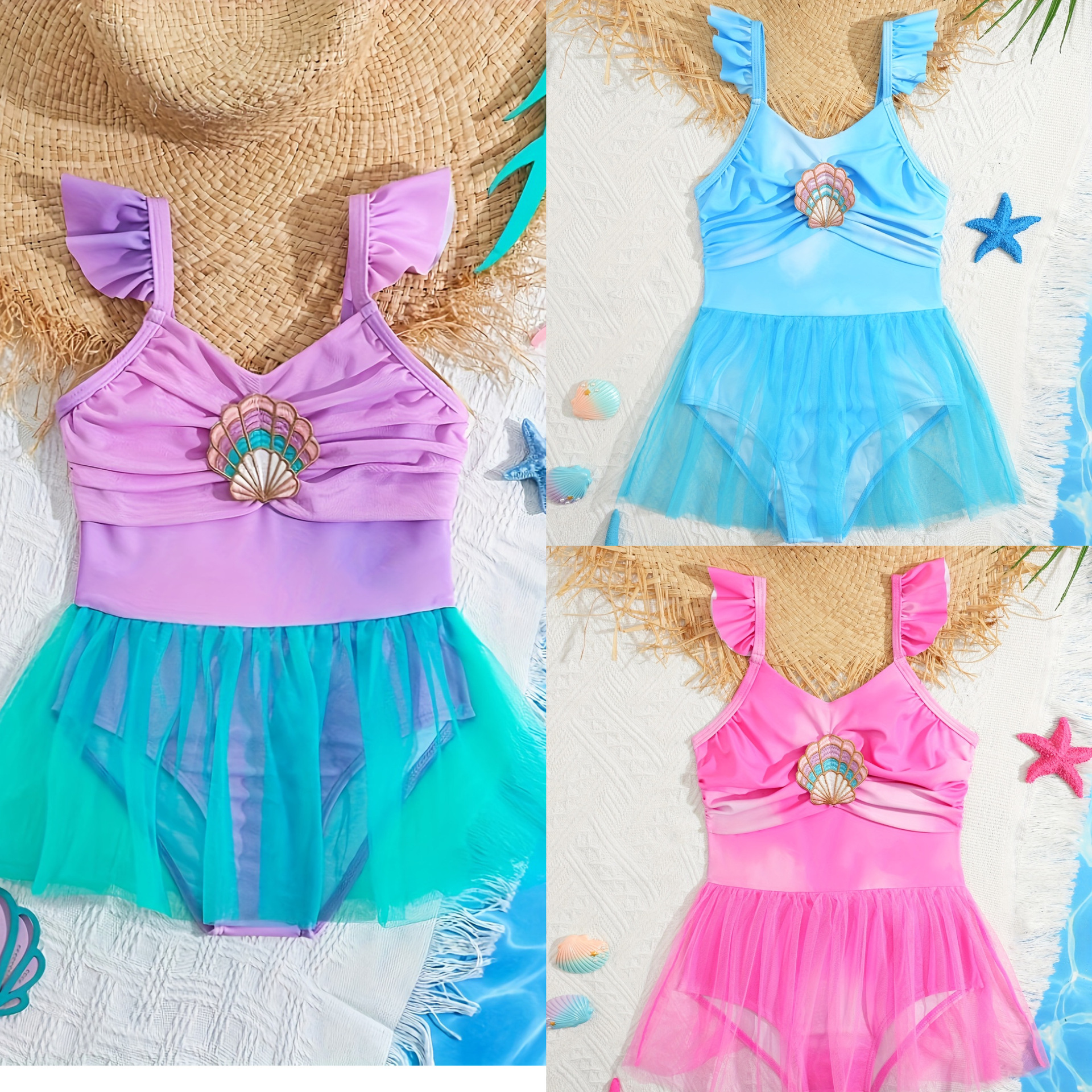 2026년 신상 아동용 인어공주 수영복, 퍼프 스커트가 있는 여름 여아용 인어공주 메쉬 스커트 수영복