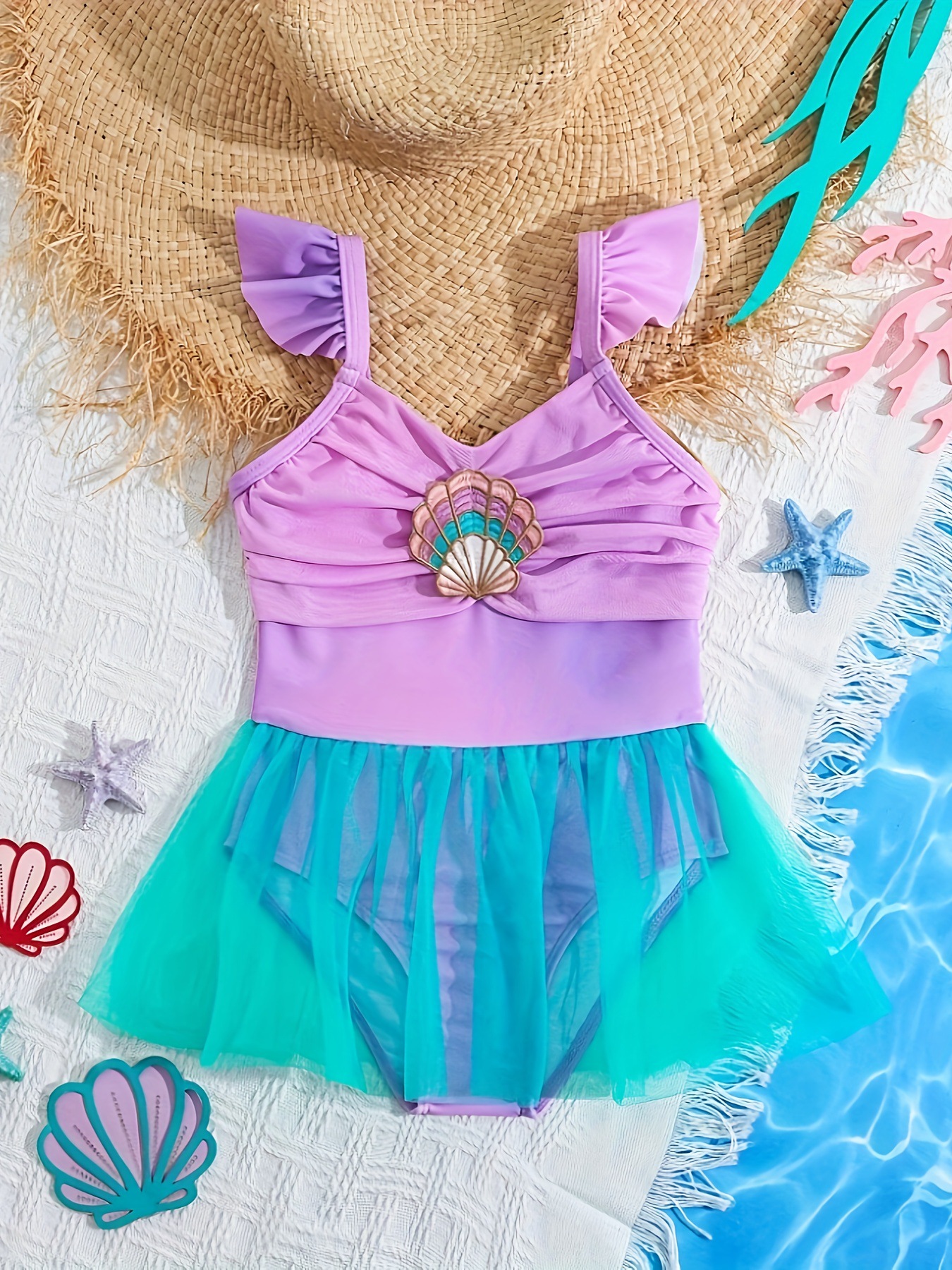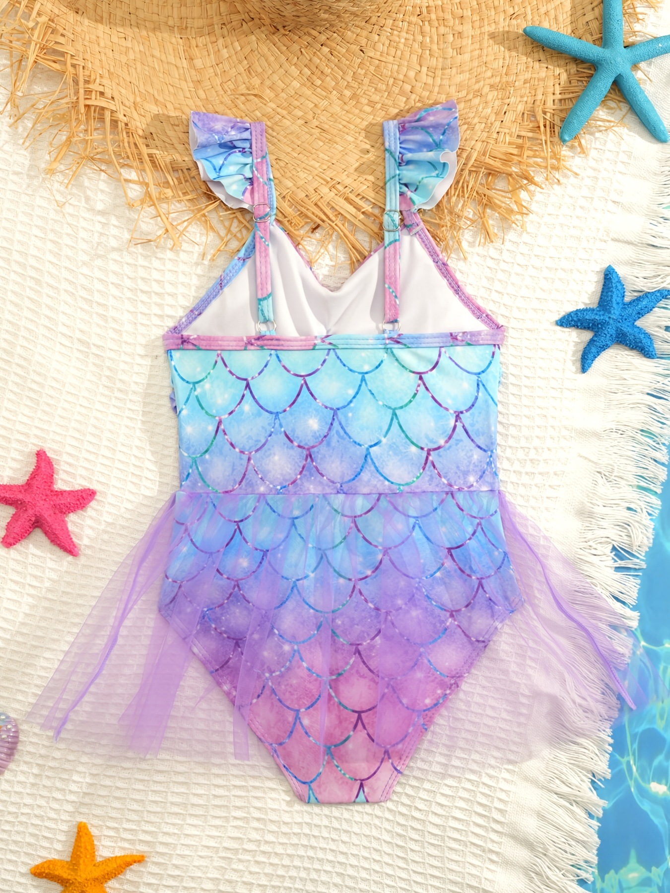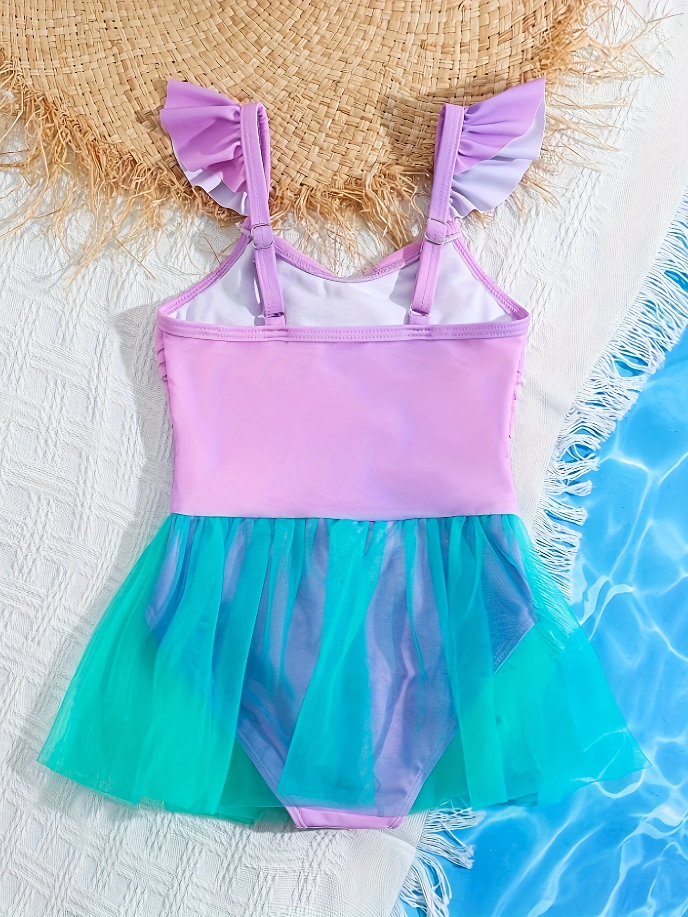 2026년 신상 아동용 인어공주 수영복, 퍼프 스커트가 있는 여름 여아용 인어공주 메쉬 스커트 수영복