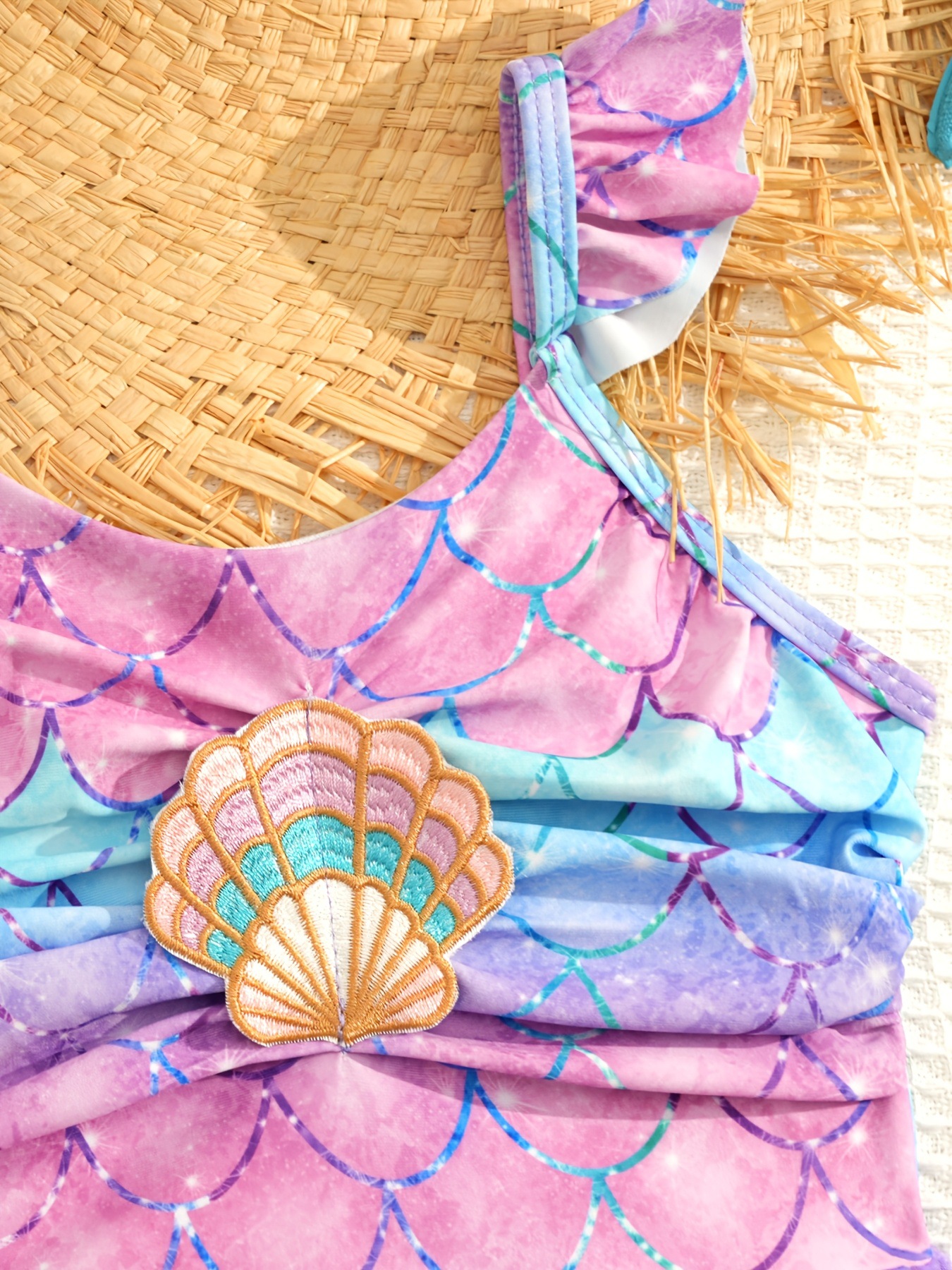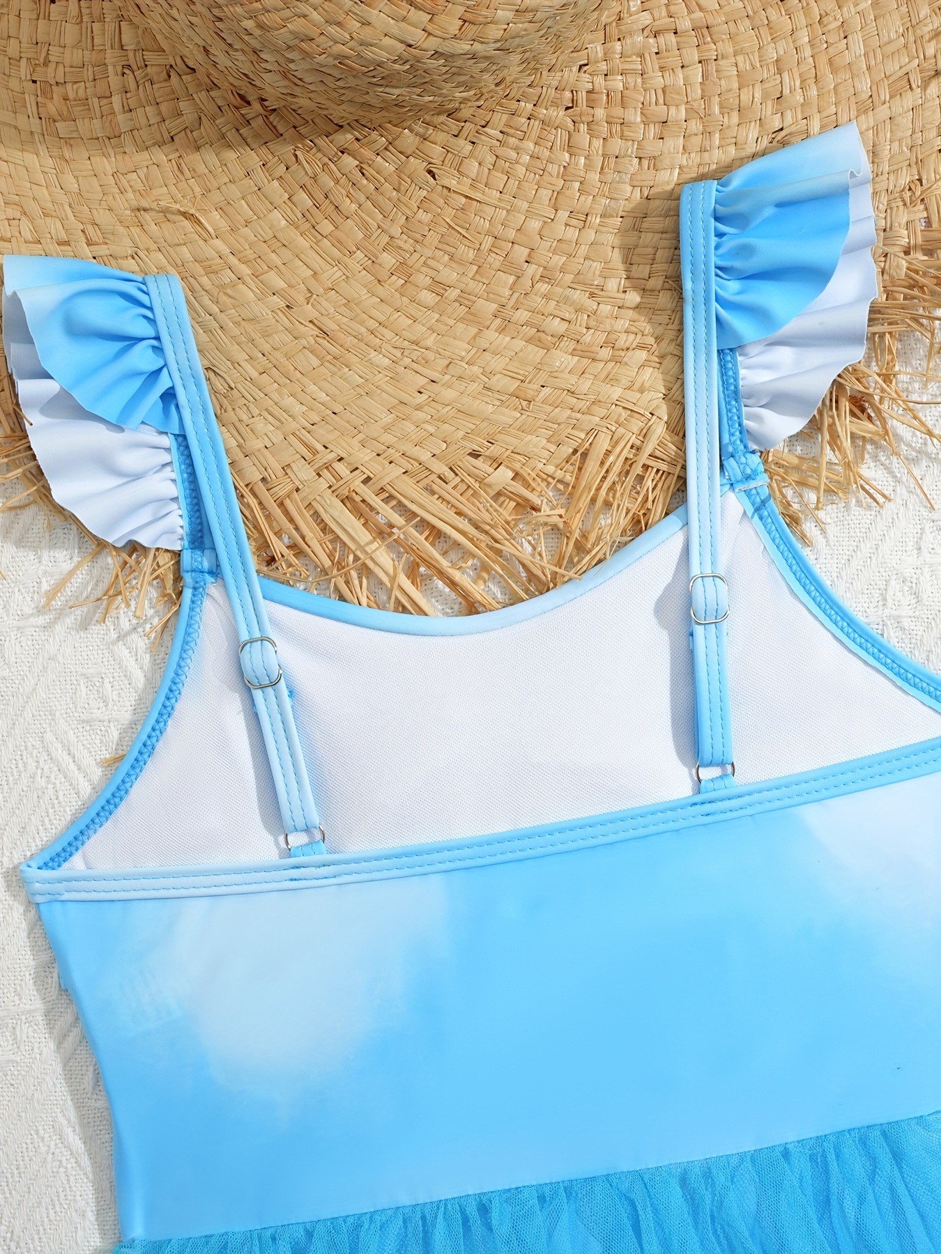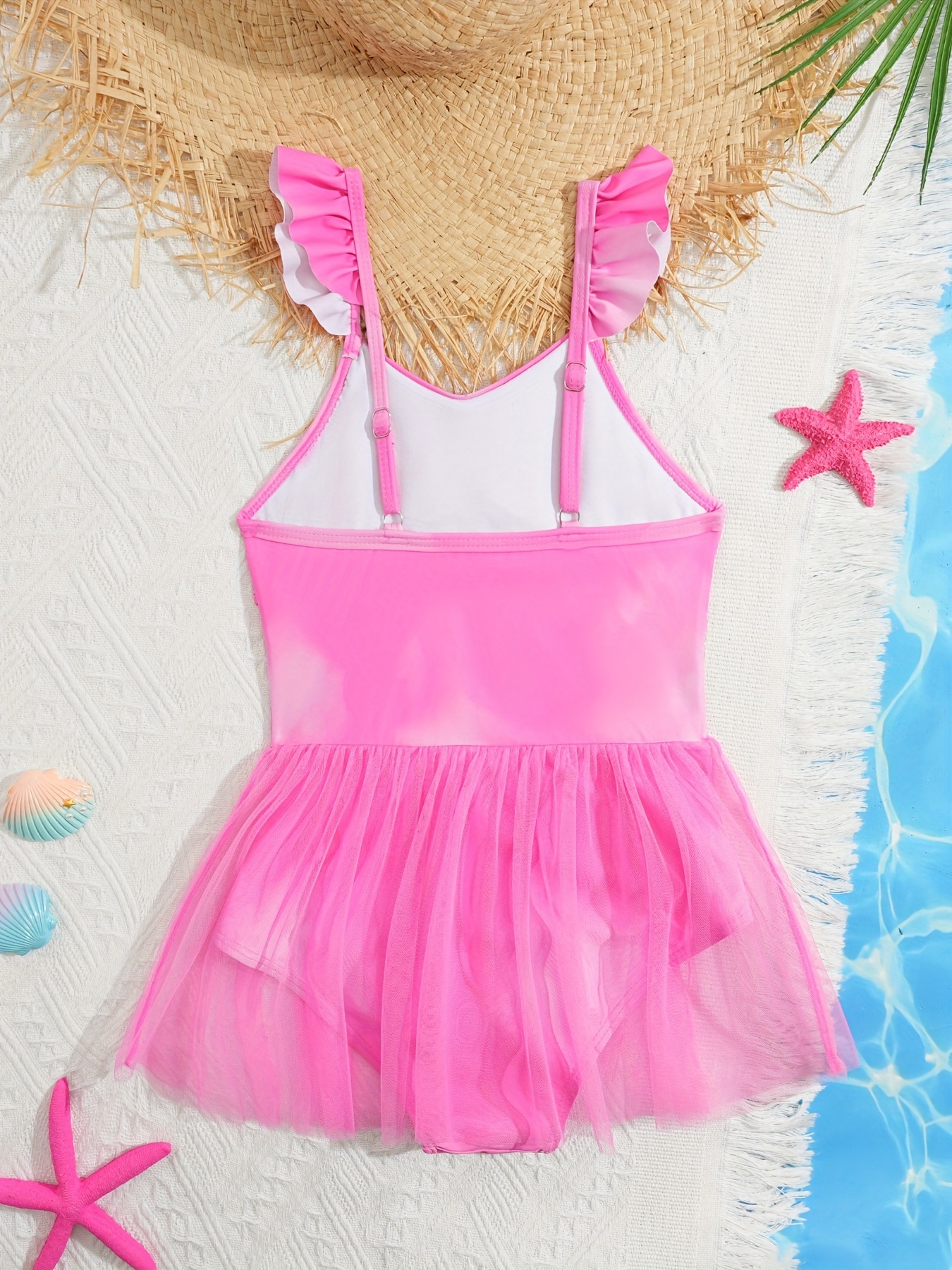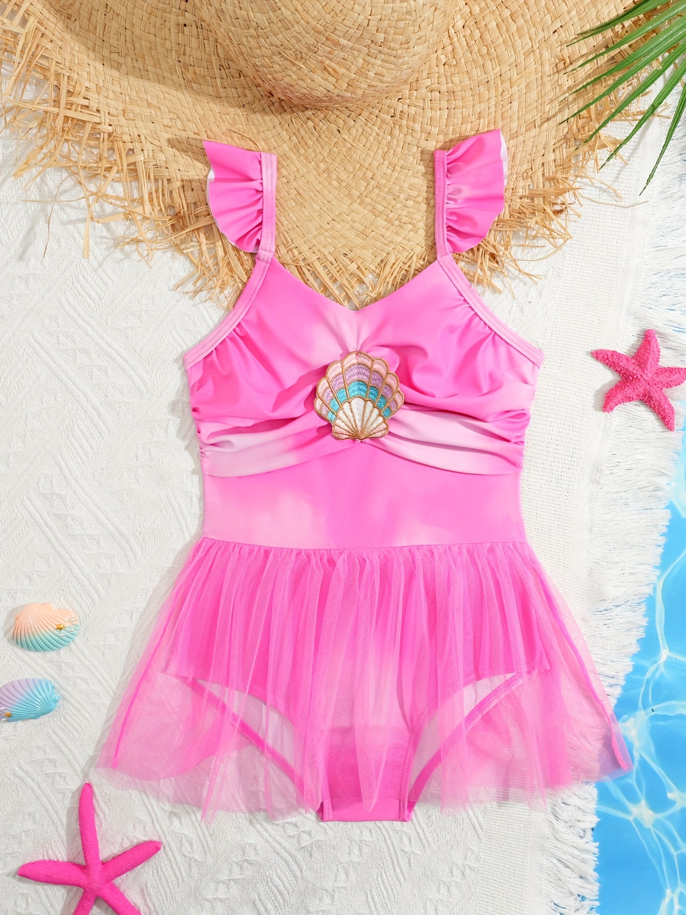2026년 신상 아동용 인어공주 수영복, 퍼프 스커트가 있는 여름 여아용 인어공주 메쉬 스커트 수영복