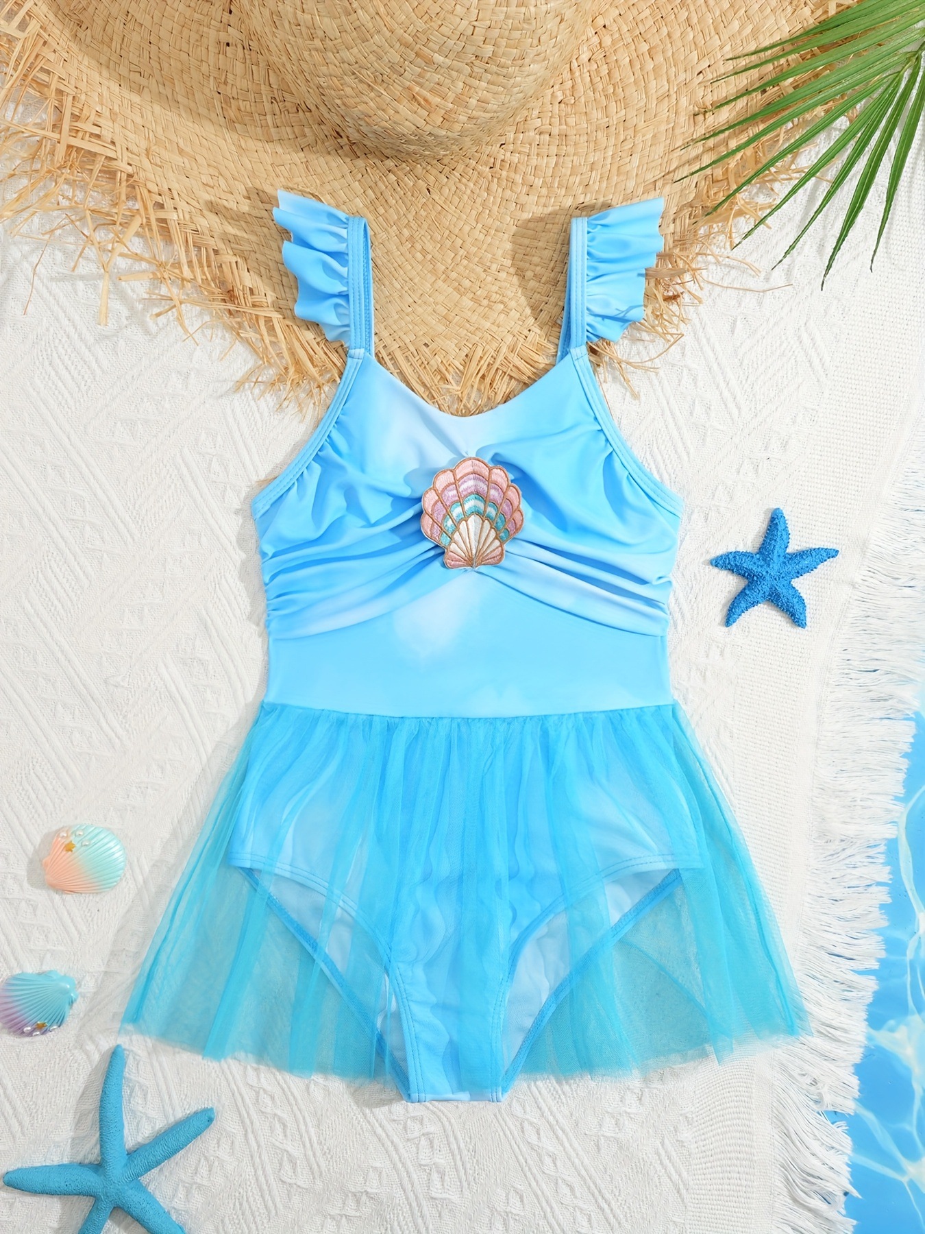 2026년 신상 아동용 인어공주 수영복, 퍼프 스커트가 있는 여름 여아용 인어공주 메쉬 스커트 수영복스토어 가기