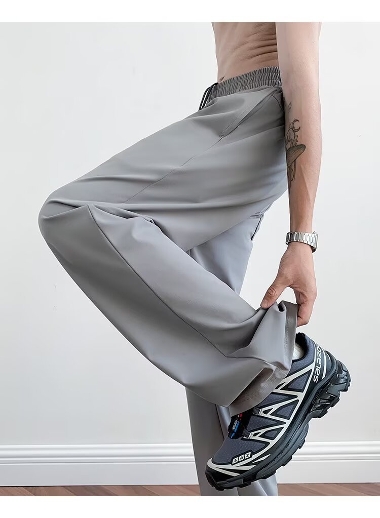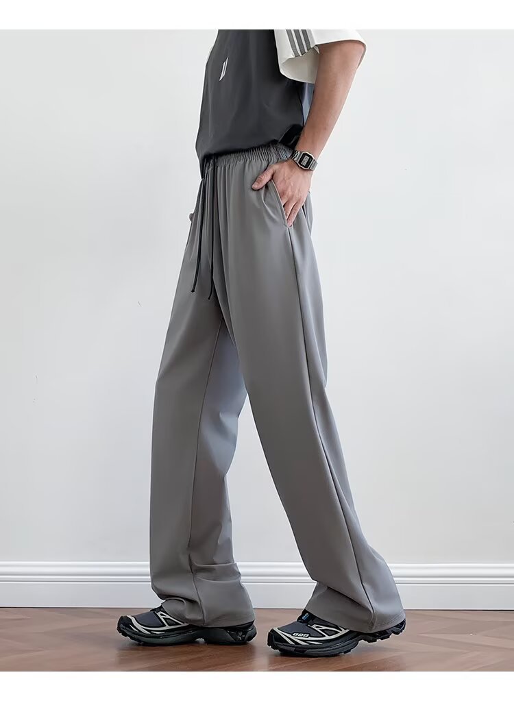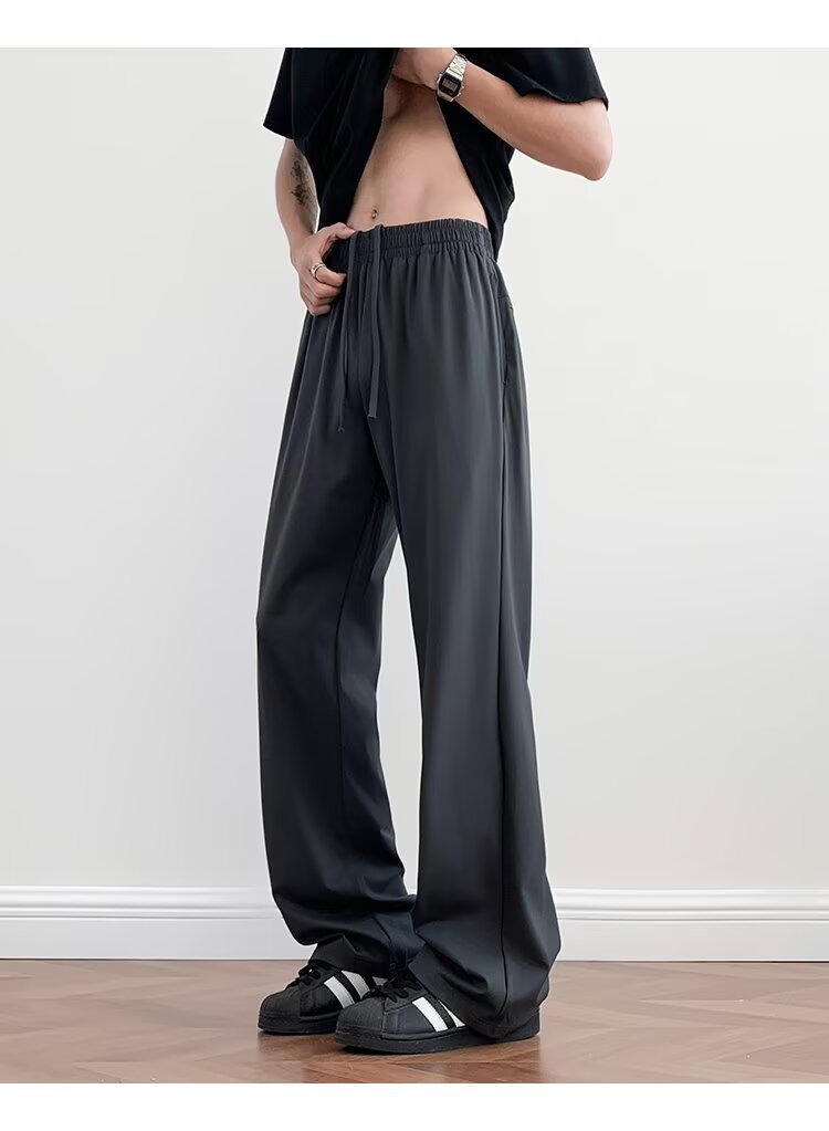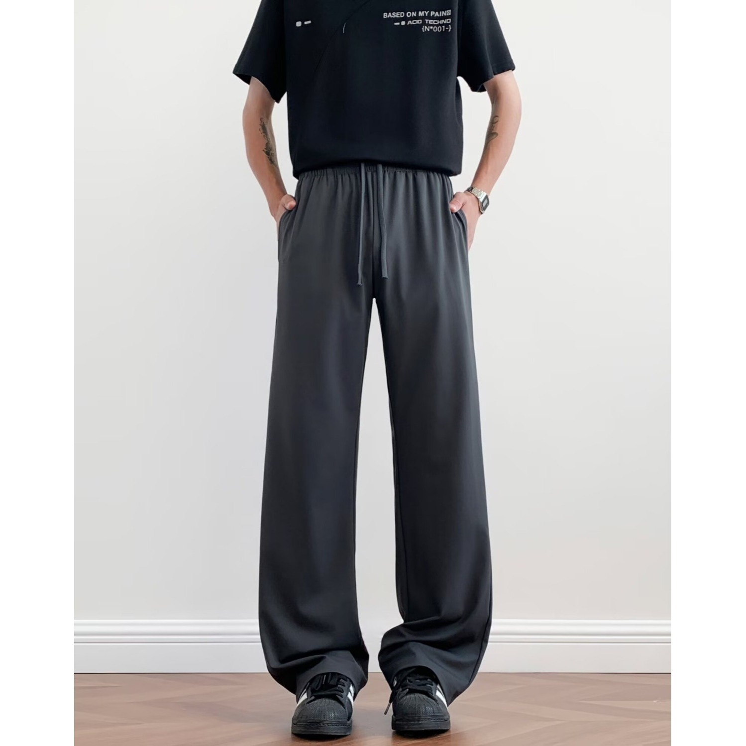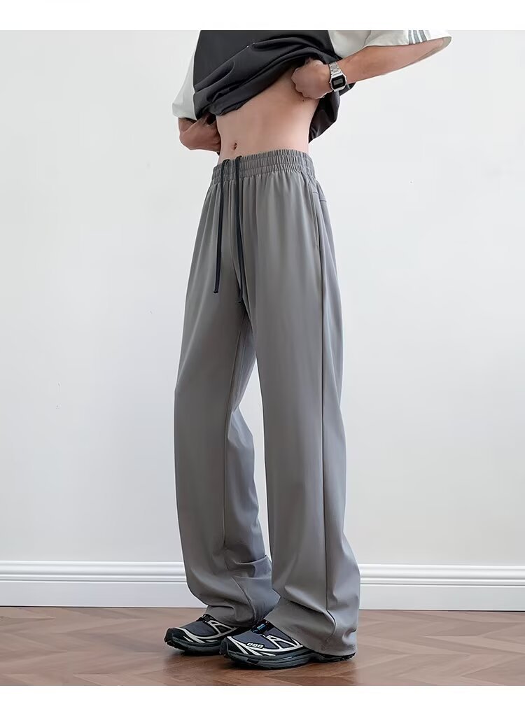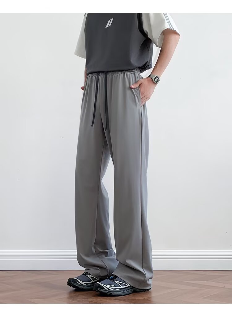 여름 다용도 루즈 캐주얼 바지 얇은 트렌디 와이드 레그 스트레이트 드레이프 에어컨 아이스 실크 바지 남성용 바지