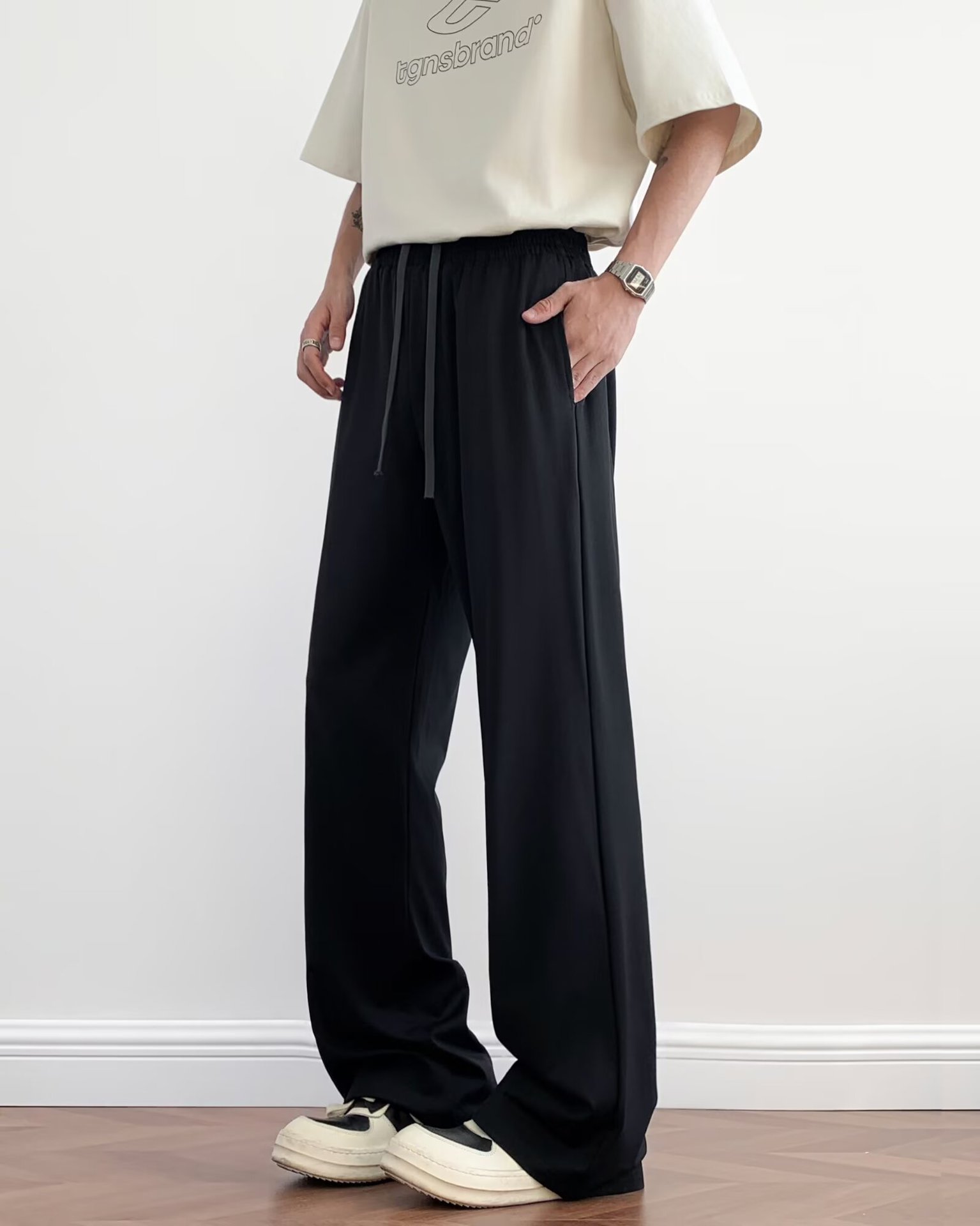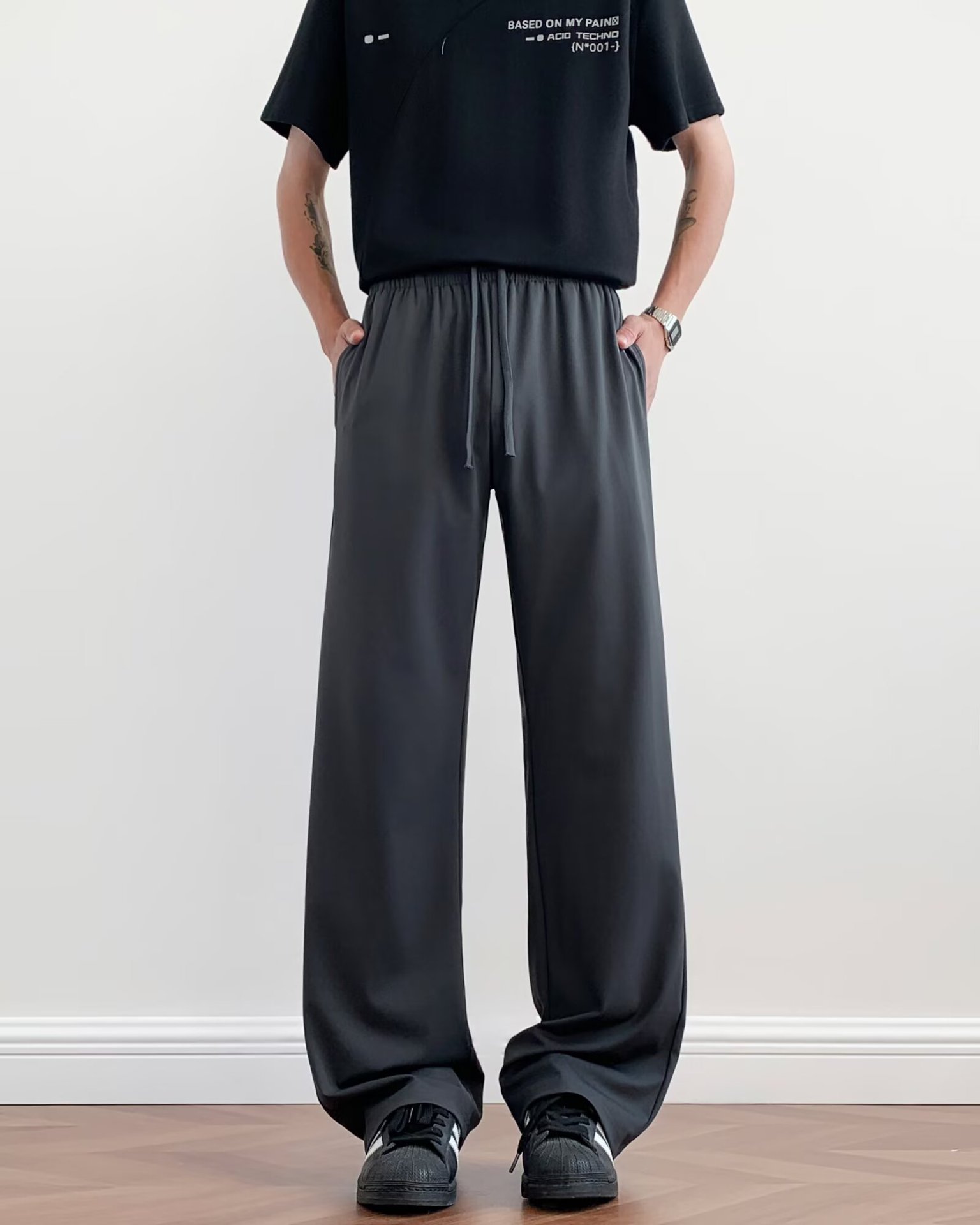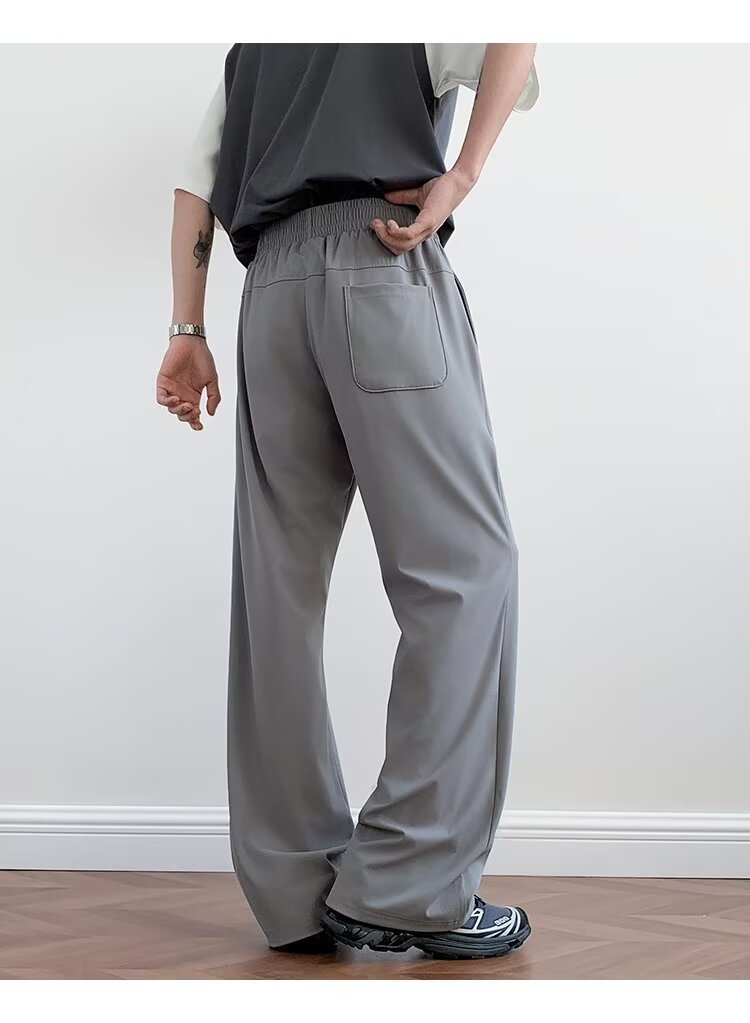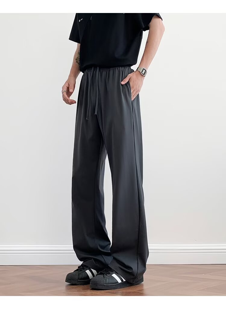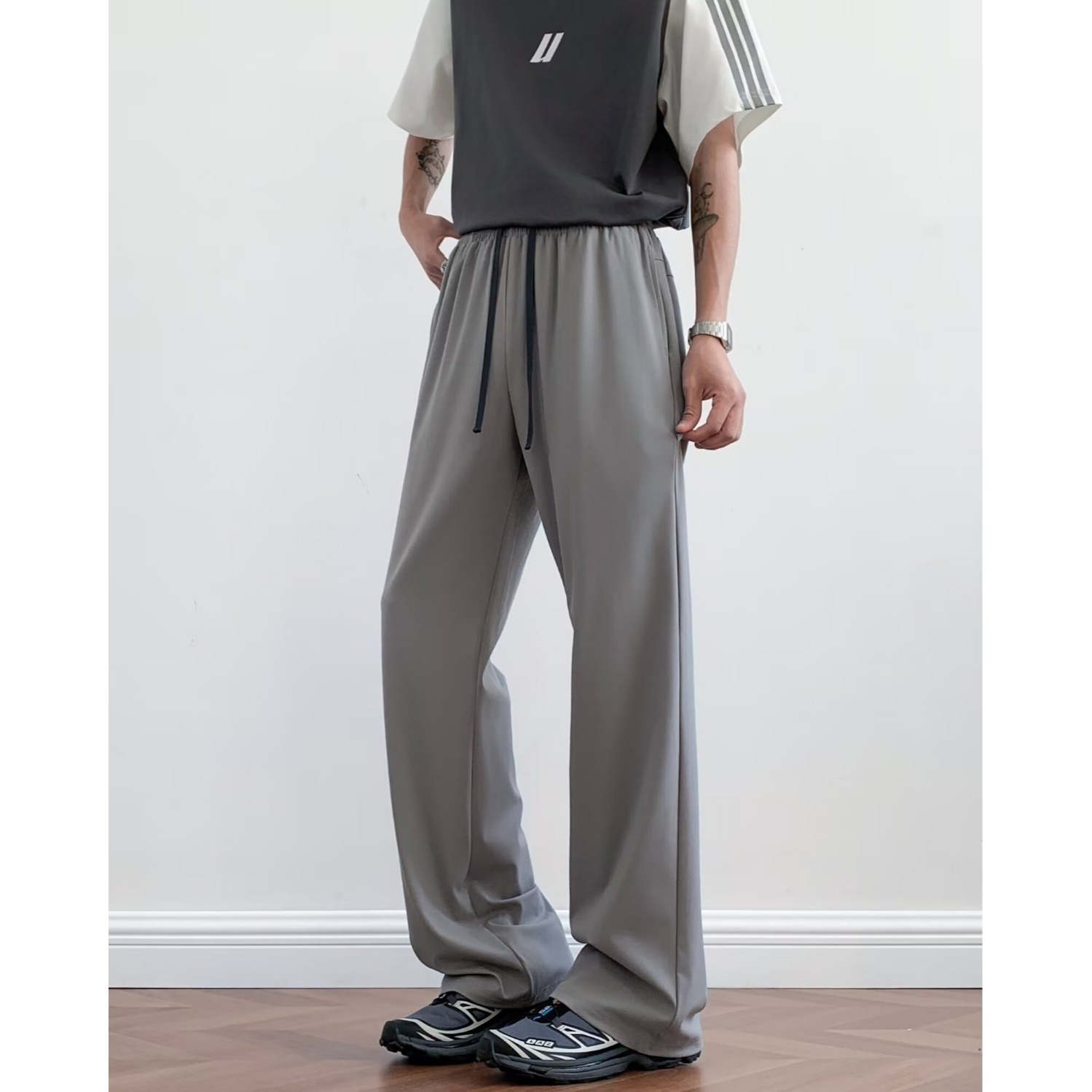 여름 다용도 루즈 캐주얼 바지 얇은 트렌디 와이드 레그 스트레이트 드레이프 에어컨 아이스 실크 바지 남성용 바지
