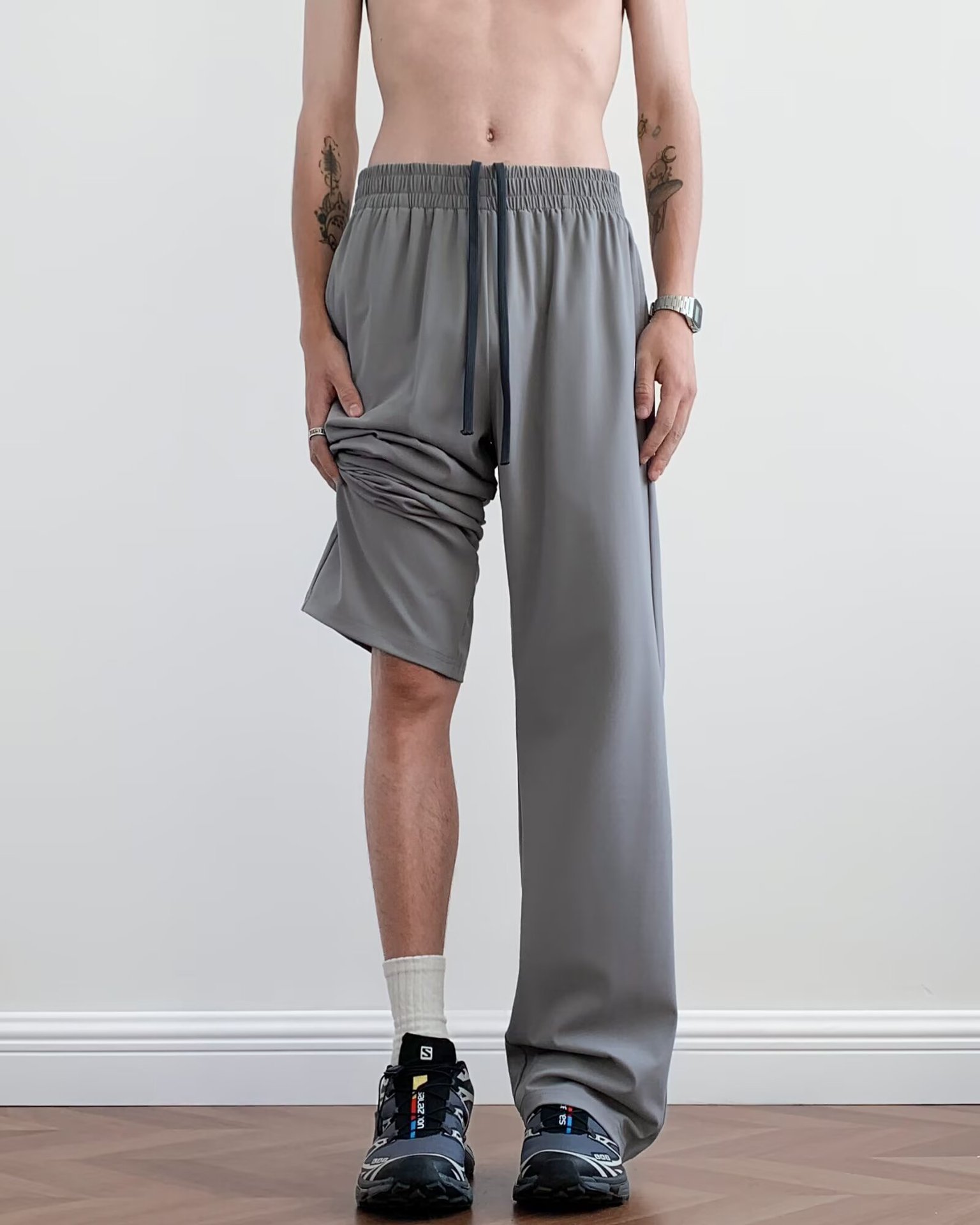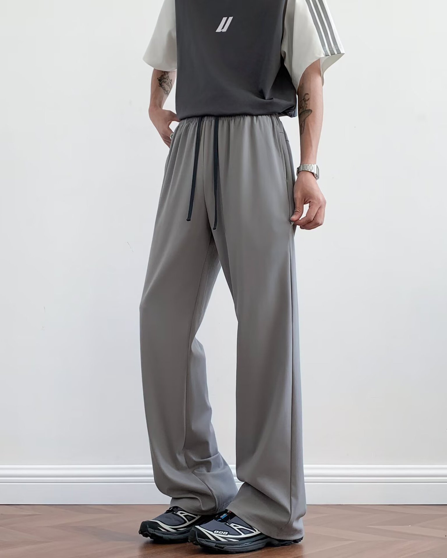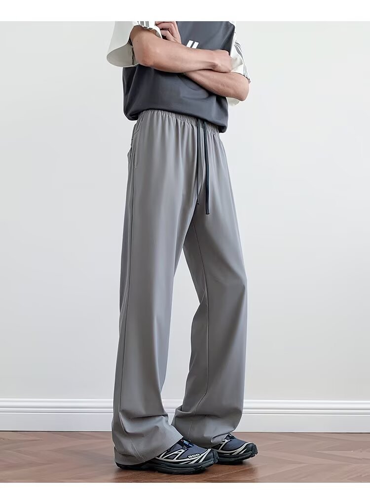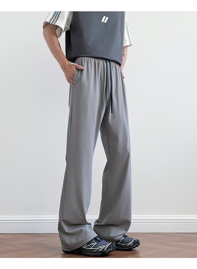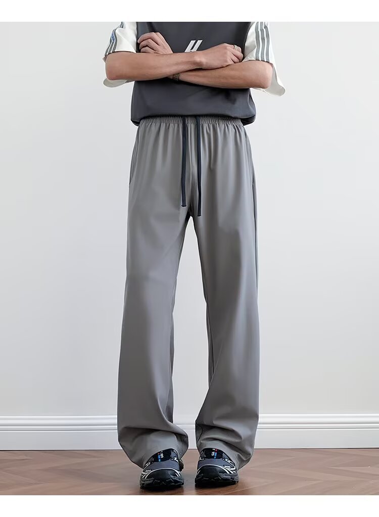 여름 다용도 루즈 캐주얼 바지 얇은 트렌디 와이드 레그 스트레이트 드레이프 에어컨 아이스 실크 바지 남성용 바지스토어 가기
