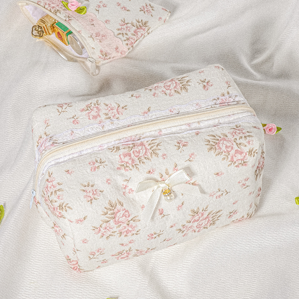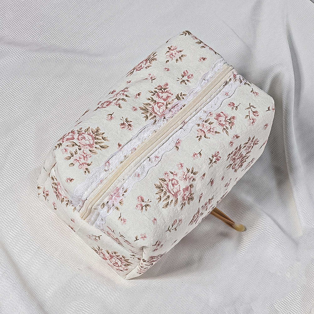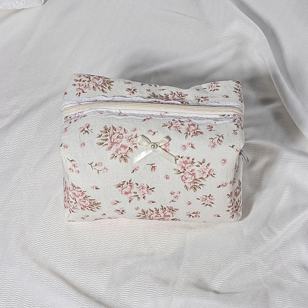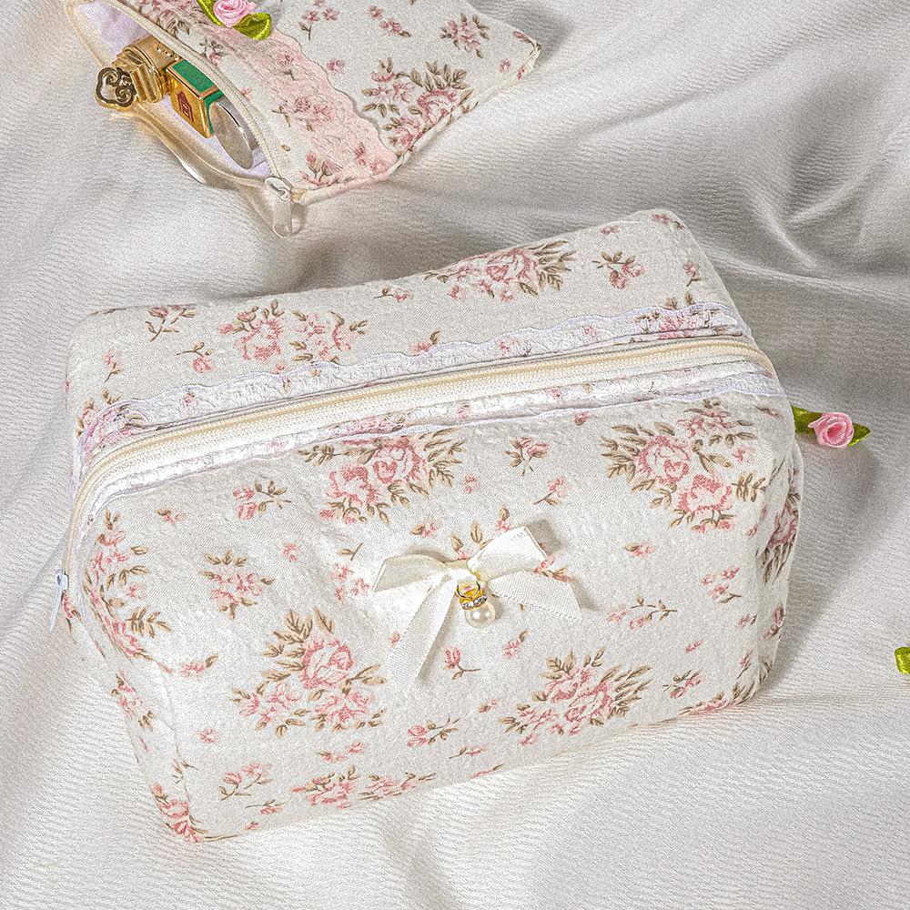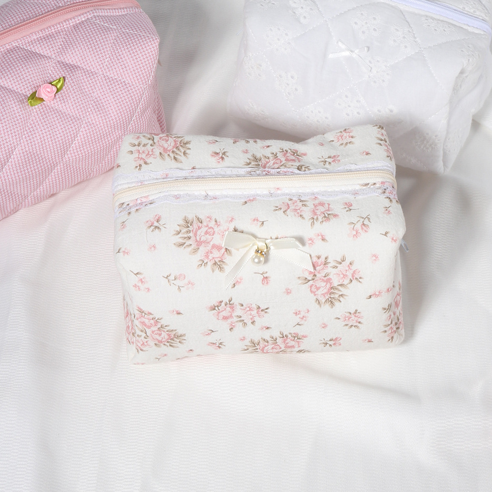 퀼트 레이스 꽃무늬 리본 워시 백 휴대용 립스틱 보관 가방 소녀 화장품 지퍼 가방