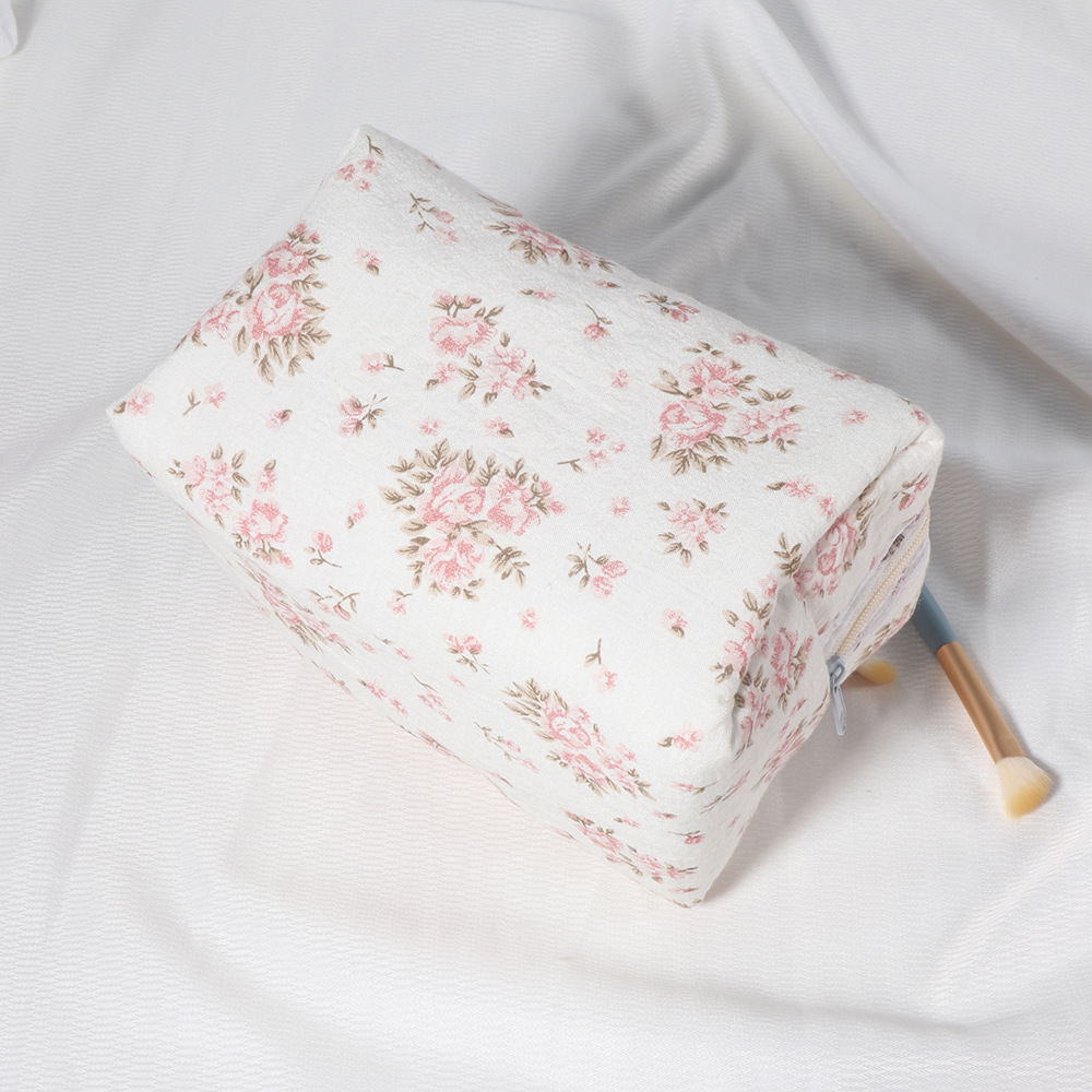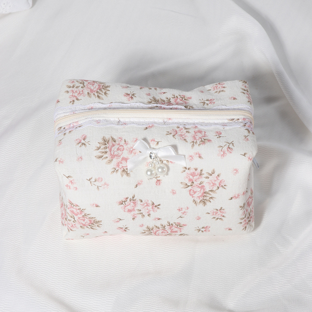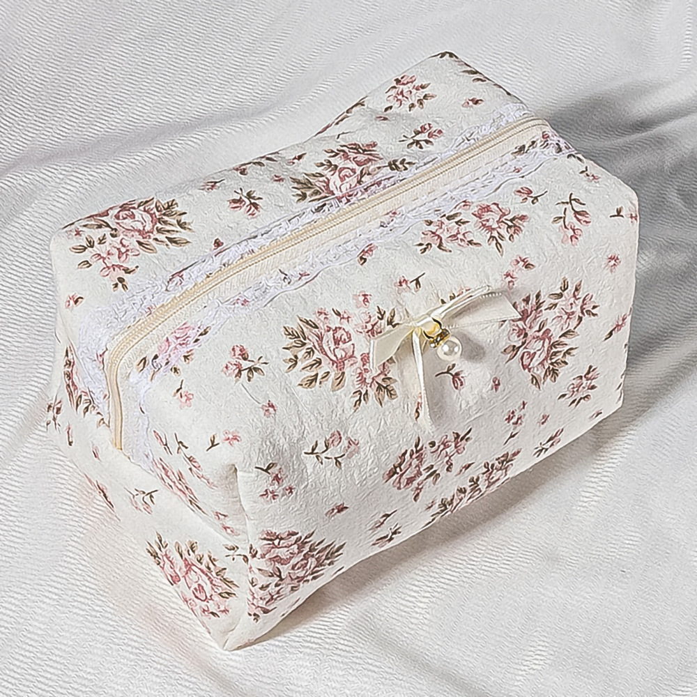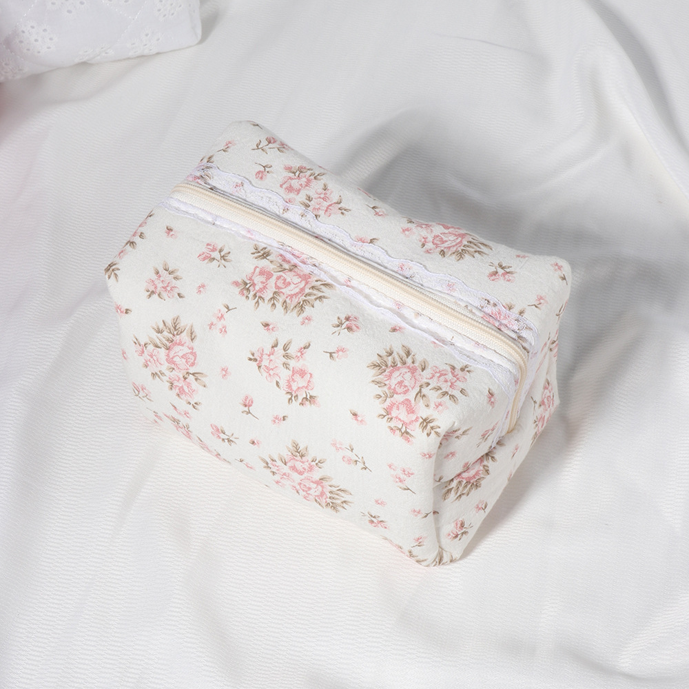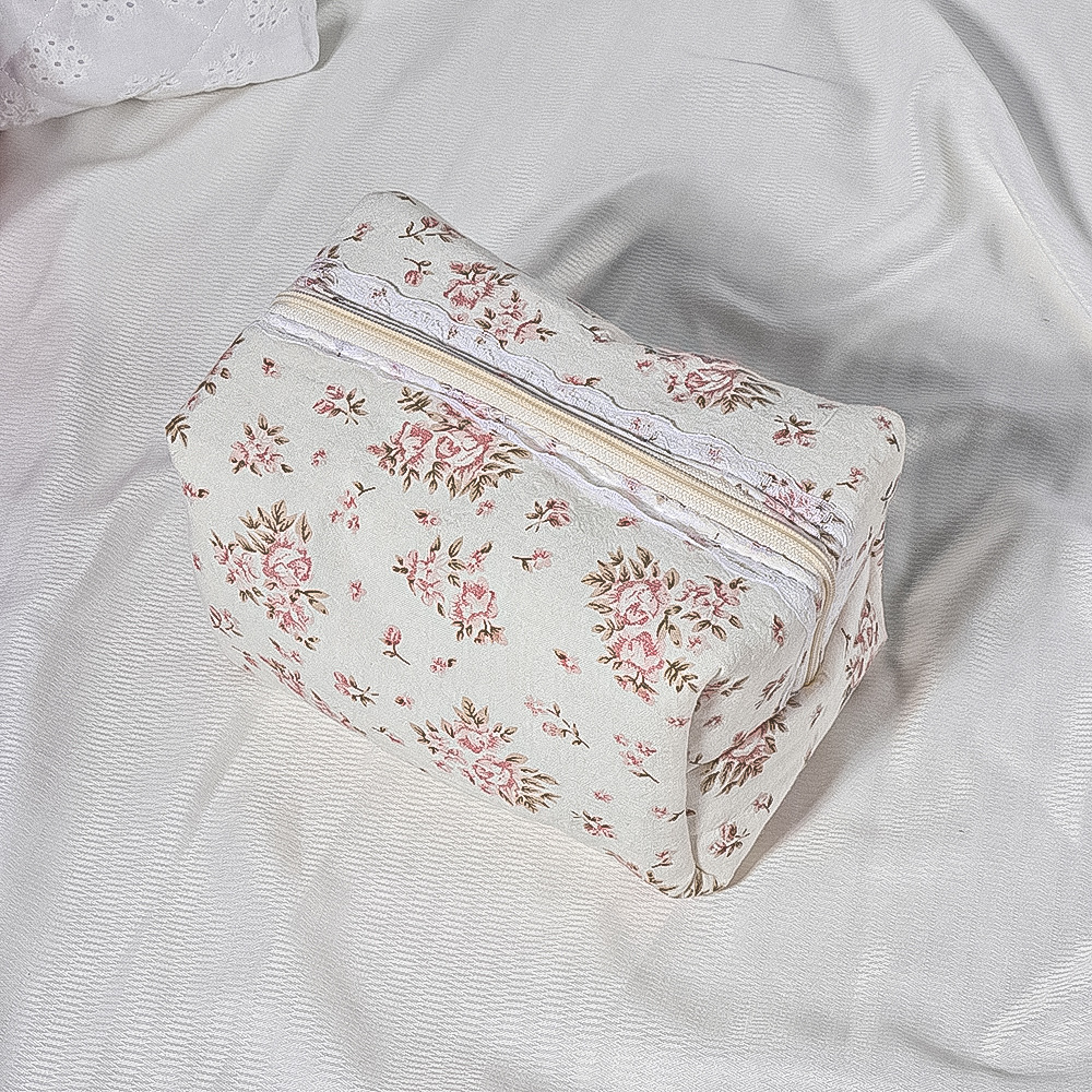 퀼트 레이스 꽃무늬 리본 워시 백 휴대용 립스틱 보관 가방 소녀 화장품 지퍼 가방