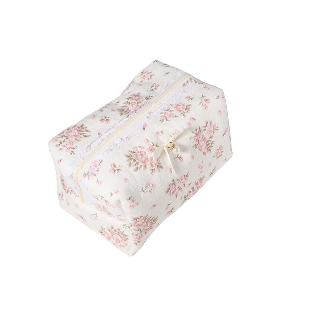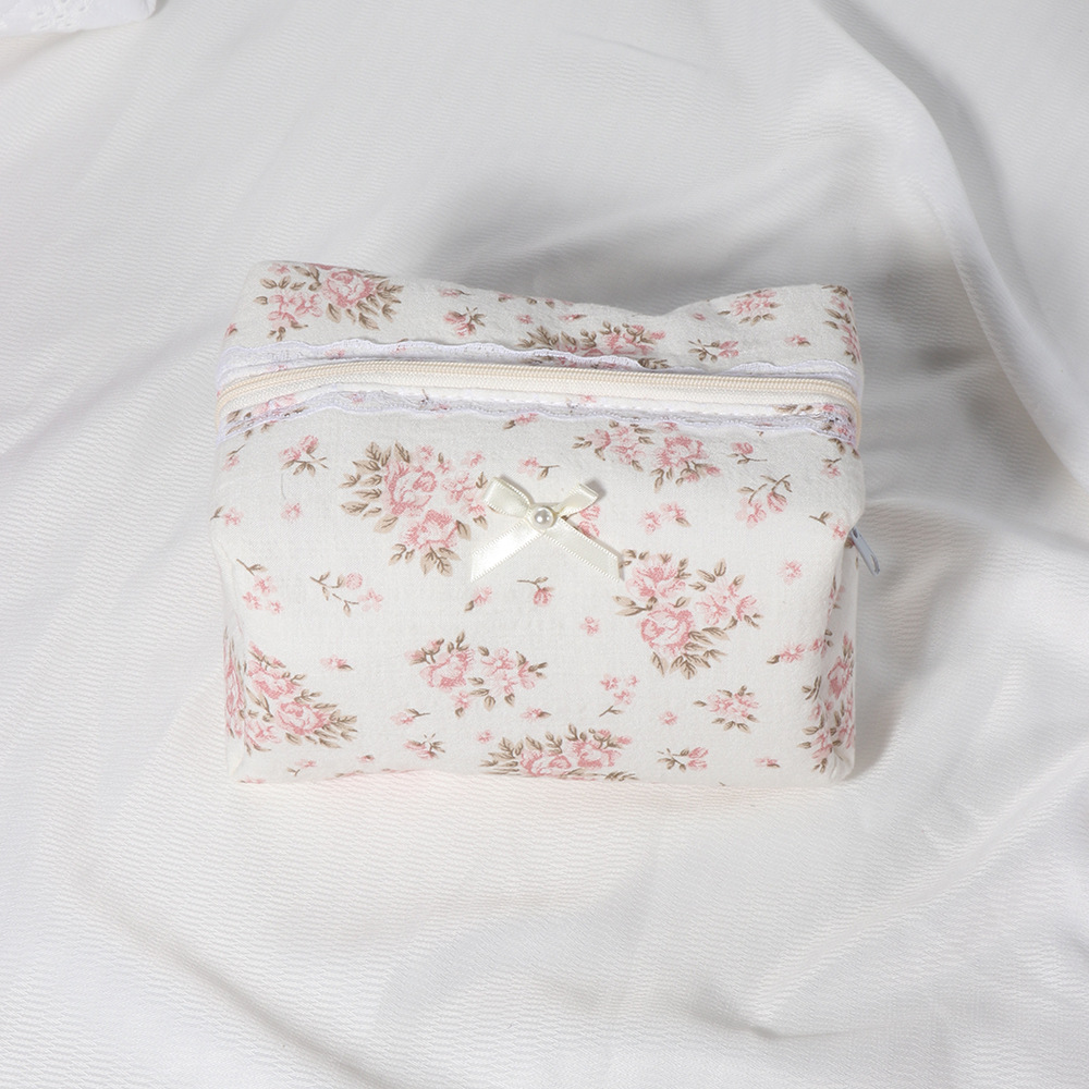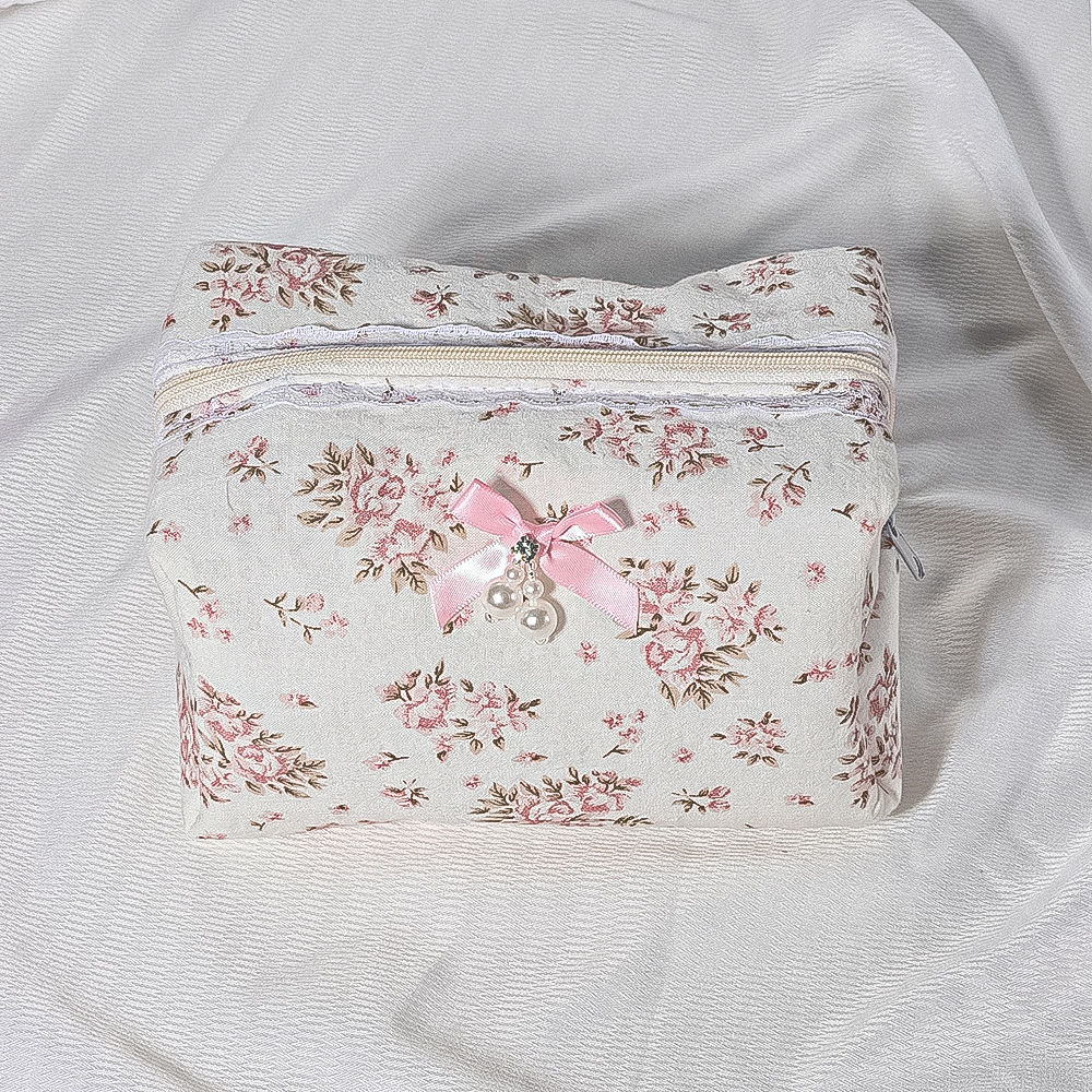 夹棉蕾丝花边花卉蝴蝶结洗漱包便携口红收纳包女生化妆品拉链包袋