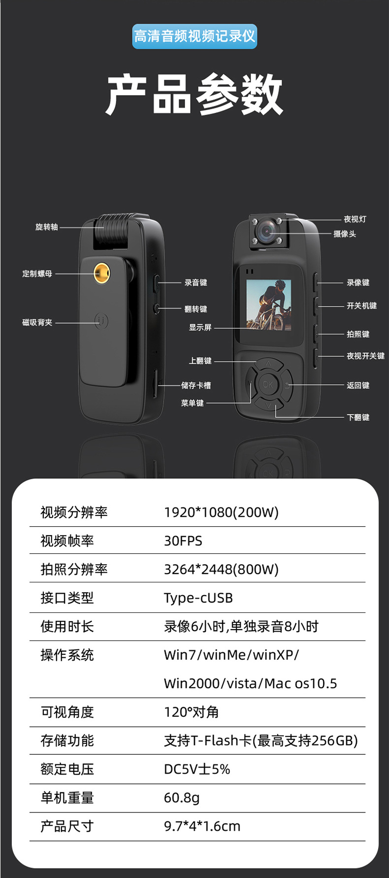 1080 HD 나이트 비전 듀티 사이클링 헬멧 여행 레코더 미니 카메라 카메라 녹음 펜 마그네틱 백 클립스토어 가기