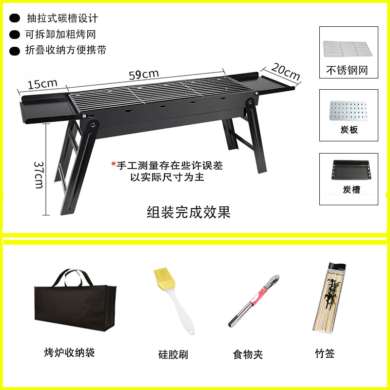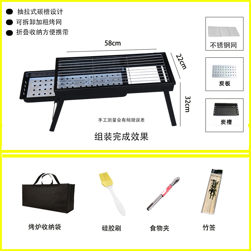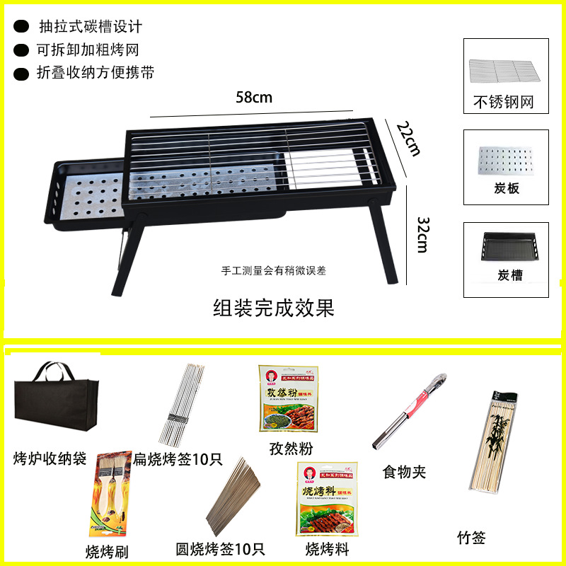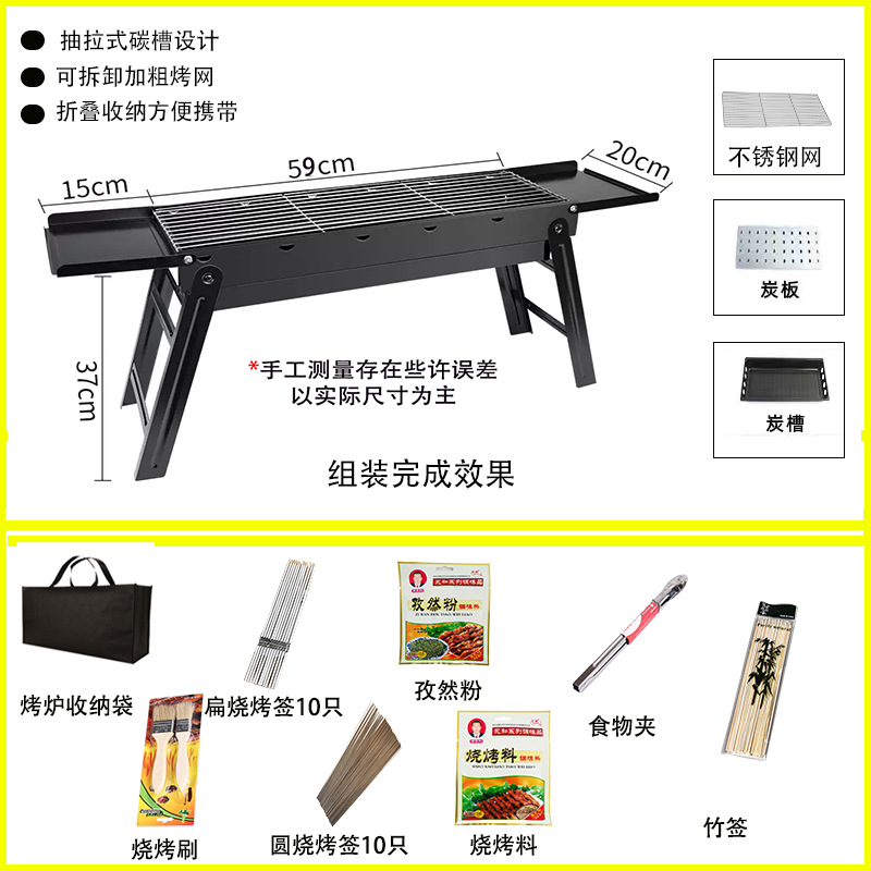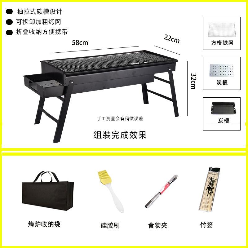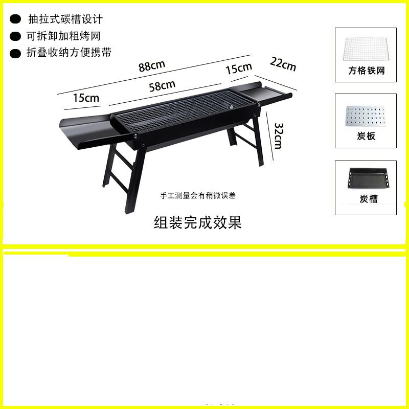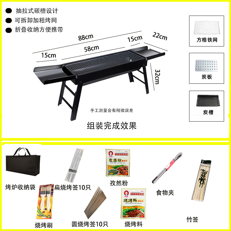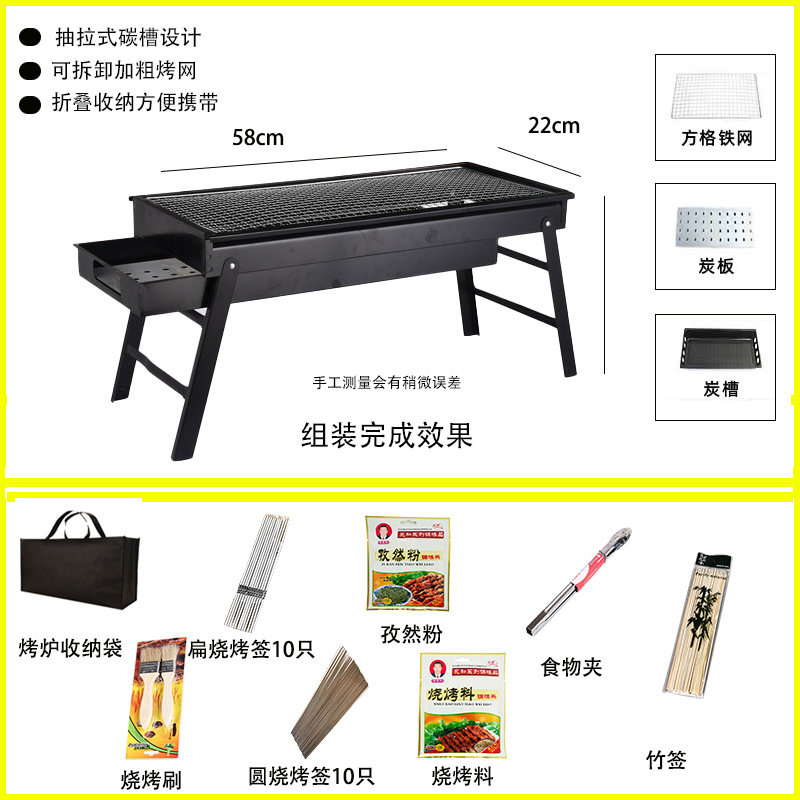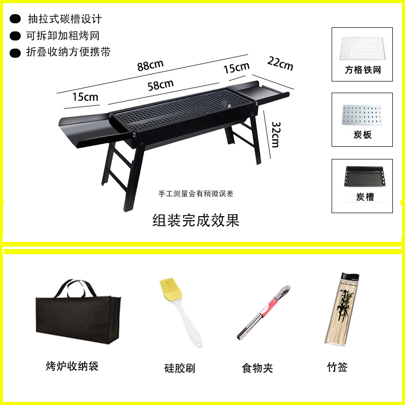• 두꺼워진 긴 접이식 바비큐 그릴 + 양념 테이블 + 4종 세트