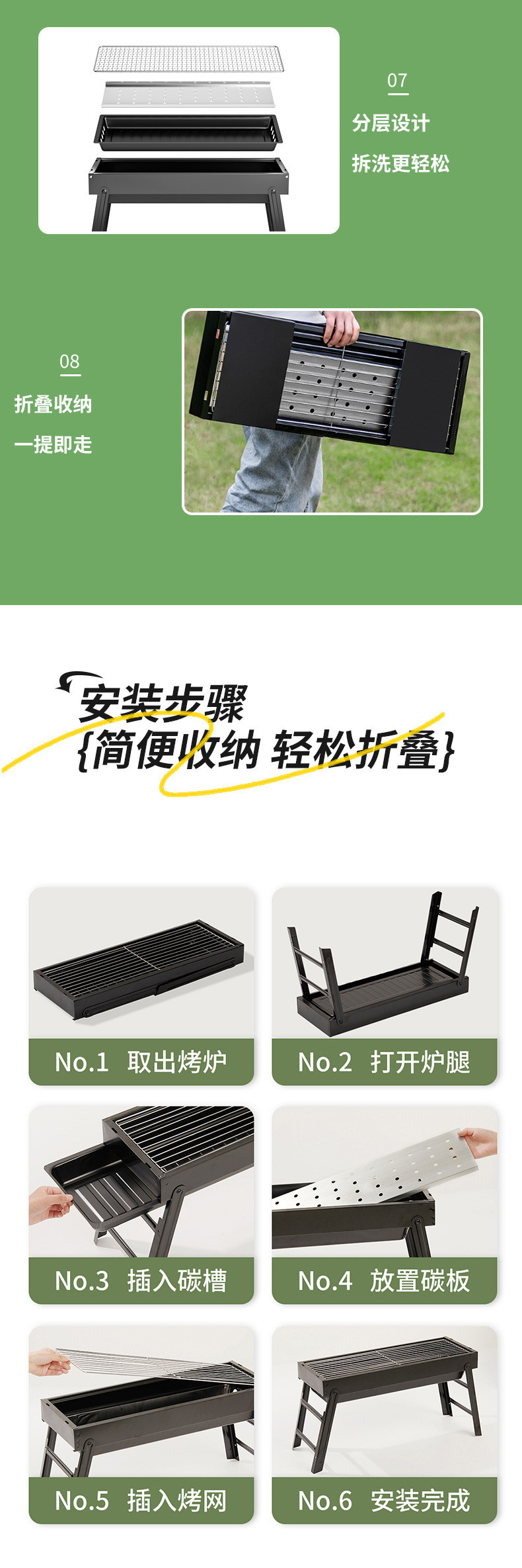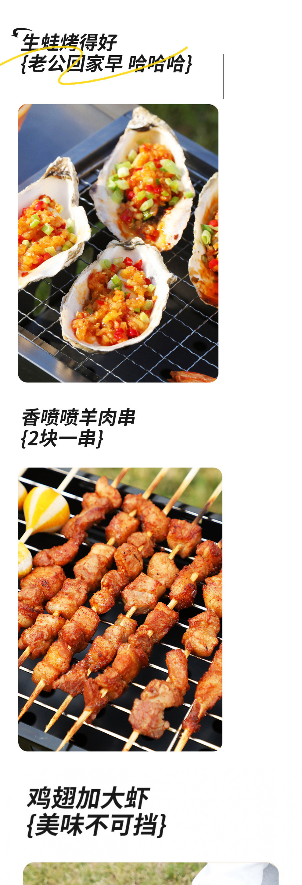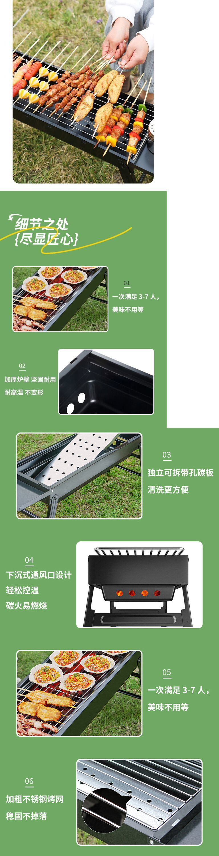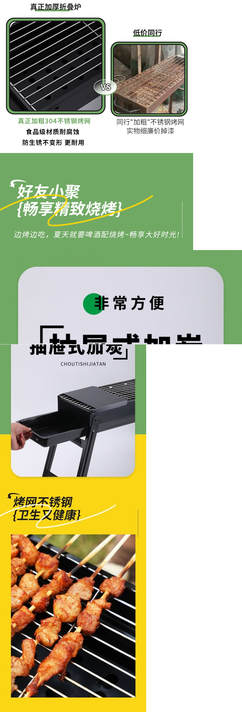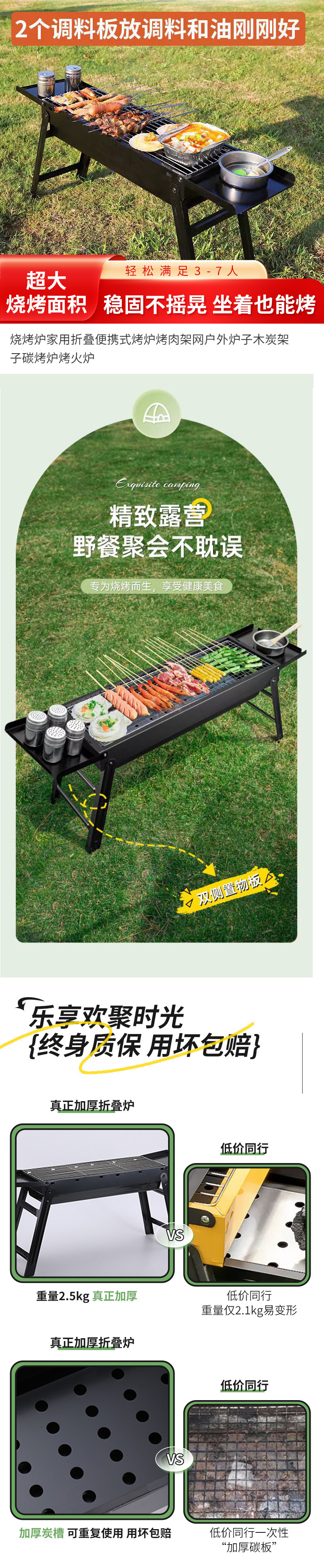 • 두꺼워진 긴 접이식 바비큐 그릴 + 양념 테이블 + 4종 세트