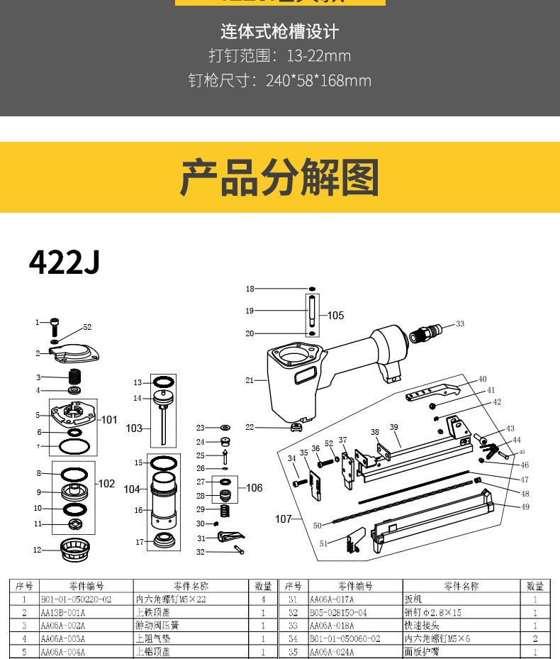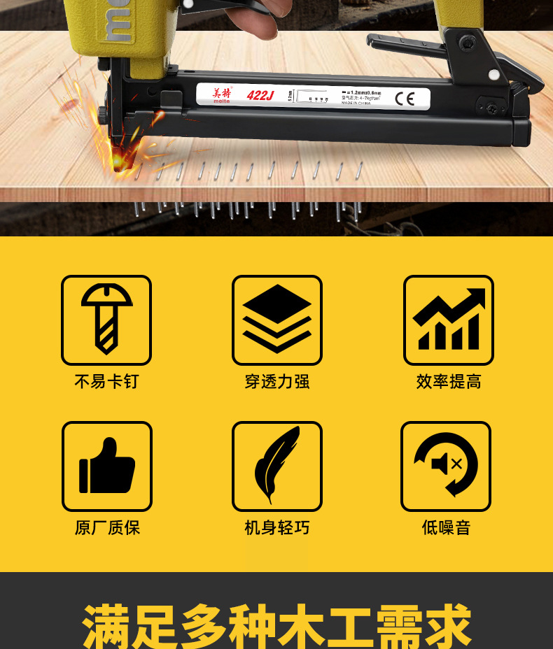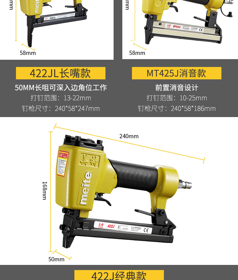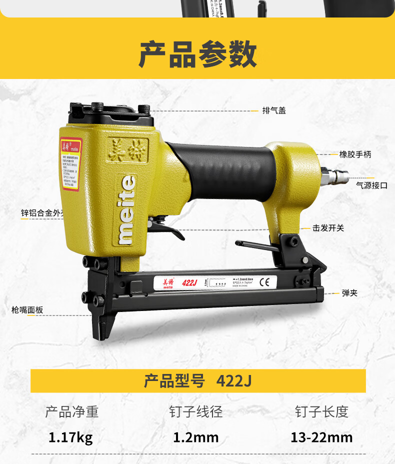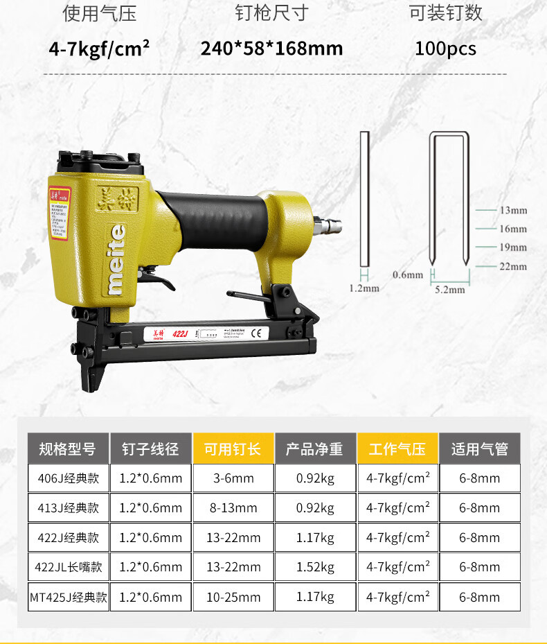 메이테 에어 네일건 406J/413J/422JL 목공용 에어 네일건, 공압식 U자형 스틸 못 재고 있음스토어 가기
