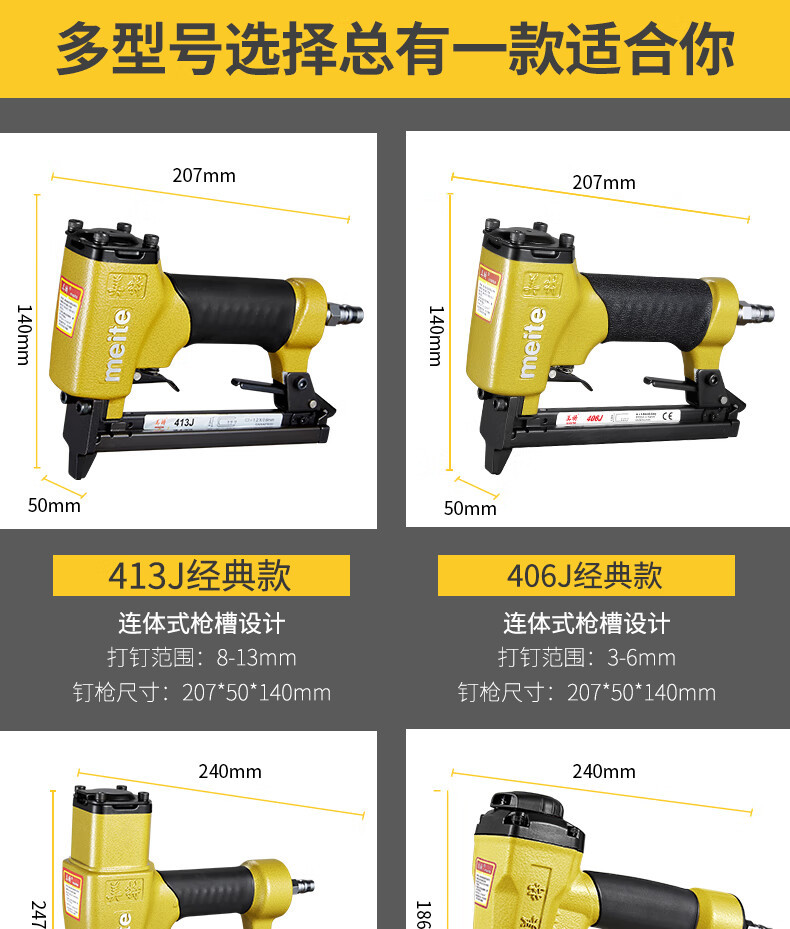 메이테 에어 네일건 406J/413J/422JL 목공용 에어 네일건, 공압식 U자형 스틸 못 재고 있음