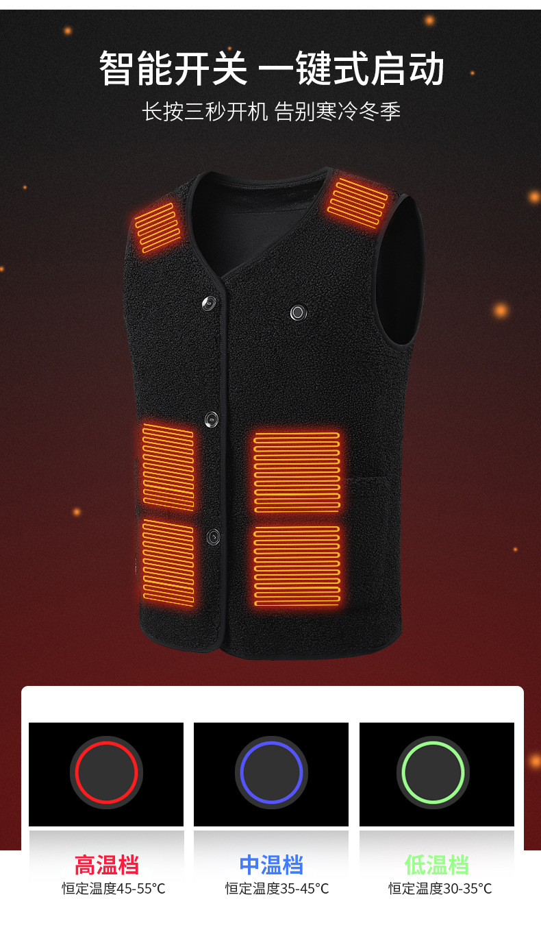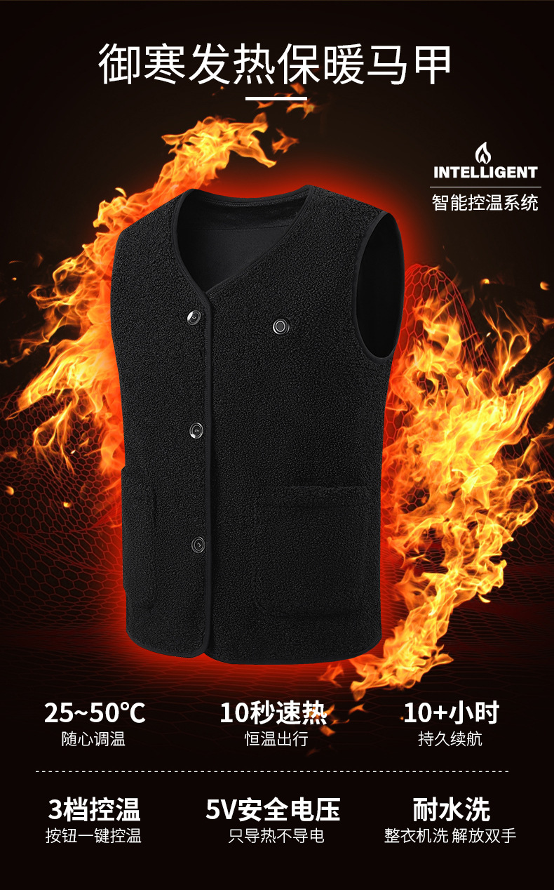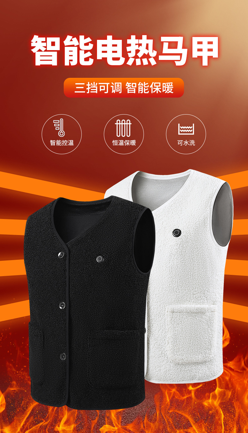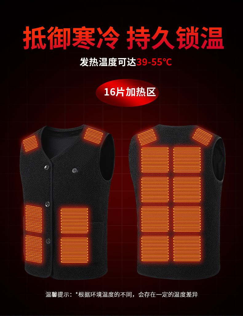 국경 간 가열 조끼 테디 벨벳 남성 및 여성 전기 가열 조끼 V 넥 USB 전원 스마트 항온 가열 의류스토어 가기