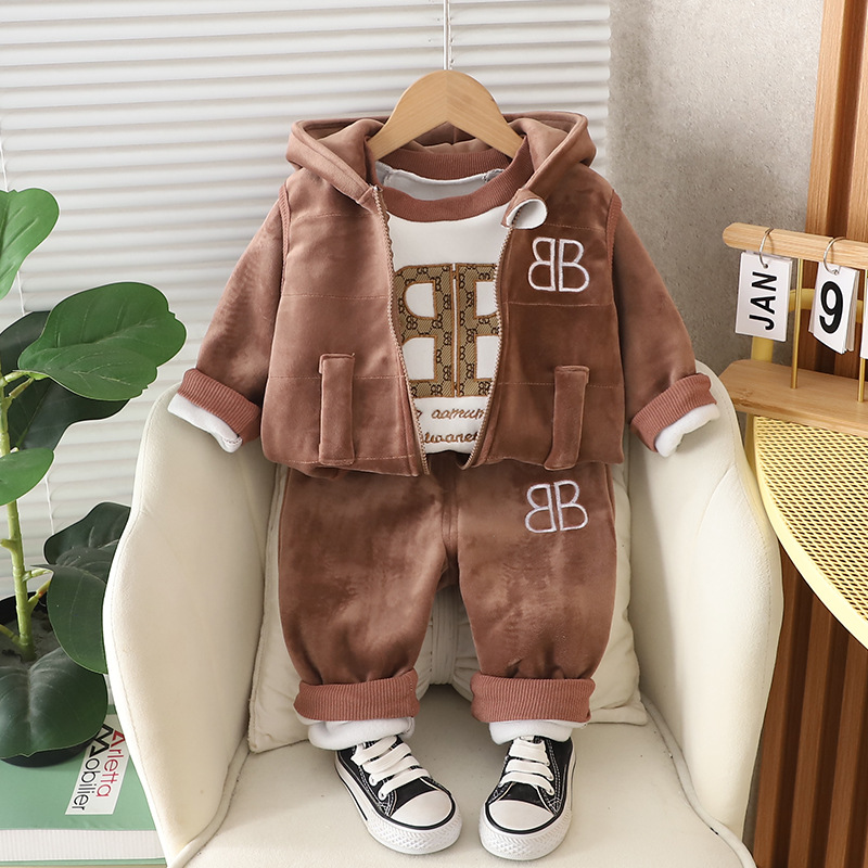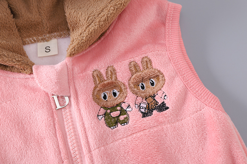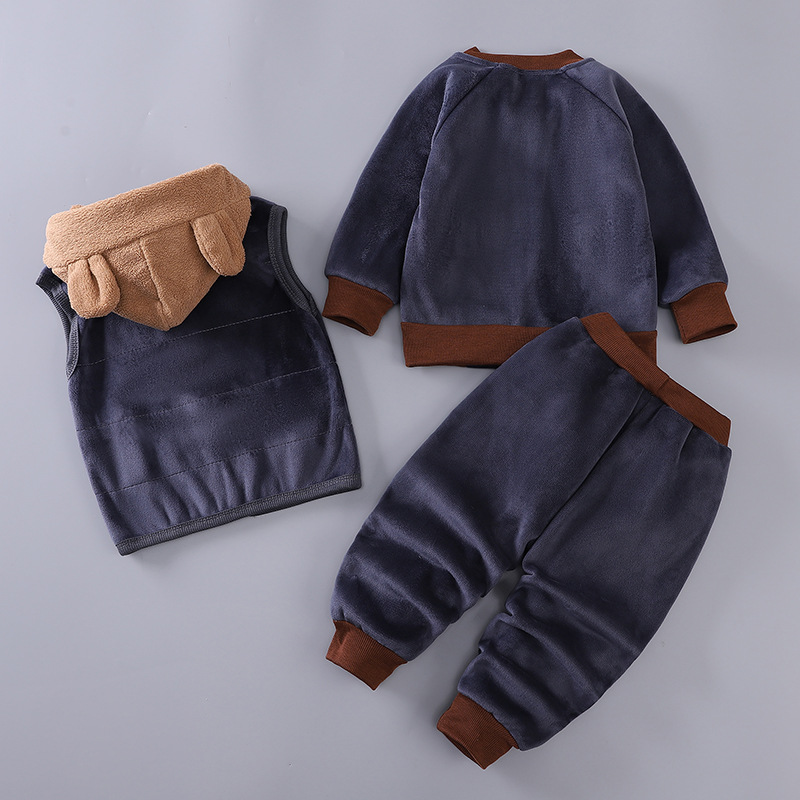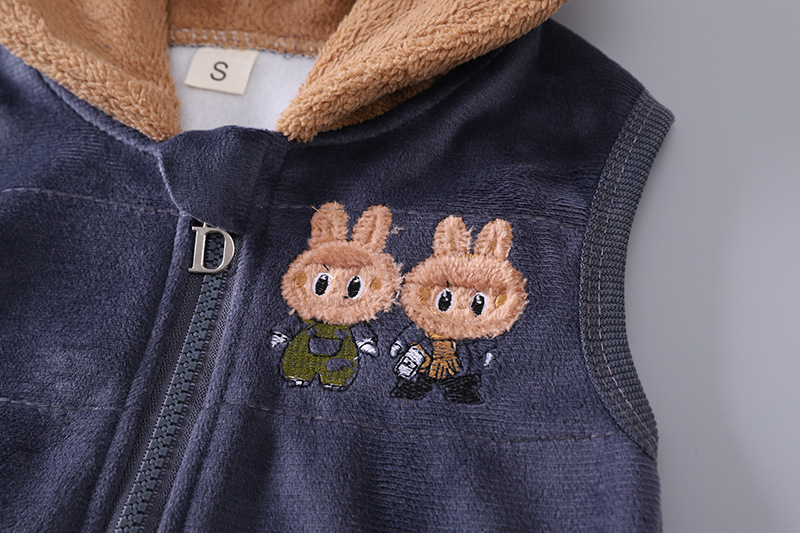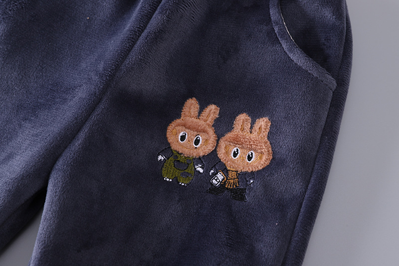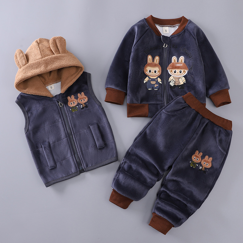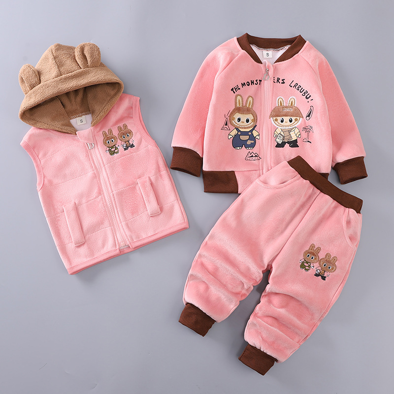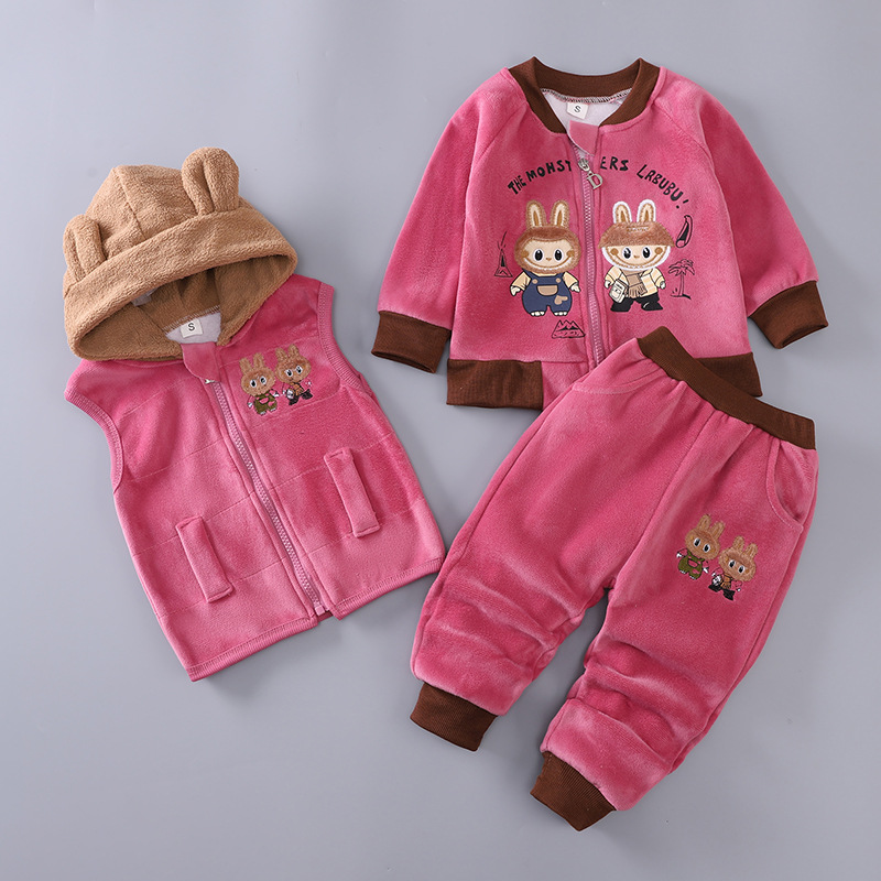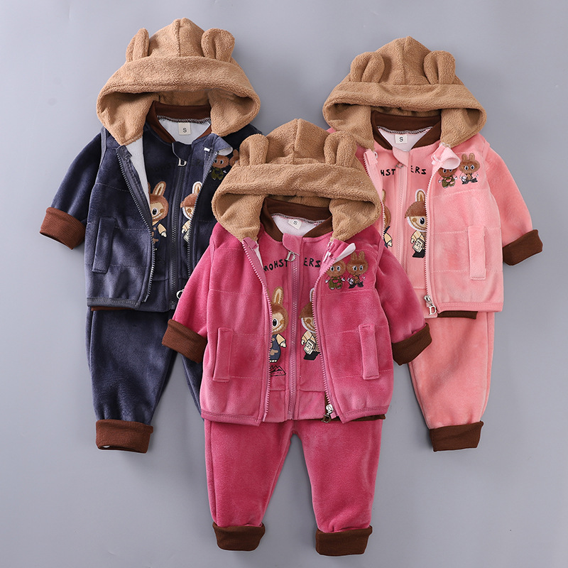 새로운 가을 스타일 아동복 플러스 벨벳 가을, 겨울 의류 어린이 만화 토끼 3 피스 세트 남성과 여성 아기 어린이 세트 유행스토어 가기