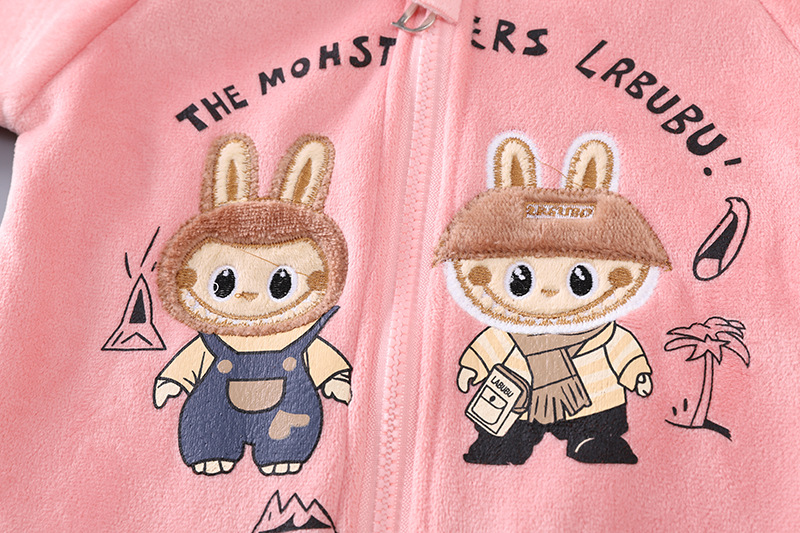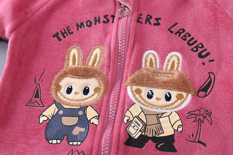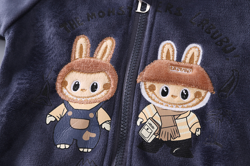 새로운 가을 스타일 아동복 플러스 벨벳 가을, 겨울 의류 어린이 만화 토끼 3 피스 세트 남성과 여성 아기 어린이 세트 유행