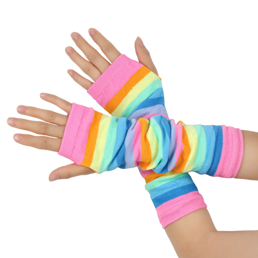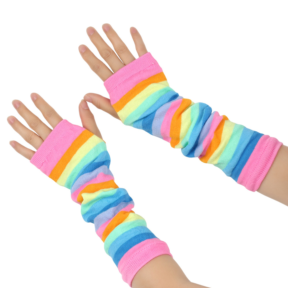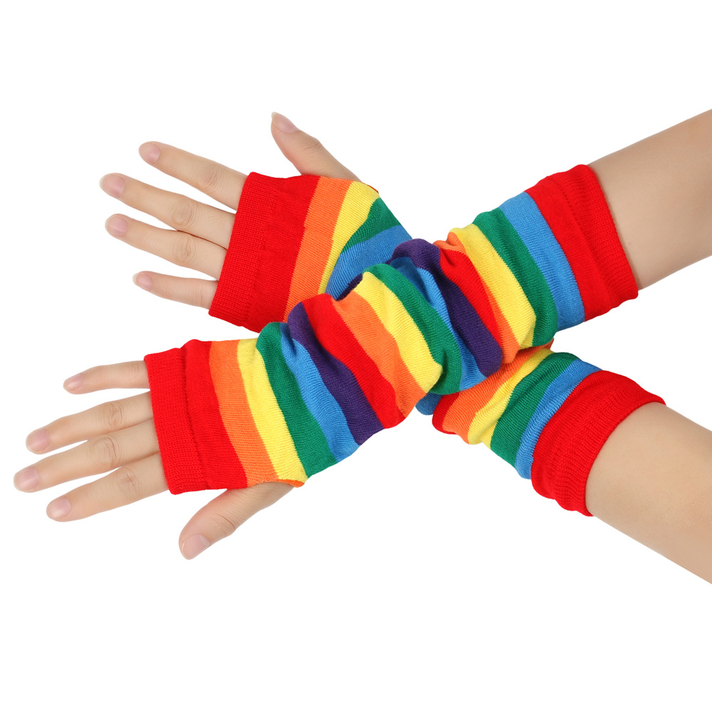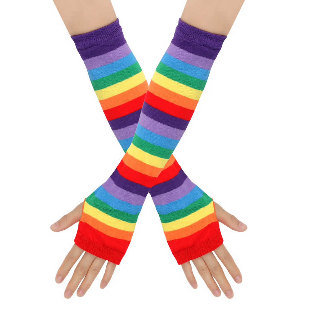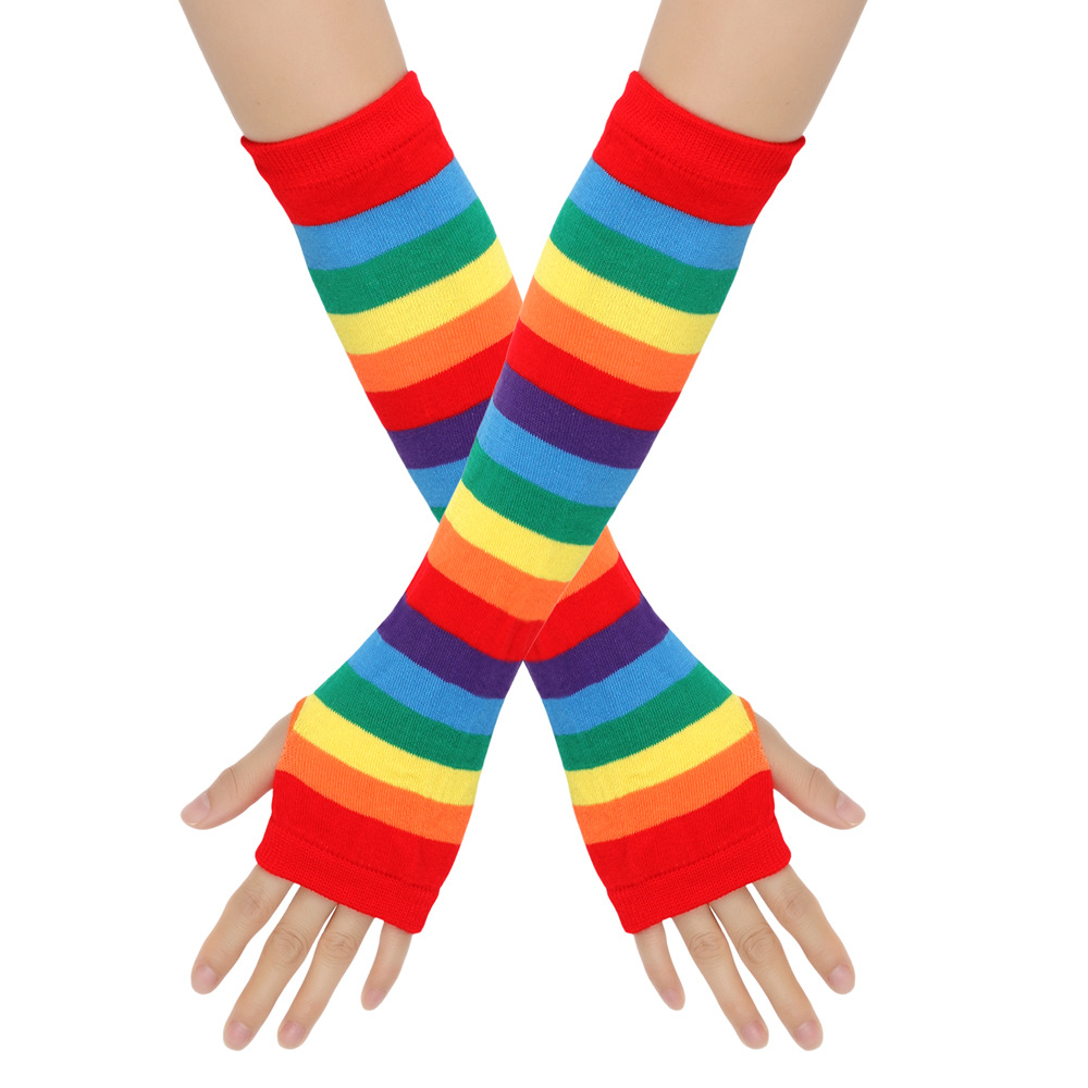 국경 간 무지개 니트 장갑 다채로운 줄무늬 슬리브 유럽과 미국의 자부심 다채로운 축제 파티 파티 장갑 cosp스토어 가기