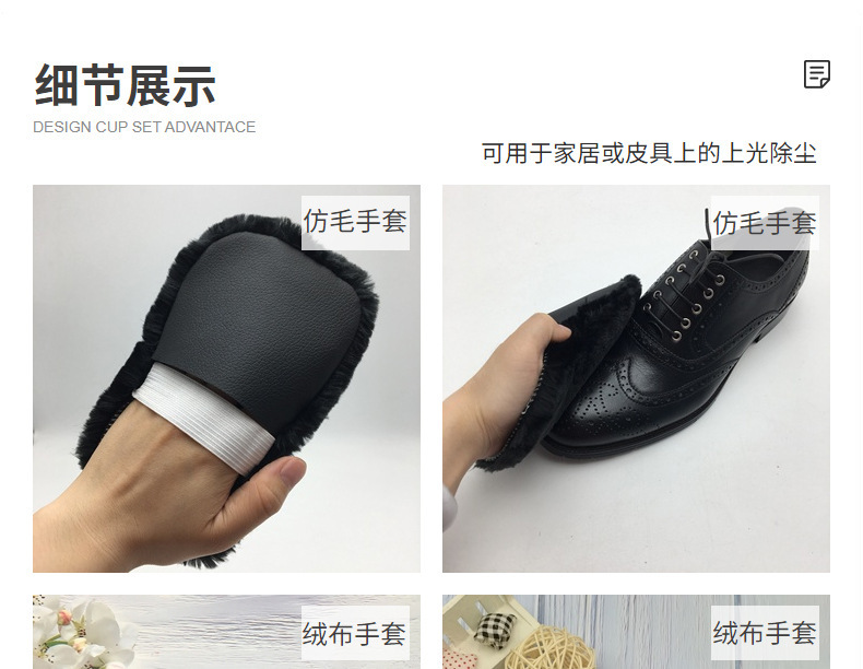 도매 청소, 연마 및 구두 닦기 부드러운 천 신발 용품, 신발 관리 제품, 벨벳 모조 모피 구두 닦기 장갑