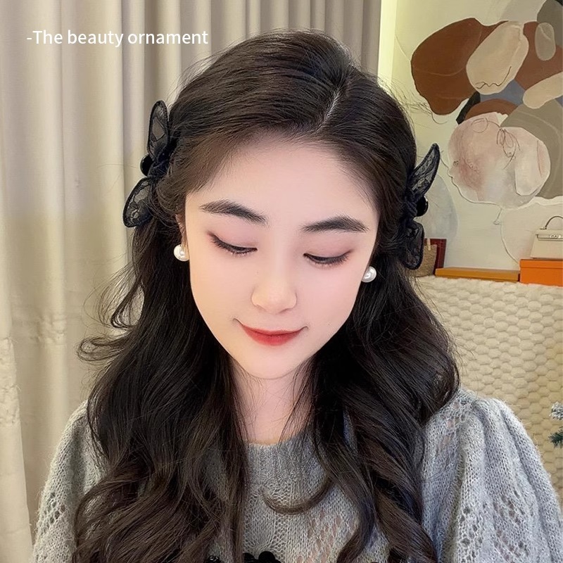 레이스 헤어 클립 2025 새로운 블랙 엘프 보우 클립 여성 앞머리 클립 사이드 클립 헤어 클립 머리 장식 클립