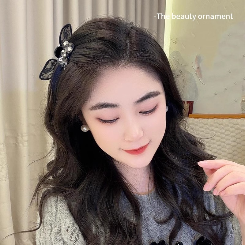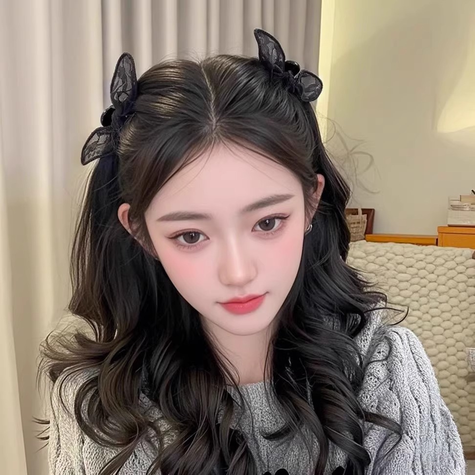 레이스 헤어 클립 2025 새로운 블랙 엘프 보우 클립 여성 앞머리 클립 사이드 클립 헤어 클립 머리 장식 클립스토어 가기