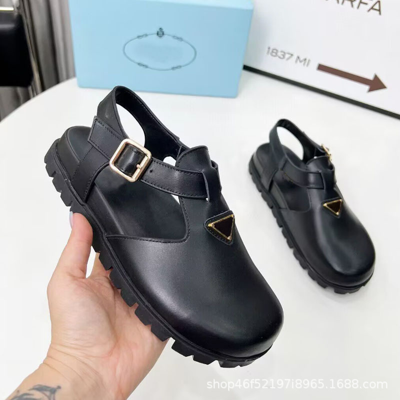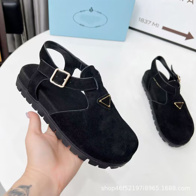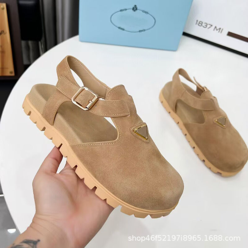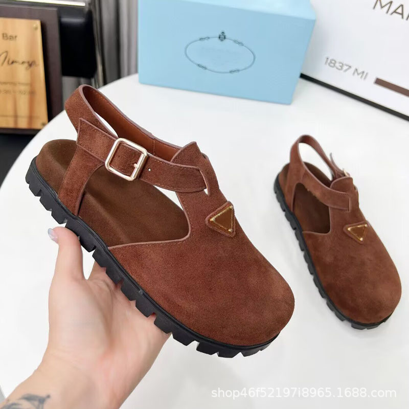 2025년 신상 여름 스타일 소가죽 스웨이드 라운드 토, 뒷면 버클, 복고풍 패션, 다재다능하고 편안한 여성용 플랫 샌들