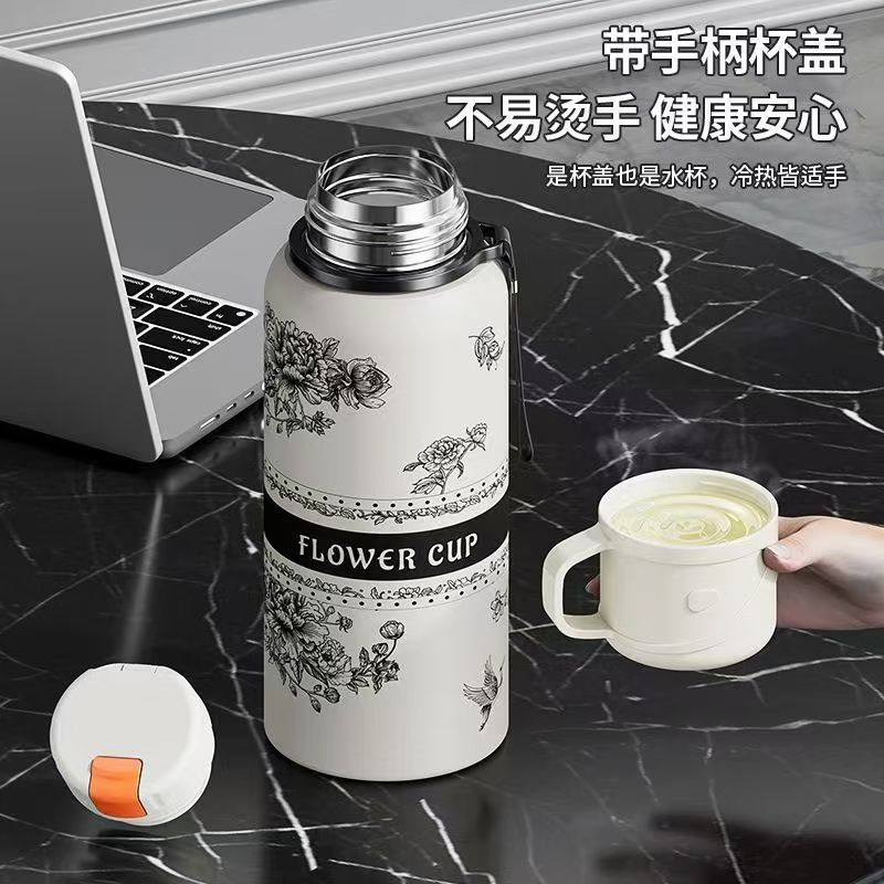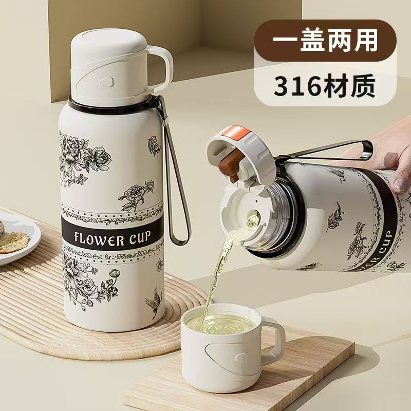 새로운 치자나무 보온병 컵, 고급스러운 휴대용 학생 물컵, 가정용 대용량 컵 316 스테인레스 스틸