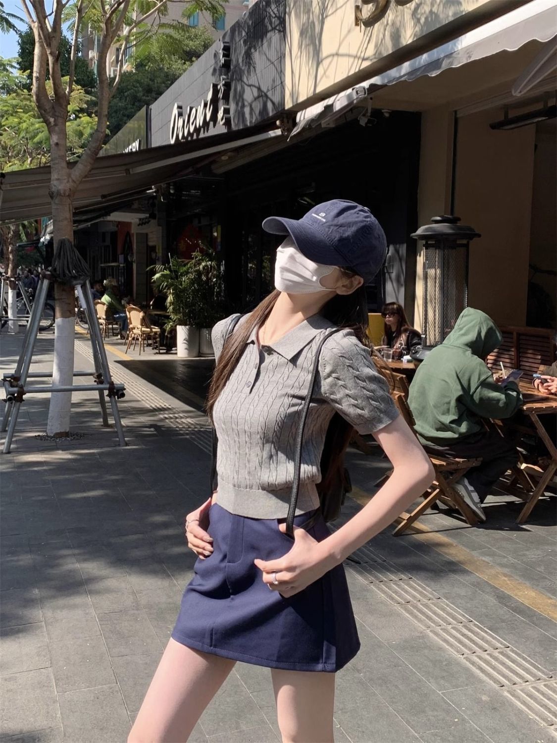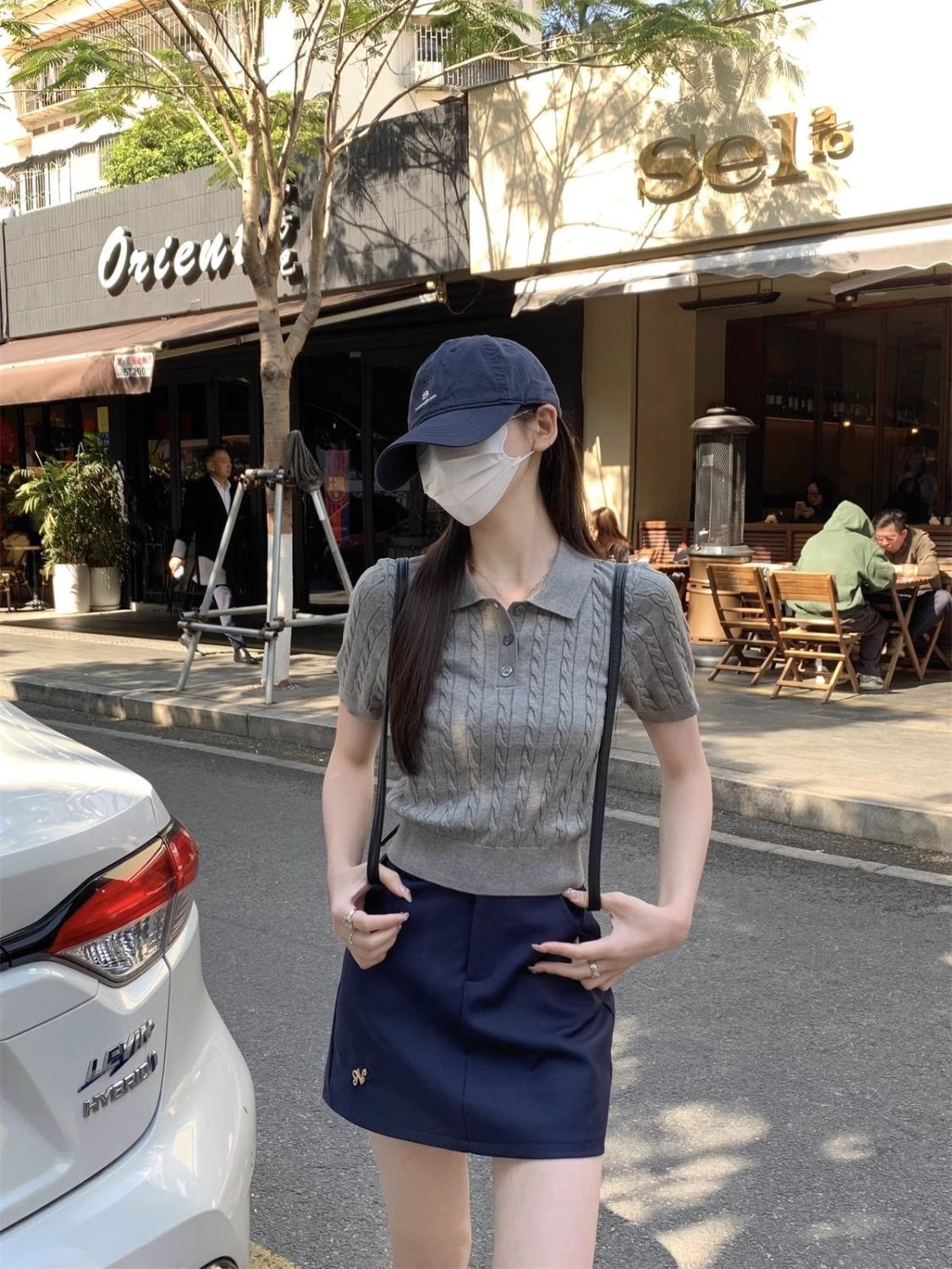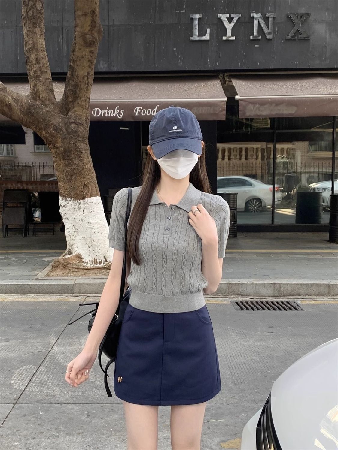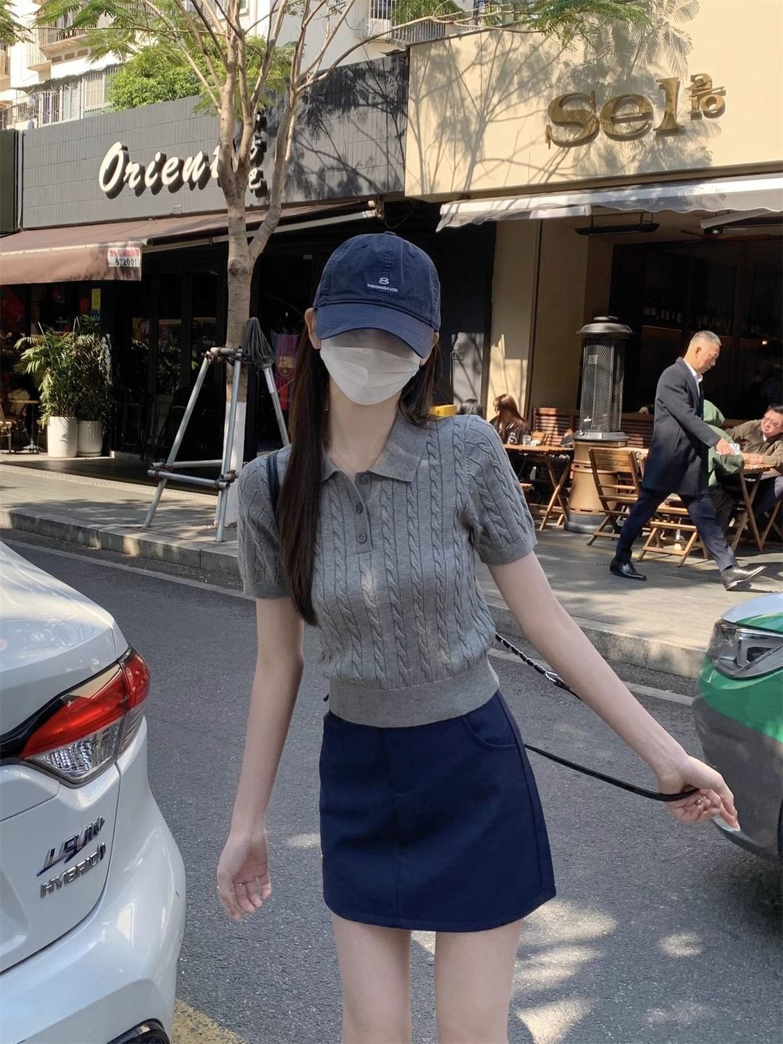 한국 트위스트 니트 스웨터 여성용 오른쪽 어깨 반팔 티셔츠 여름 얇은 틈새 슬리밍 폴로 칼라 탑 여성용스토어 가기