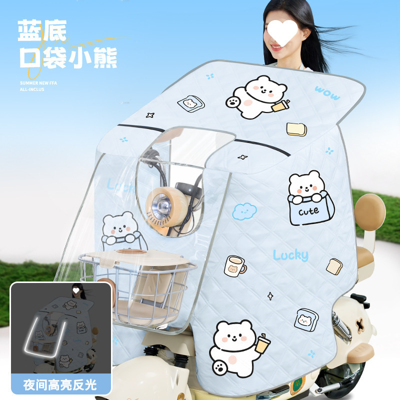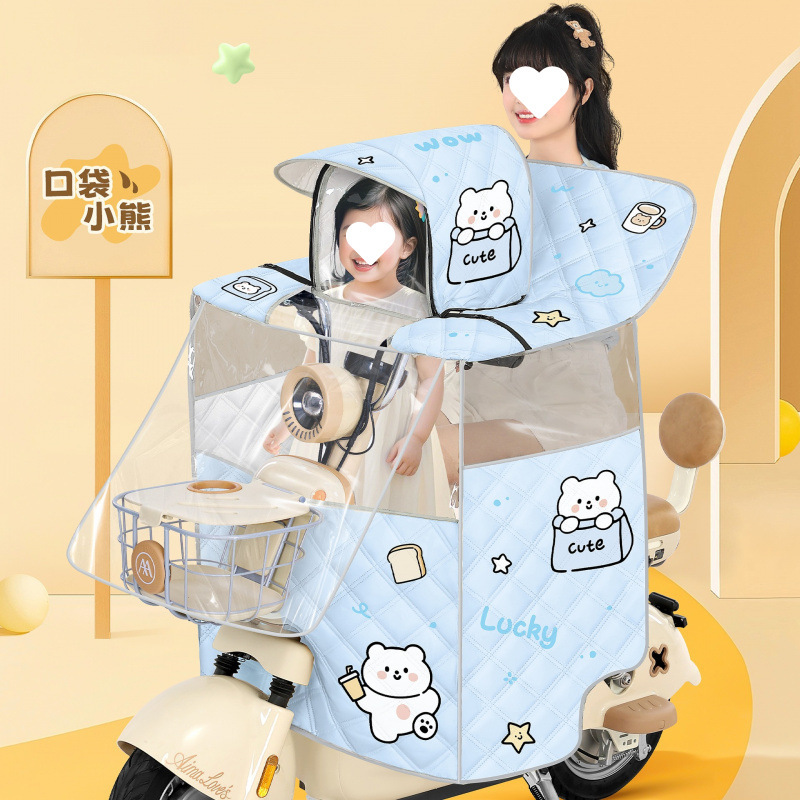 전기차 앞유리, 부모-자식 여름 일체형 자외선 차단제, 소형 배터리 자동차, 바람과 비 차단, 사계절 모두 사용 가능