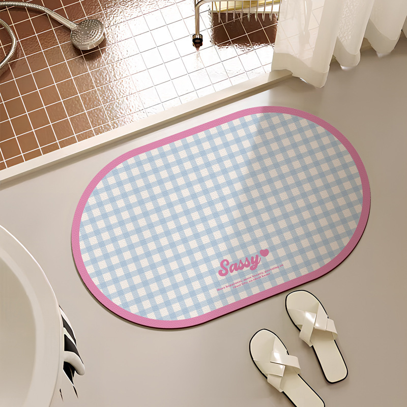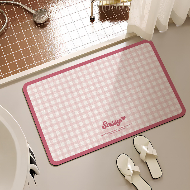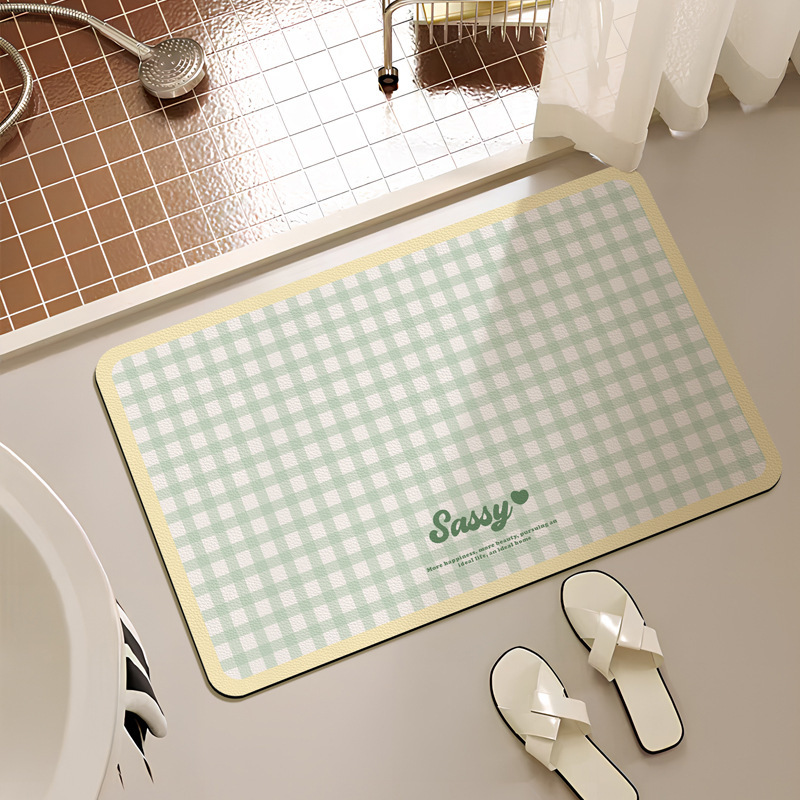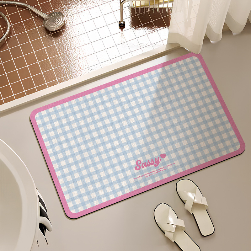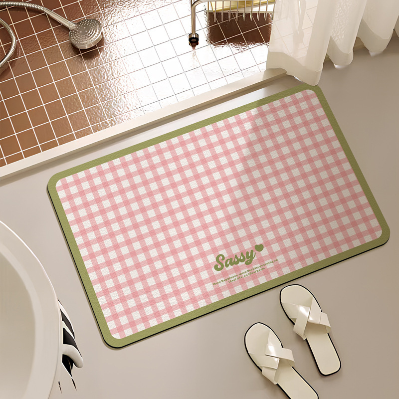크림 스타일 간단한 욕실 문 매트 작은 신선한 격자 무늬 화장실 흡수성 발 매트 홈 욕실 내마 모성 미끄럼 방지 매트