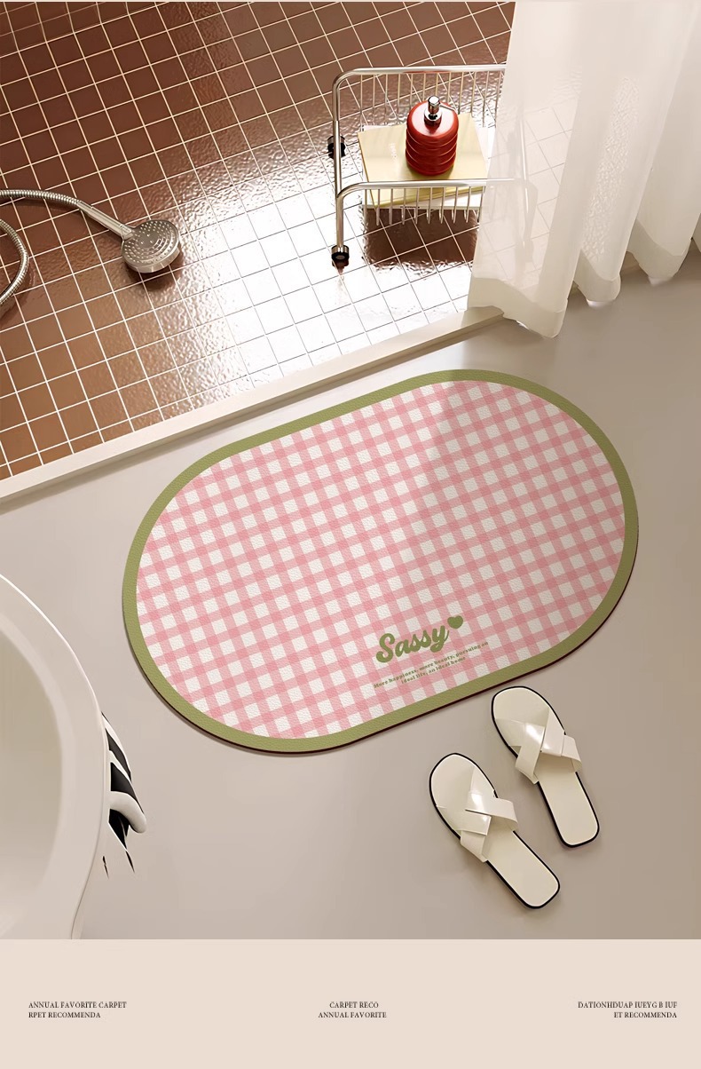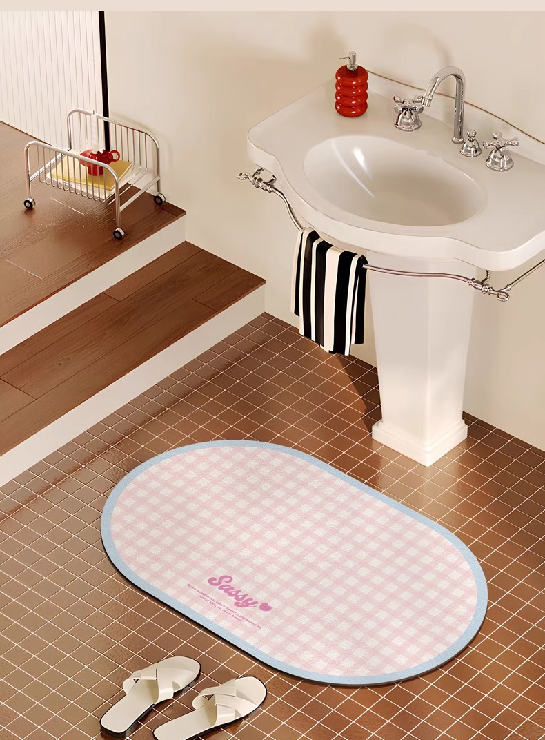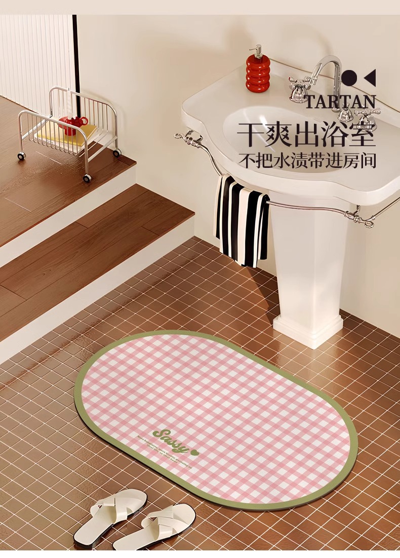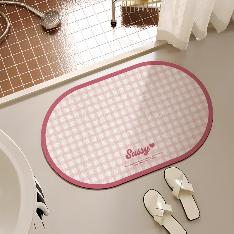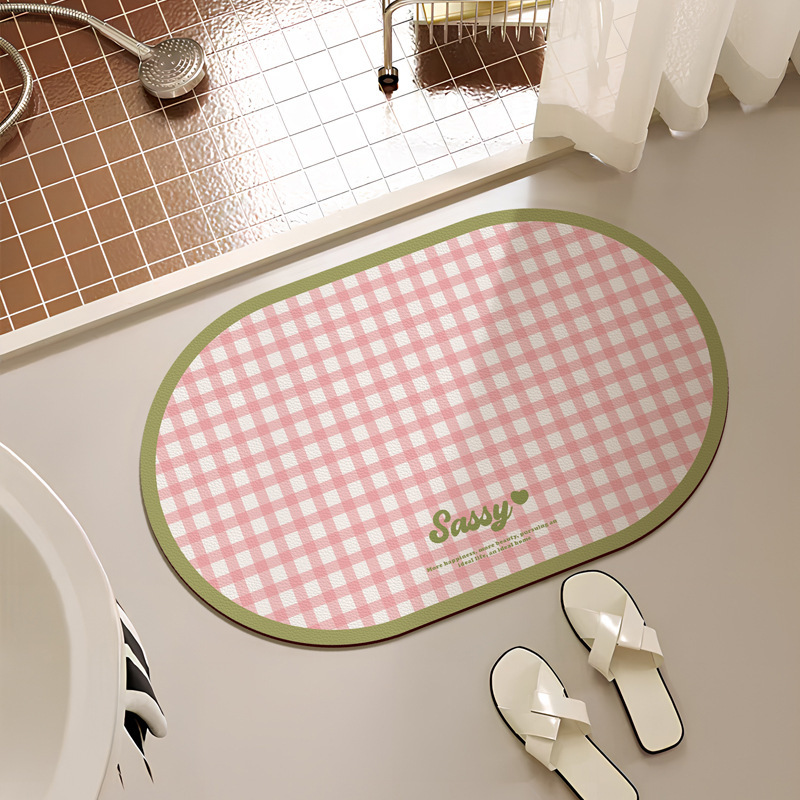 크림 스타일 간단한 욕실 문 매트 작은 신선한 격자 무늬 화장실 흡수성 발 매트 홈 욕실 내마 모성 미끄럼 방지 매트스토어 가기