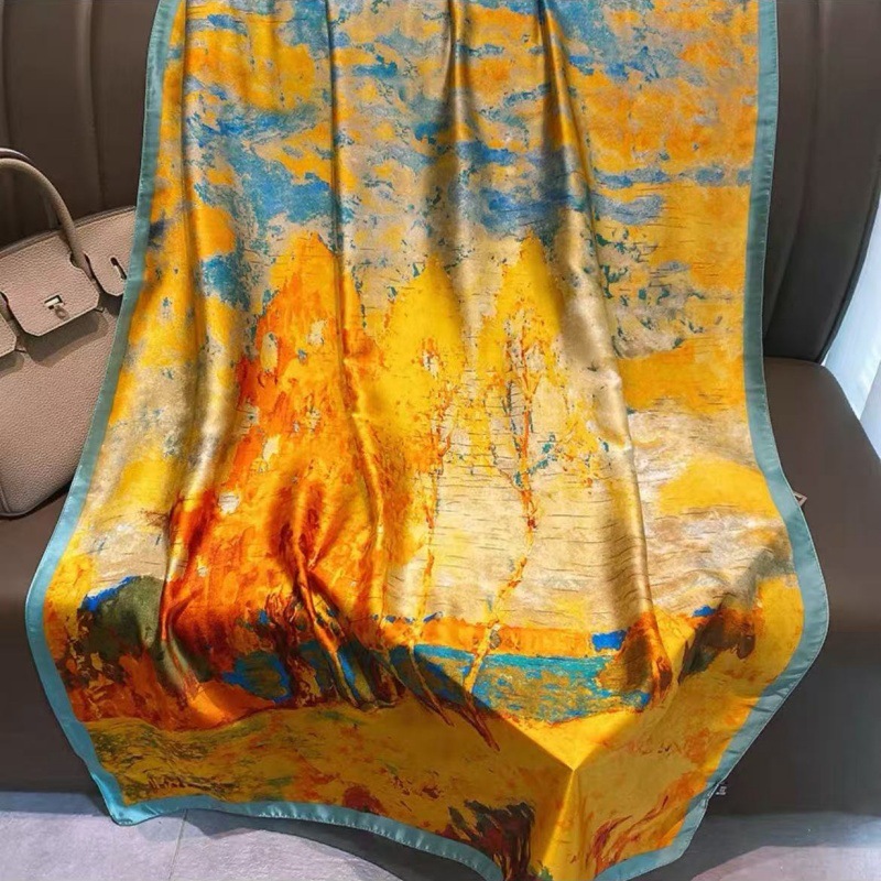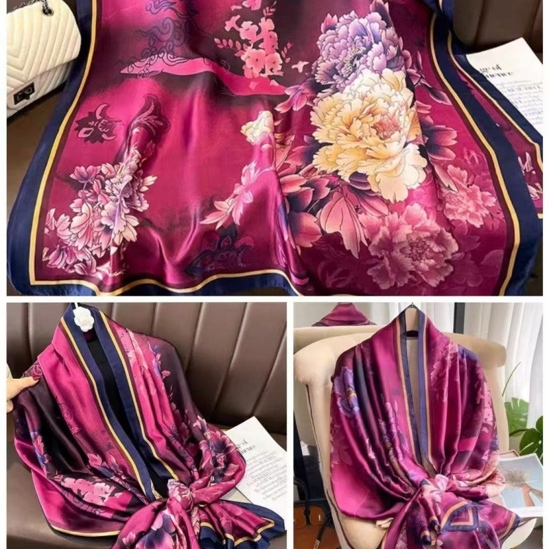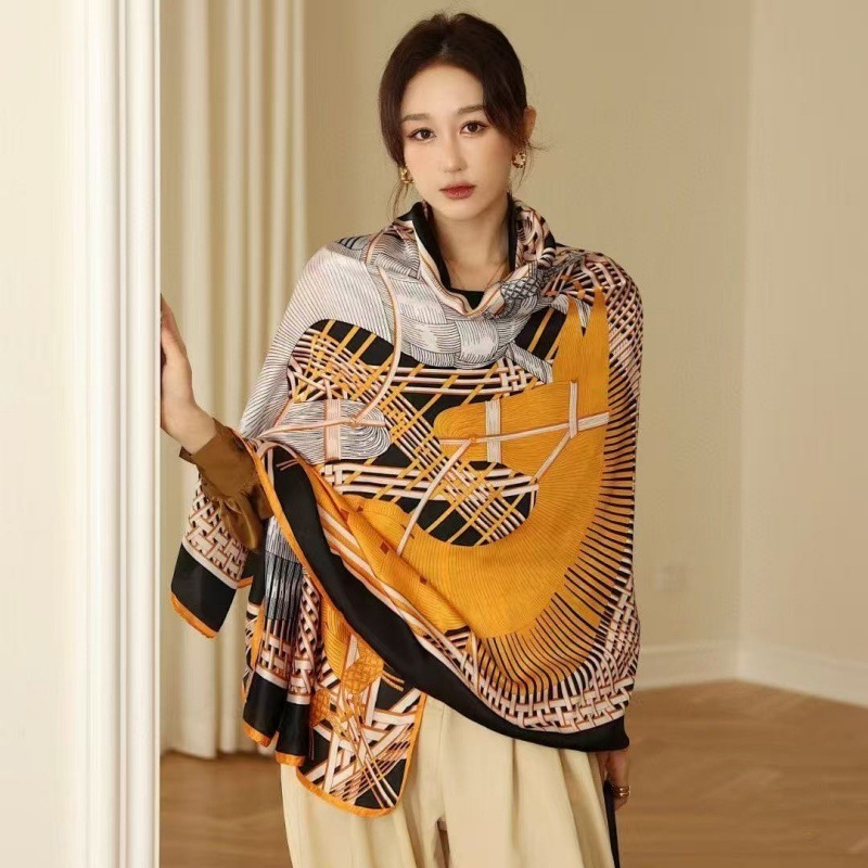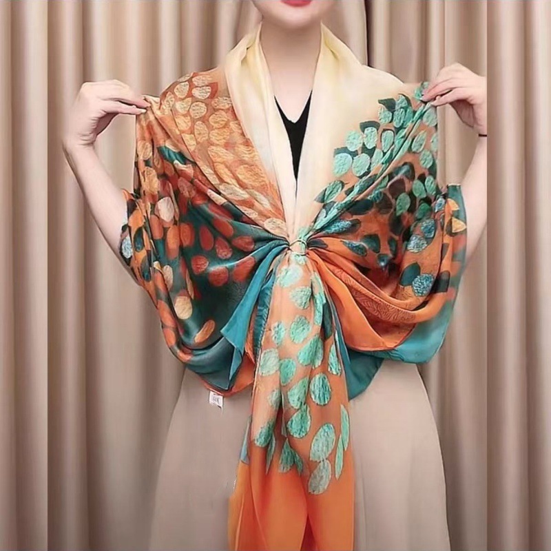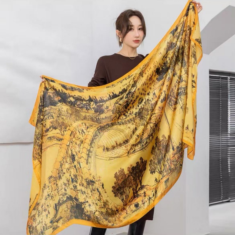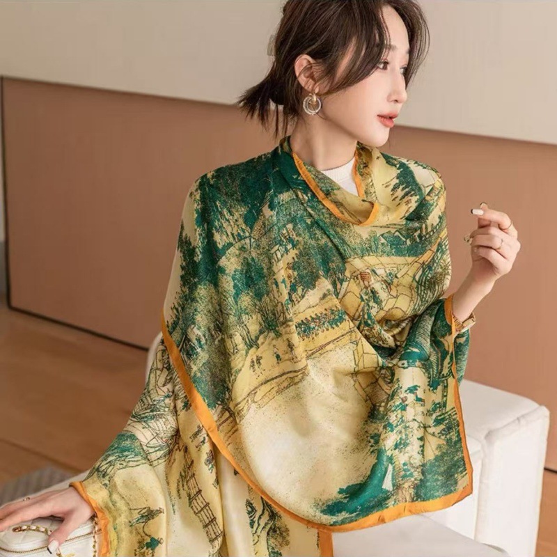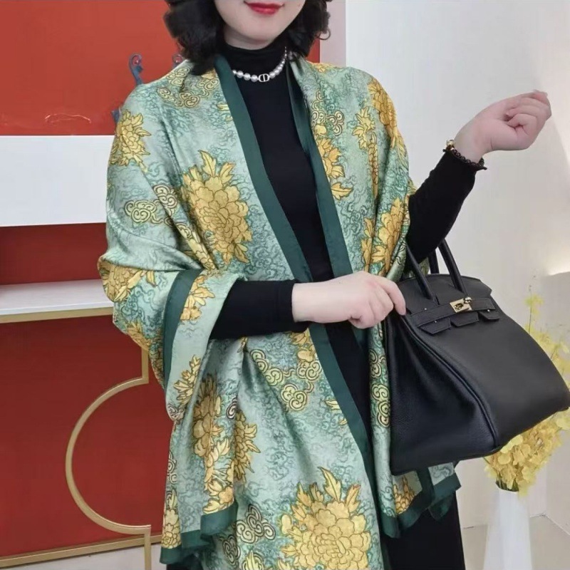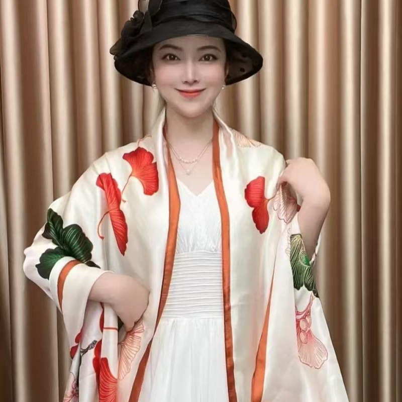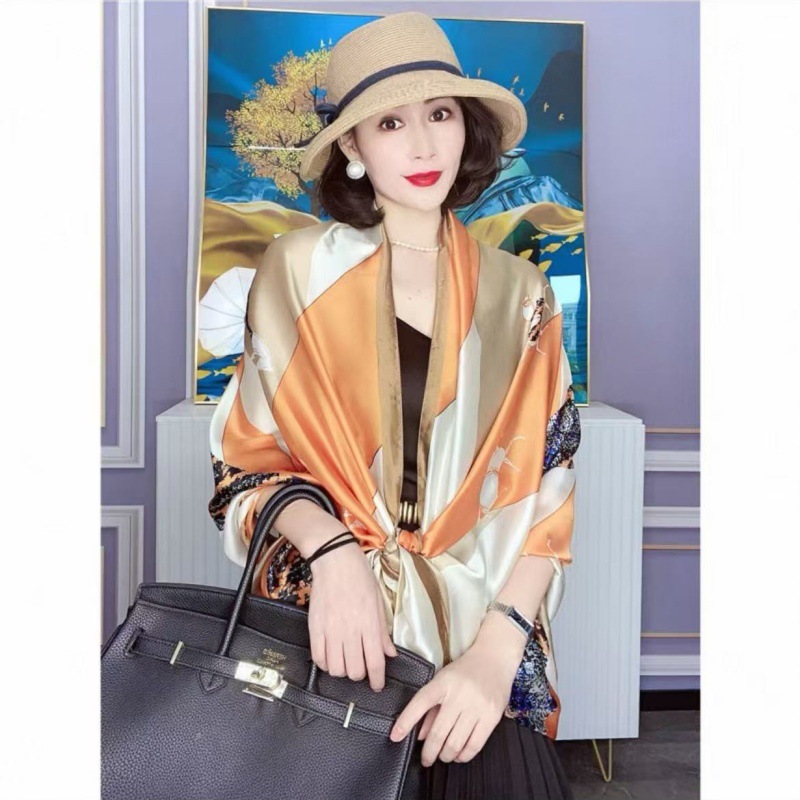 여름에 스커트와 함께 착용할 수 있는 여성용 새 실크 새틴 자외선 차단제 에어컨 치파오 숄, 다용도, 외국 스타일, 대형 실크 스카프스토어 가기