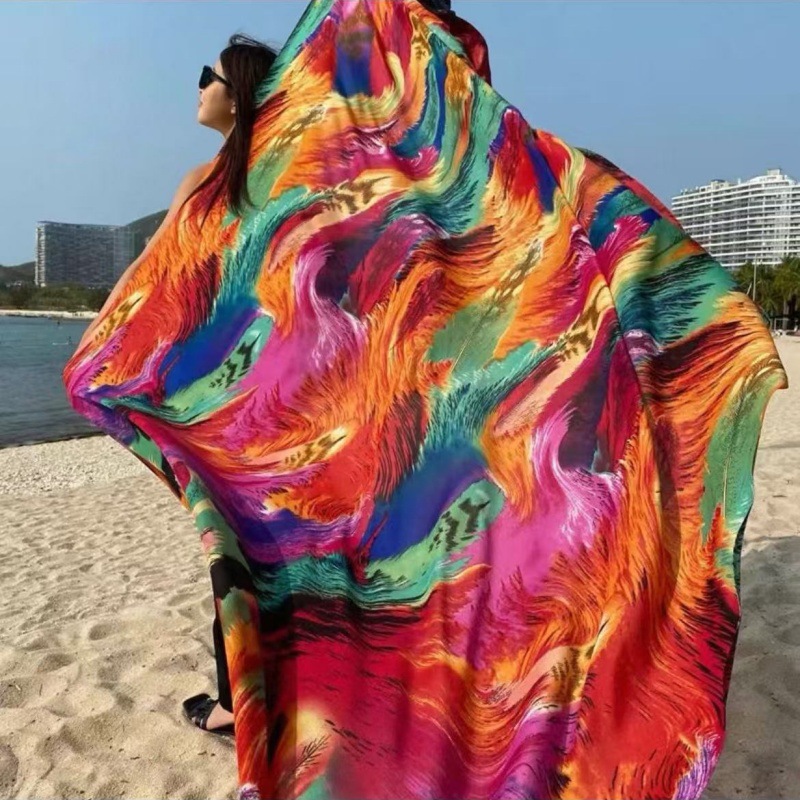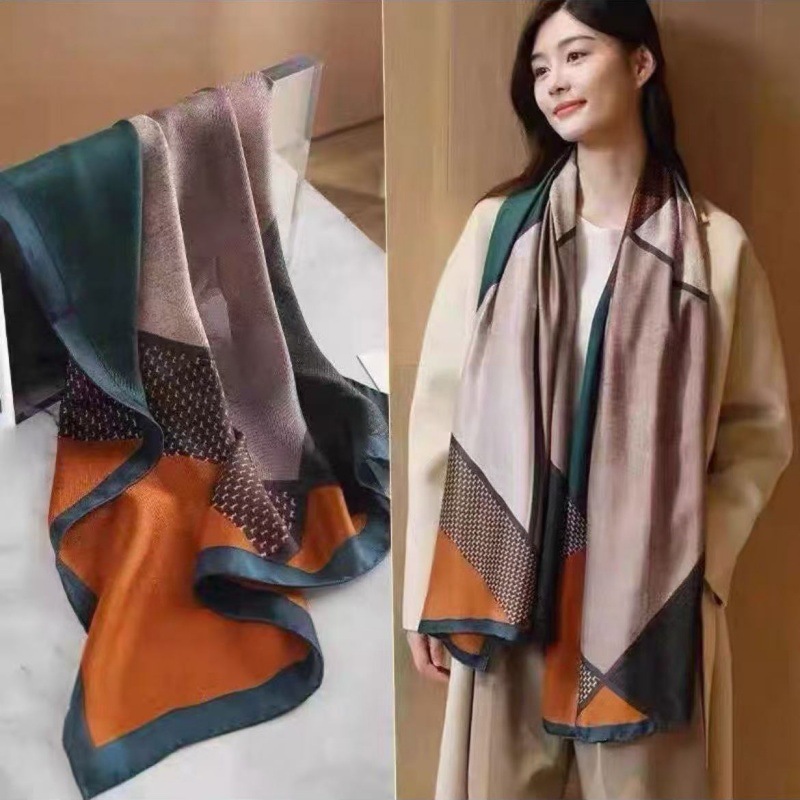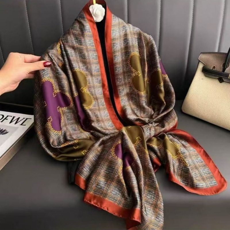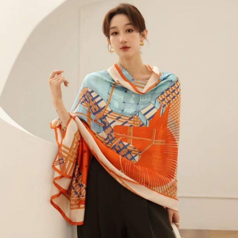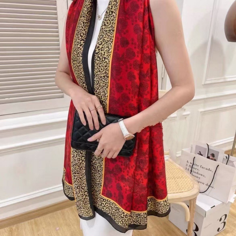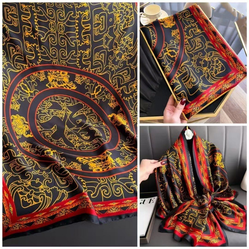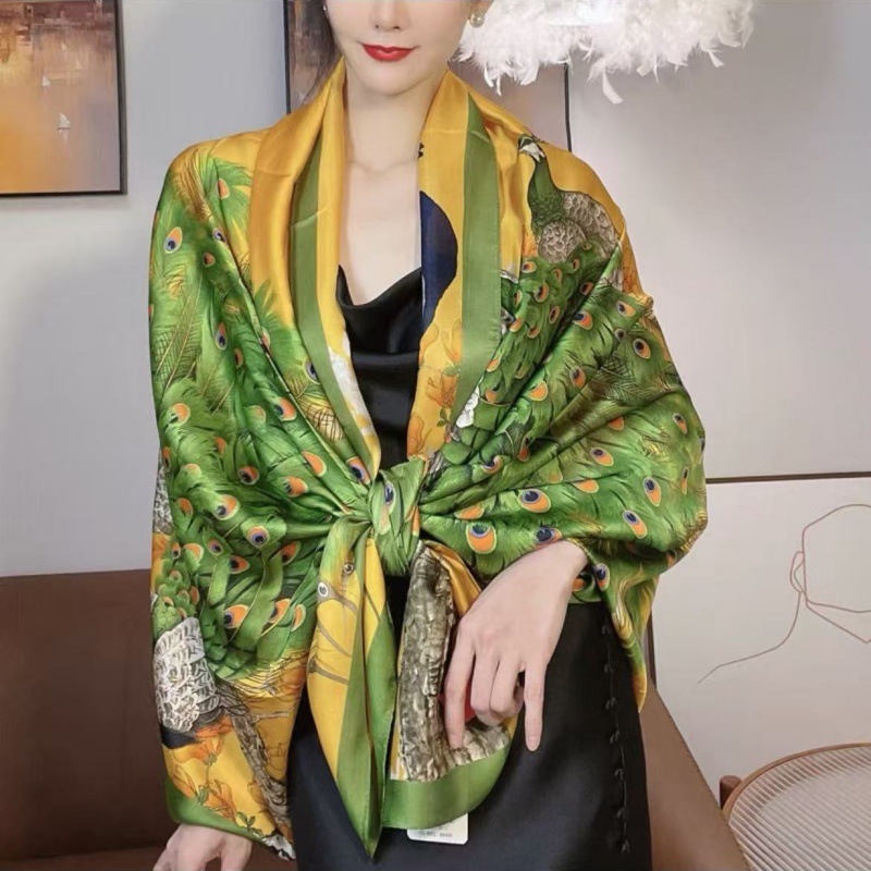 여름에 스커트와 함께 착용할 수 있는 여성용 새 실크 새틴 자외선 차단제 에어컨 치파오 숄, 다용도, 외국 스타일, 대형 실크 스카프