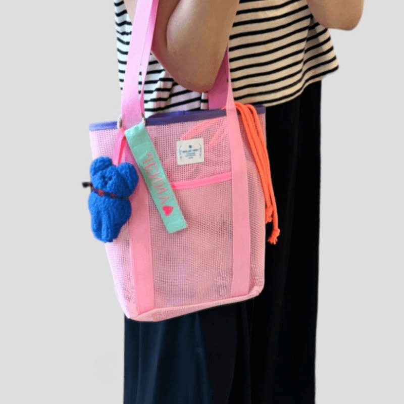 Ins 한국 어린이 크로스 바디 백 휴대용 메쉬 가방 대용량 피트니스 수영복 보관 가방 야외 휴대용 숄더백