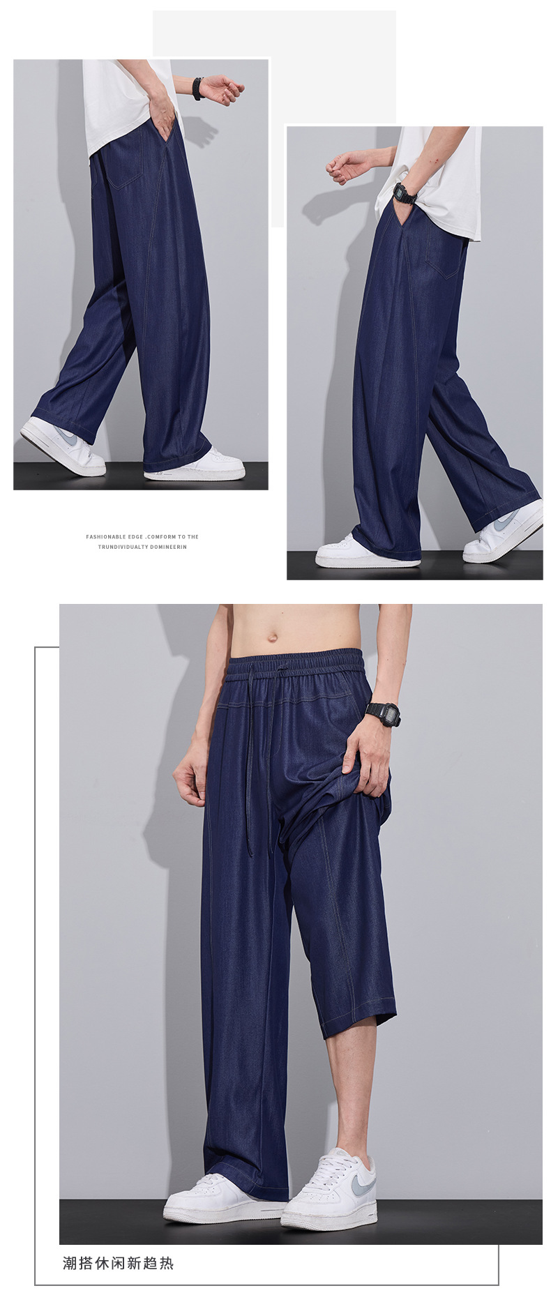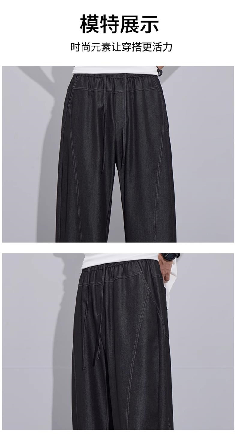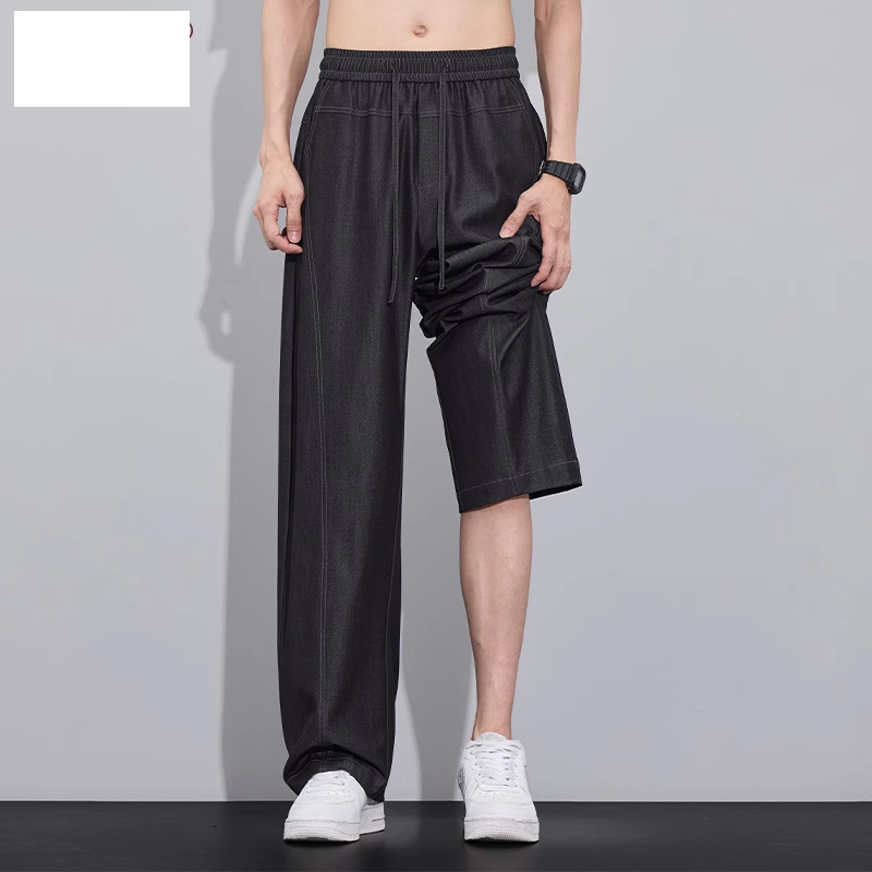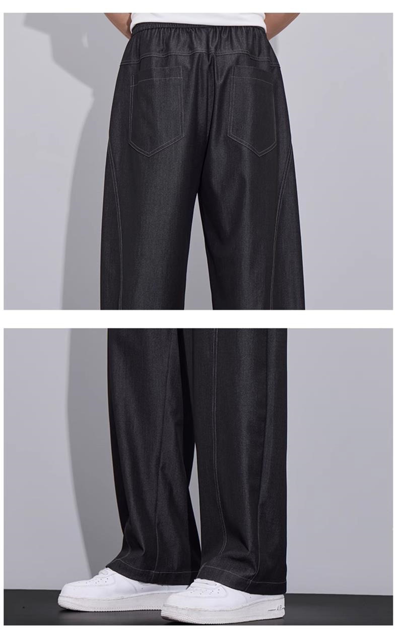 남성용 미국 트렌디 얇은 아이스 실크 청바지 2025 여름 새로운 패션 다목적 루즈 스트레이트 캐주얼 바지