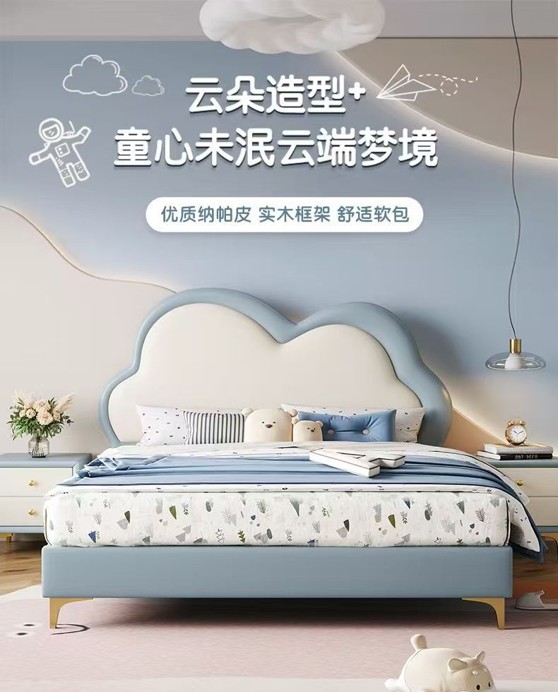프렌치 크림 클라우드 프린세스 침대 현대적인 간단한 어린이 침대 소년과 소녀 작은 아파트 스토리지 부드러운 가죽 침대스토어 가기