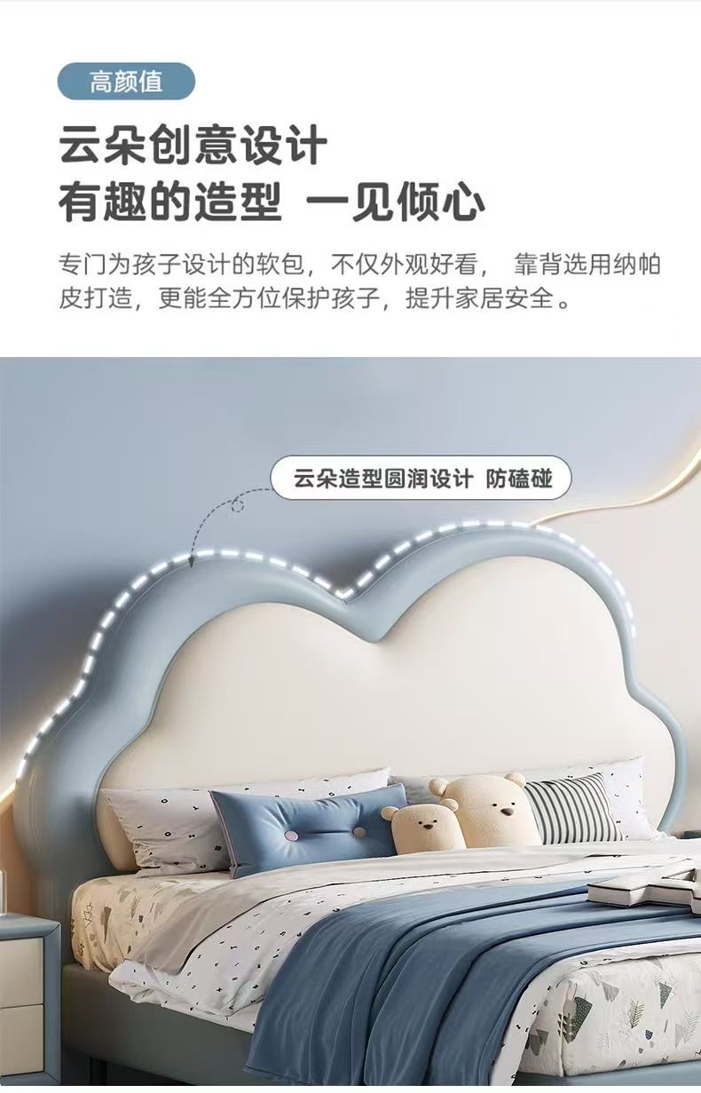 프렌치 크림 클라우드 프린세스 침대 현대적인 간단한 어린이 침대 소년과 소녀 작은 아파트 스토리지 부드러운 가죽 침대