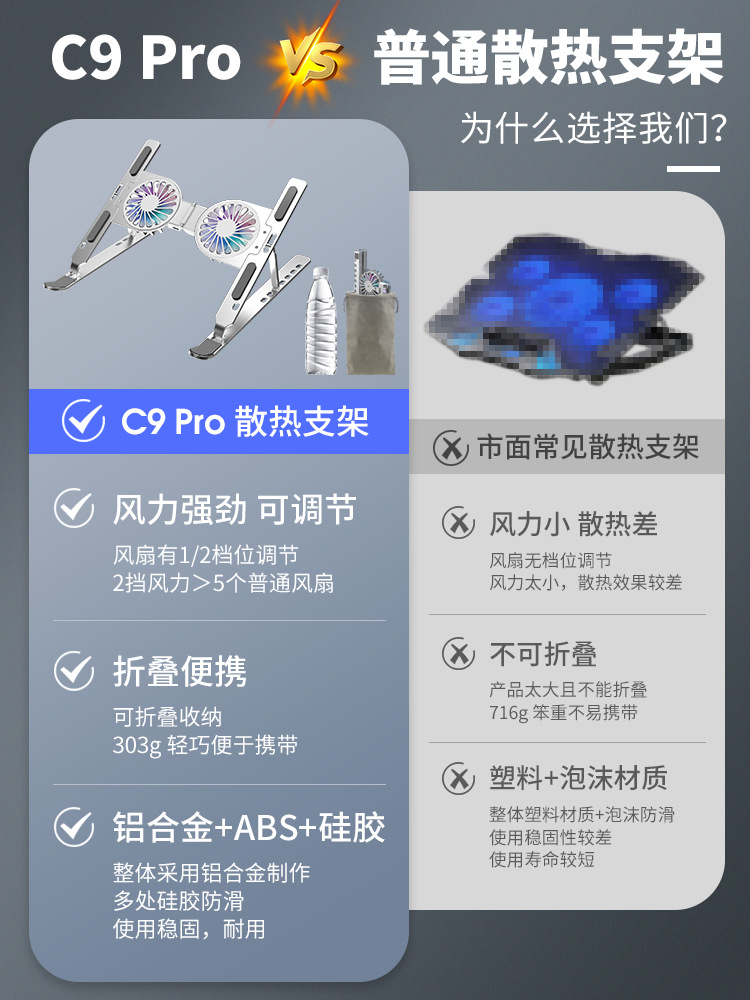 C9pro 노트북 스탠드 컴퓨터 스탠드 알루미늄 합금 접이식 공기 냉각 방열 증가 스토리지 스탠드스토어 가기