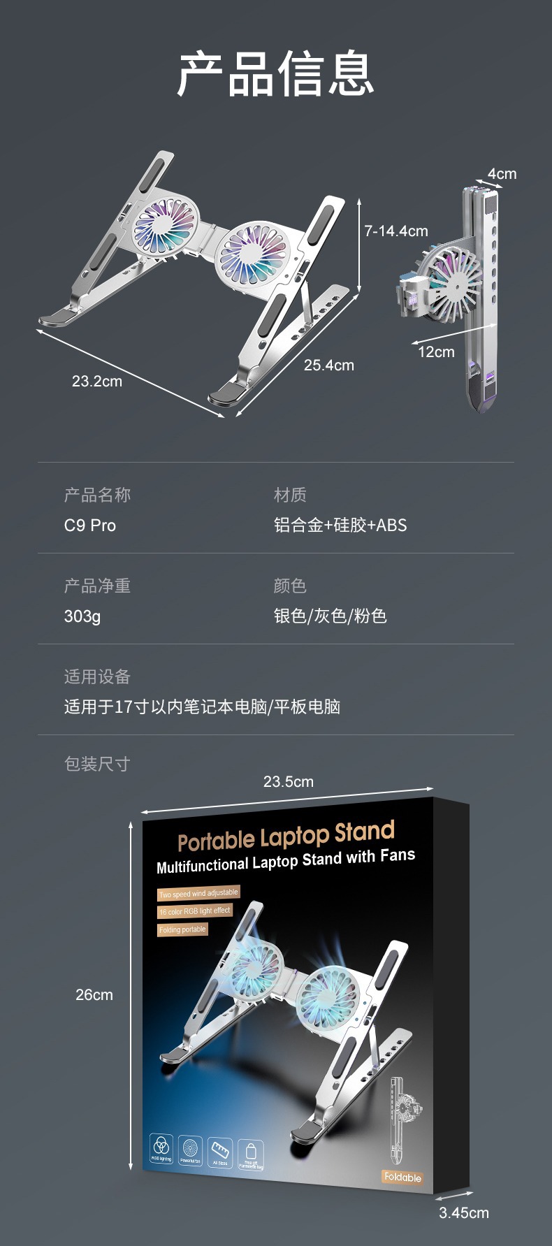 C9pro 노트북 스탠드 컴퓨터 스탠드 알루미늄 합금 접이식 공기 냉각 방열 증가 스토리지 스탠드