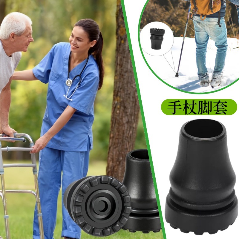 검은 조롱박 모양의 미끄럼 방지 지팡이 패드 휴대용 등산 지팡이 액세서리 등산 및 하이킹을위한 둥근 발가락 발 커버스토어 가기