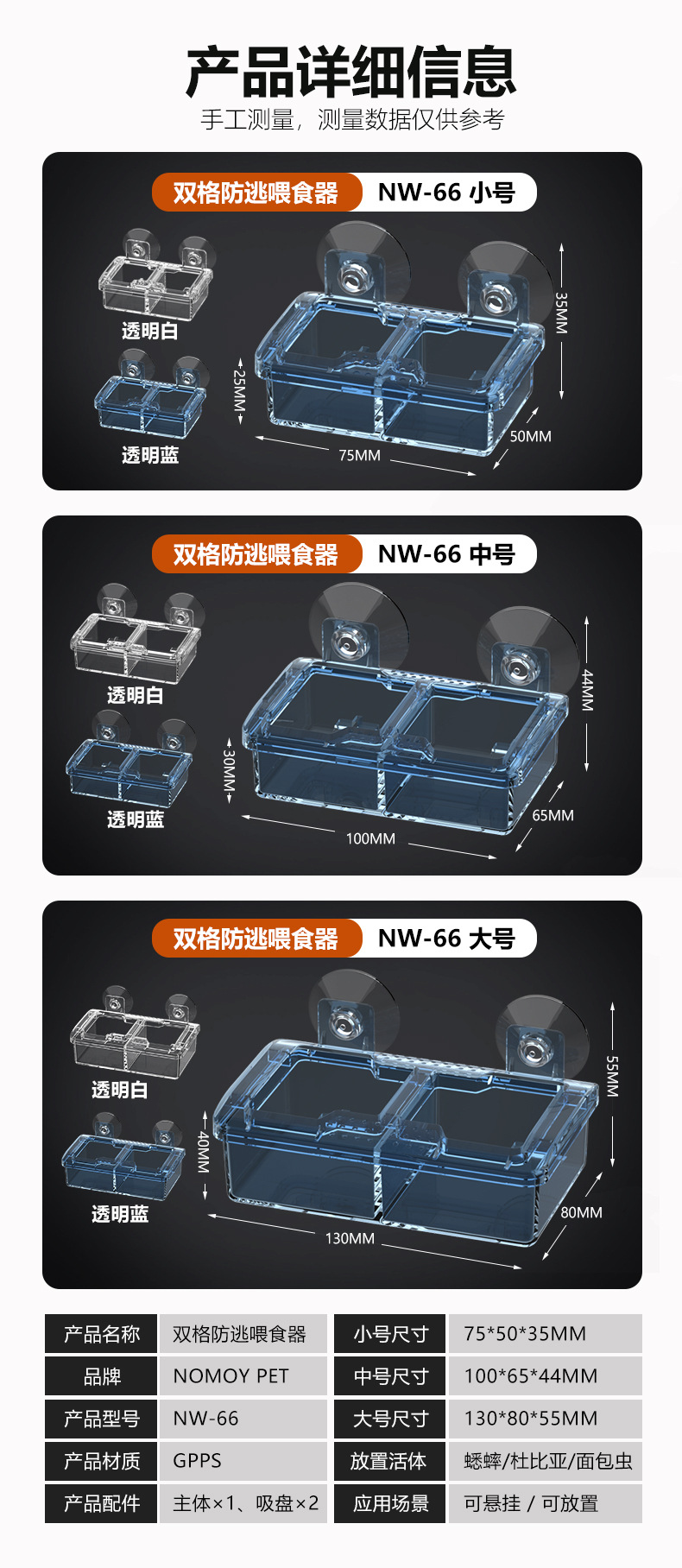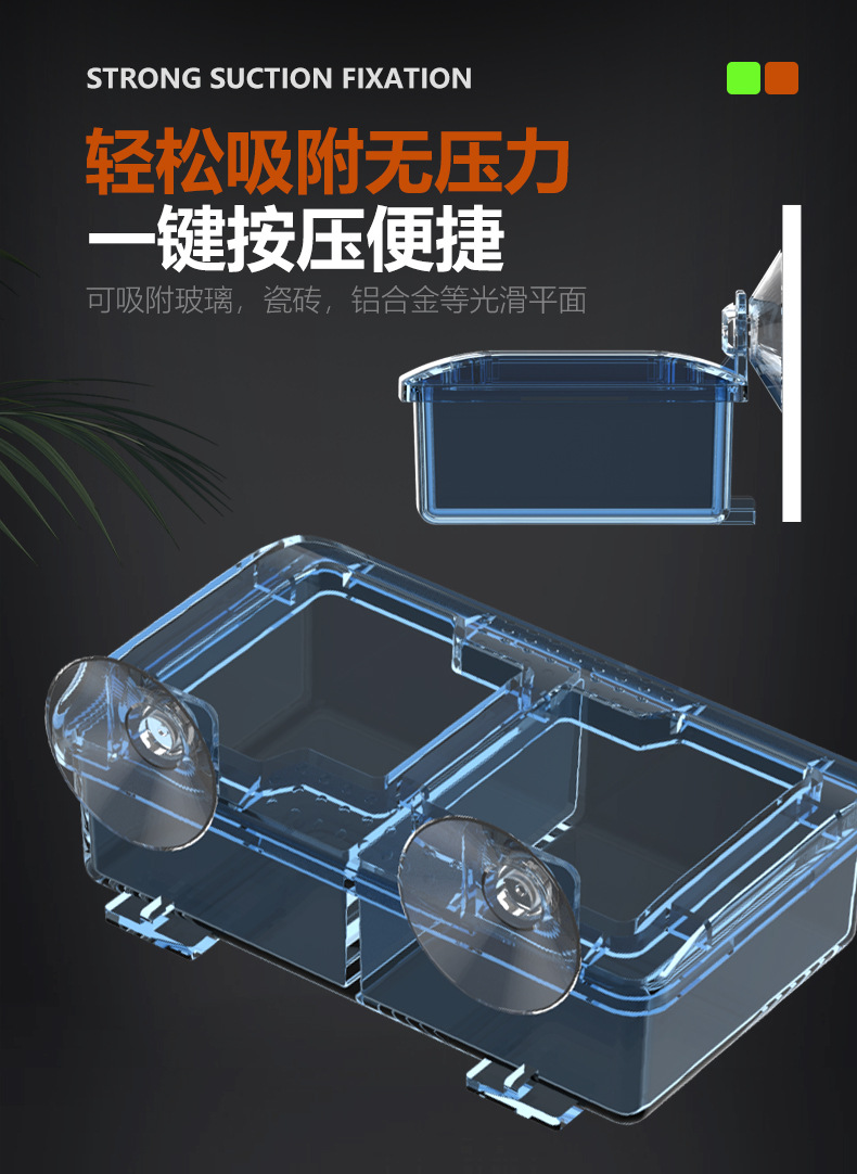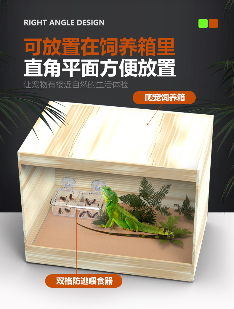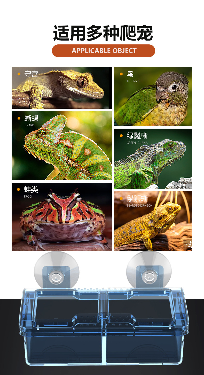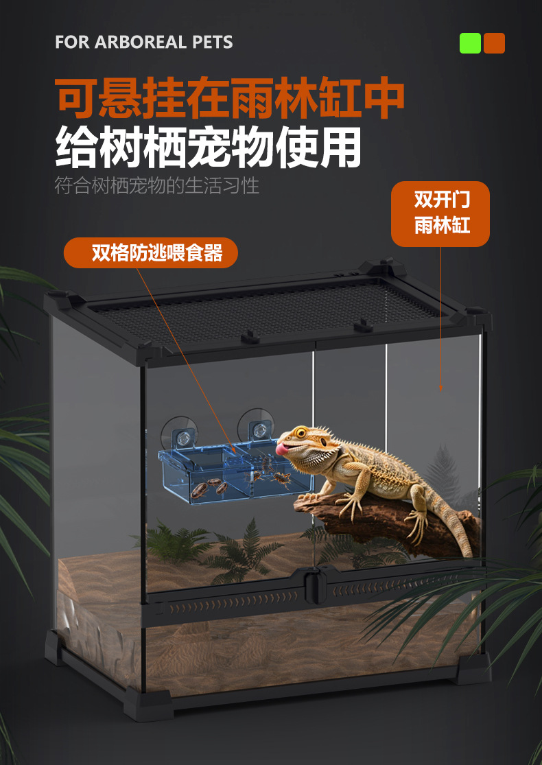 유리탱크 사육장 도마뱀, 앵무새, 호각개구리, 흡착판, 벽걸이형, 분리형 이중칸 탈출방지 애완동물 먹이통