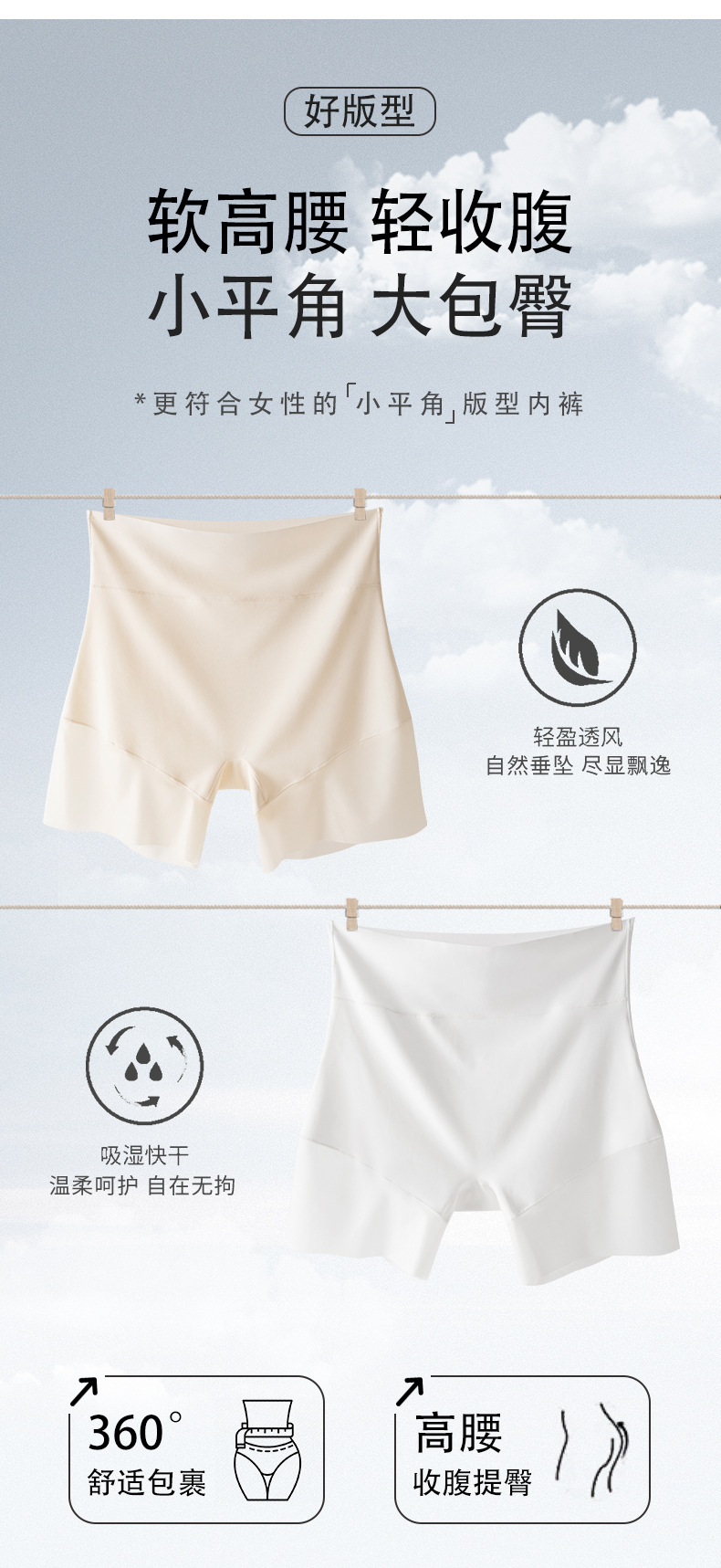여성용 하이웨이스트 심리스 사각팬티 10A 항균, 뱃살 조절, 엉덩이 리프팅, 노출 방지 안전팬츠 투인원 레깅스
