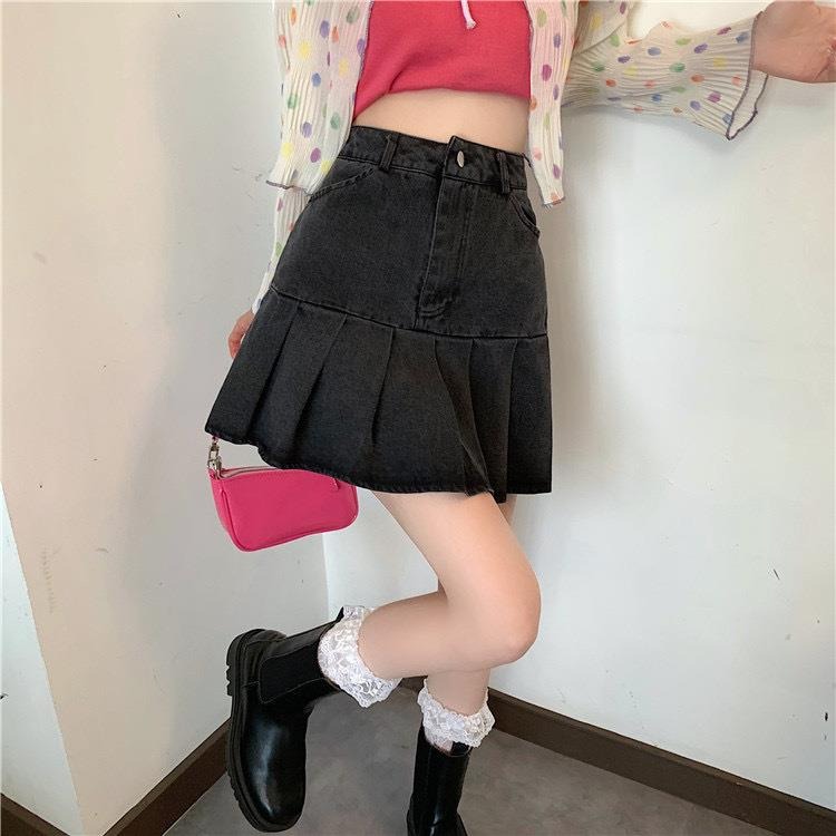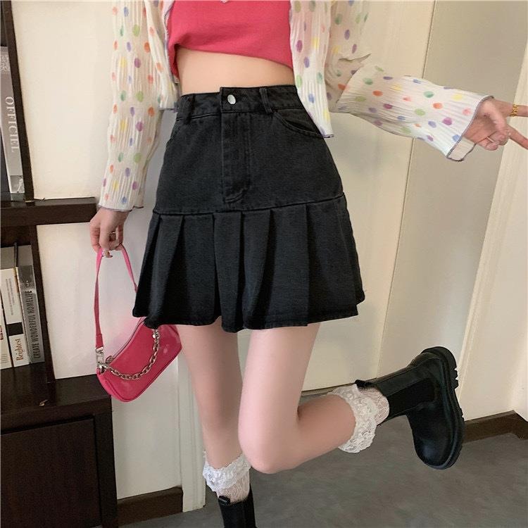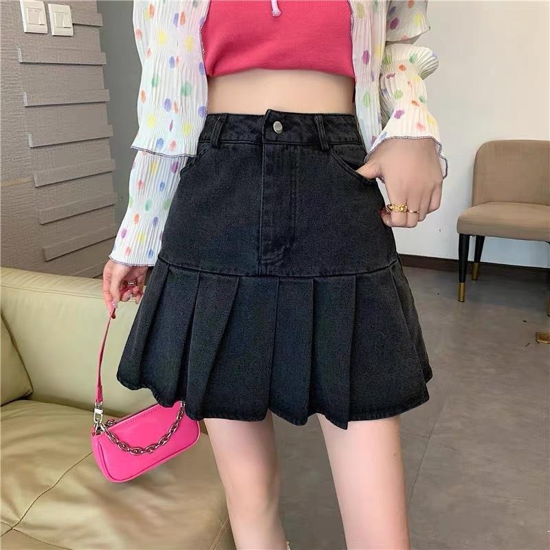여성을 위한 디자인 니치 데님 스커트, 초짧은 하이웨이스트 슬림 스커트, A라인 플리츠 스커트, 2025 신작 가을스토어 가기