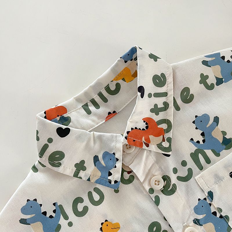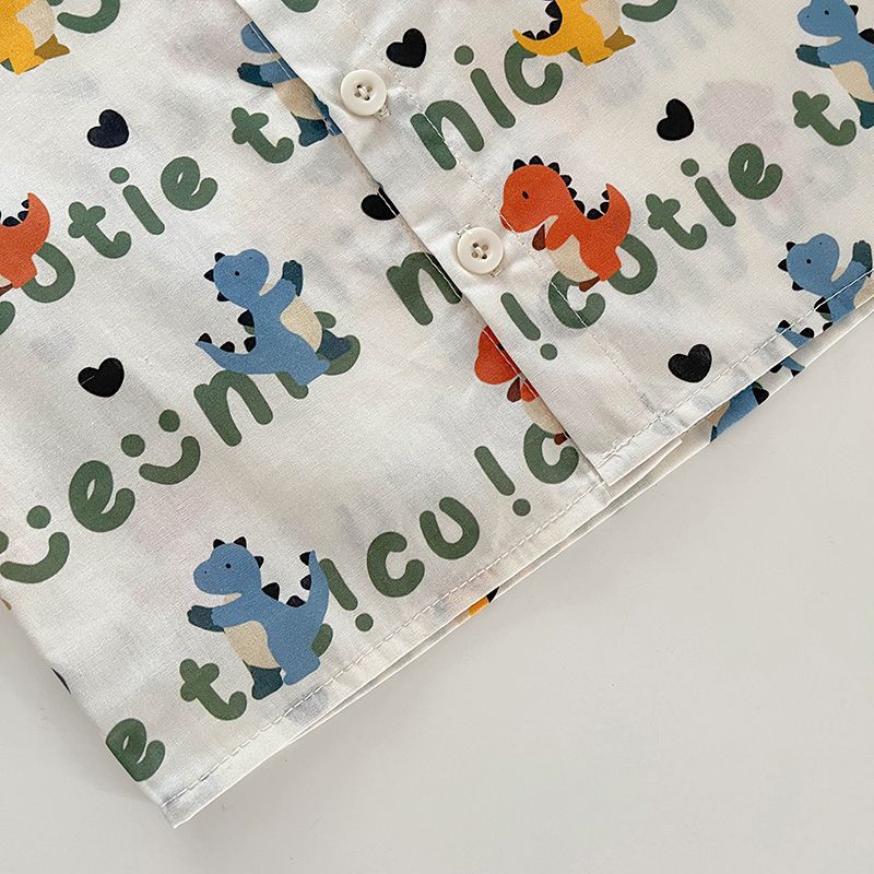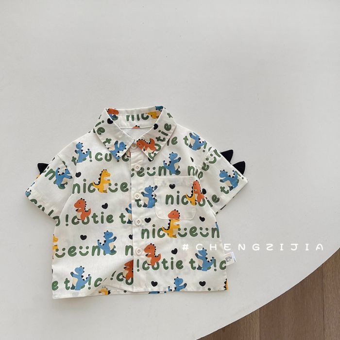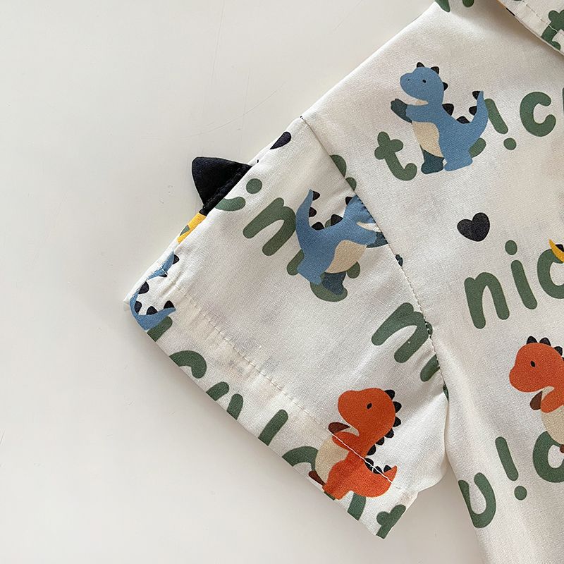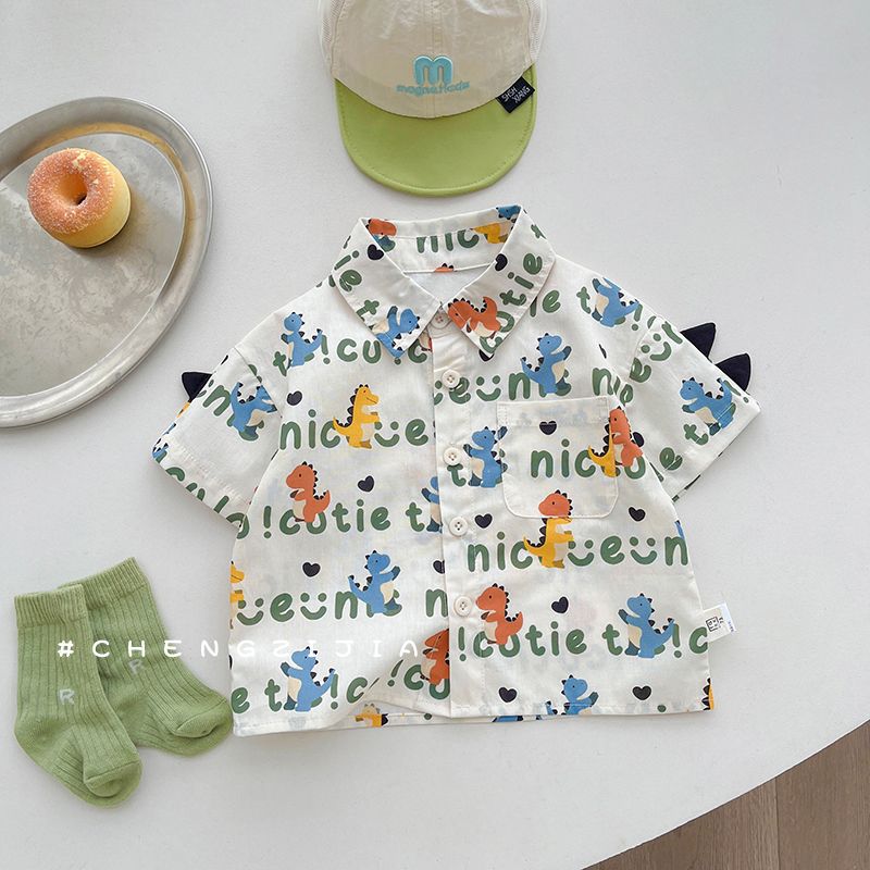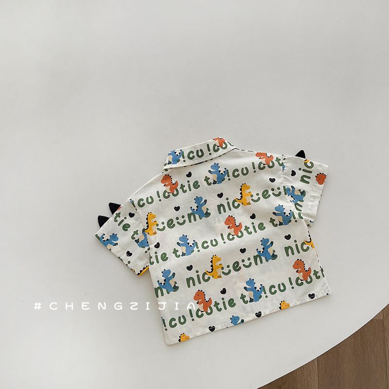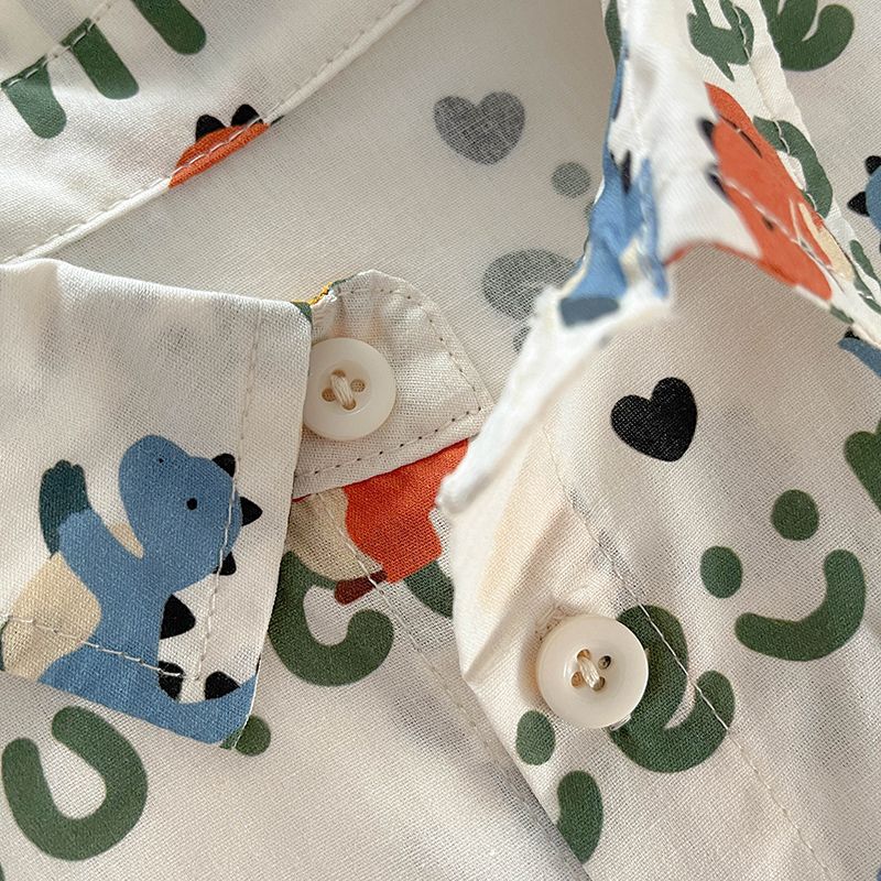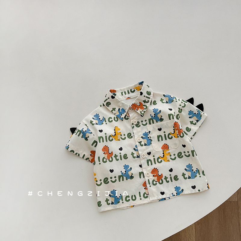 공식 사진 [4방향 탄성 프린트] 남아 여름 라펠 반팔 셔츠 배색 루즈 캐주얼 버블 롱 프린트 안감