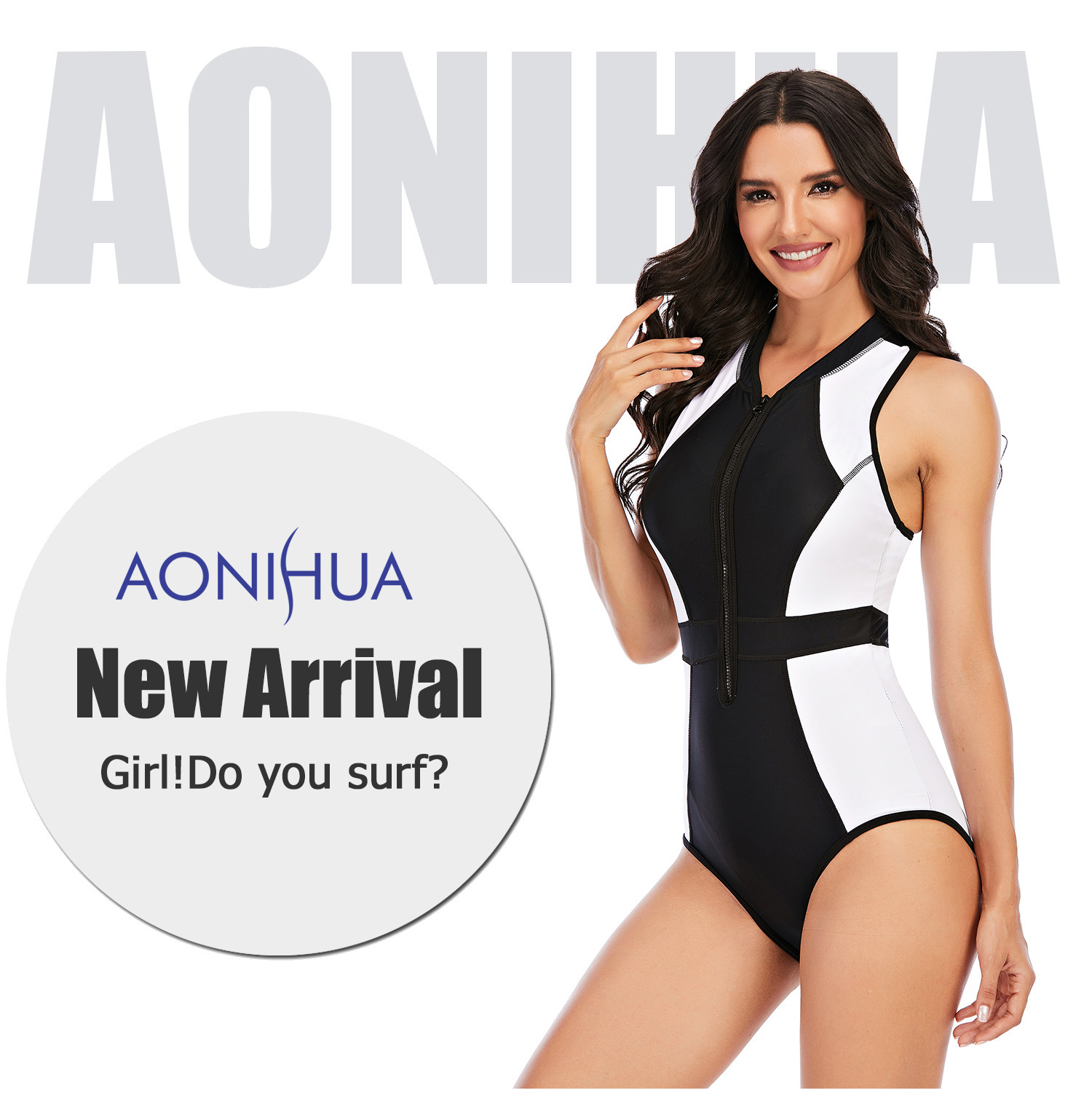 유럽과 미국의 대외 무역 원피스 민소매 서핑 슈트 자외선 차단 여성 수영복 지퍼 다이빙 슈트 섹시한 수영복 Aonihua 2201