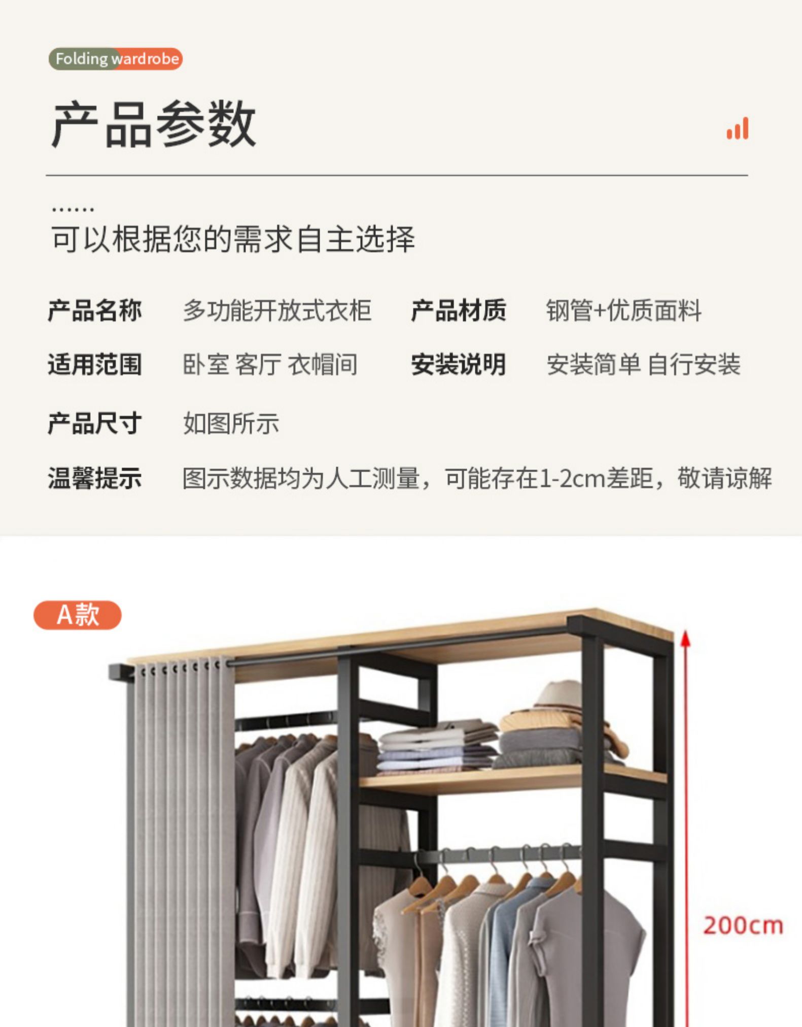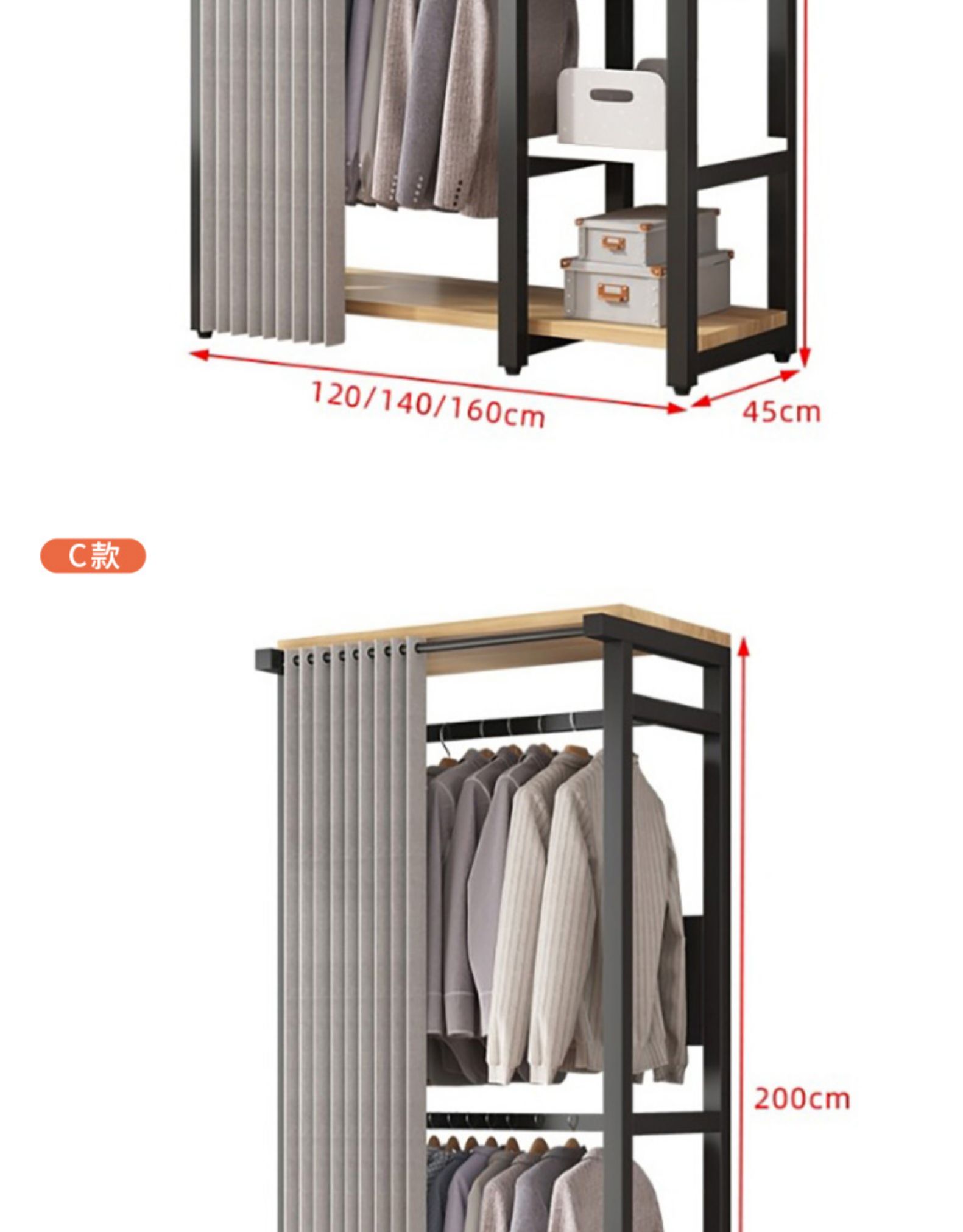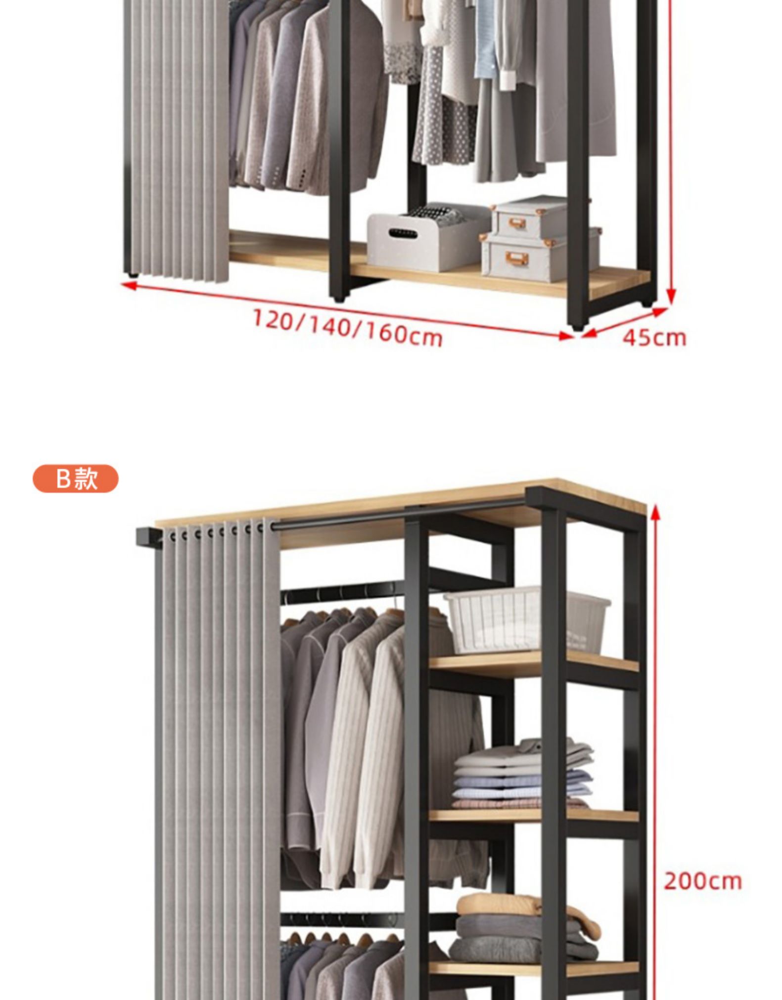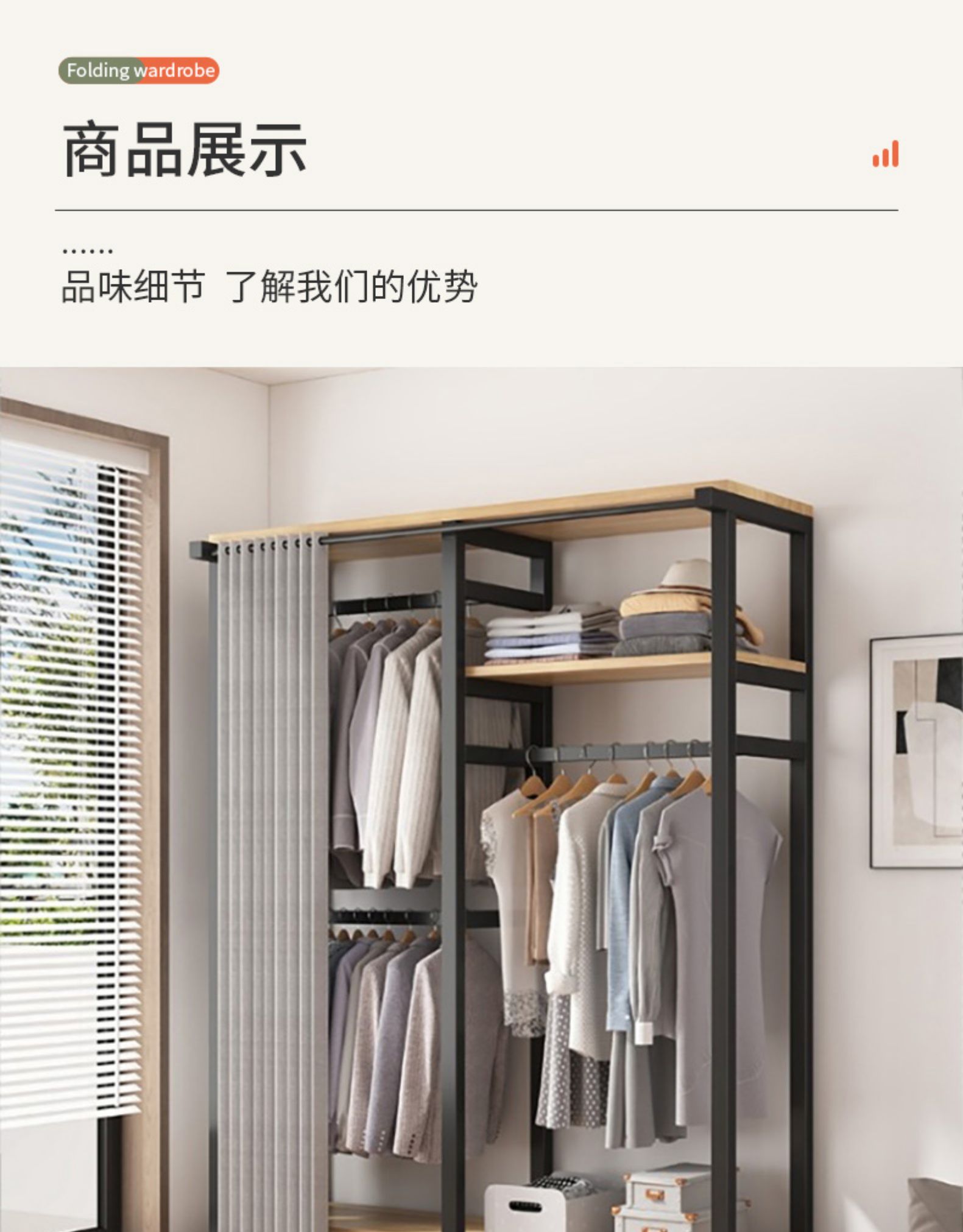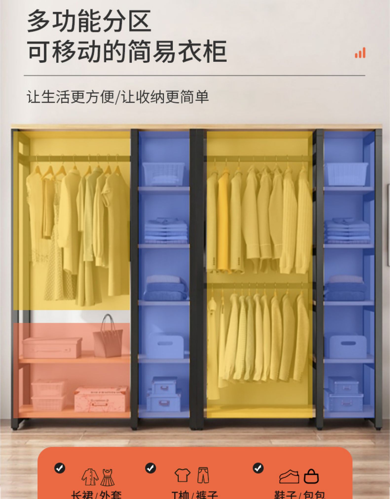 옷장 강철 프레임 구조 간단한 조립 천 옷장 홈 침실 강력하고 내구성이 뛰어난 작은 아파트 보관 캐비닛 옷장